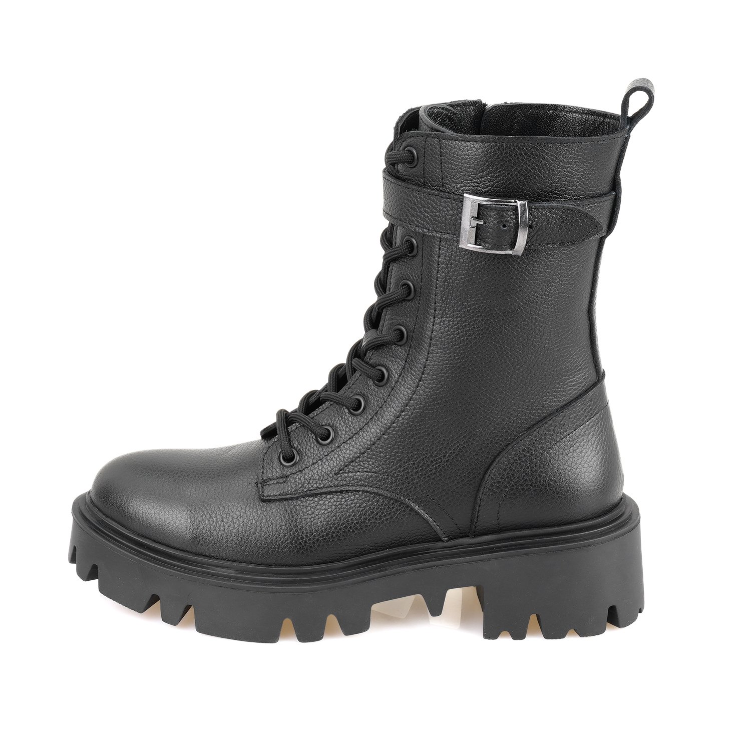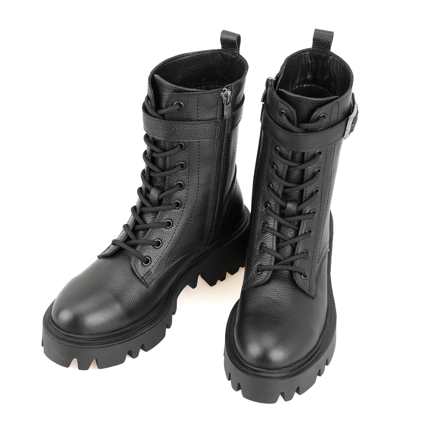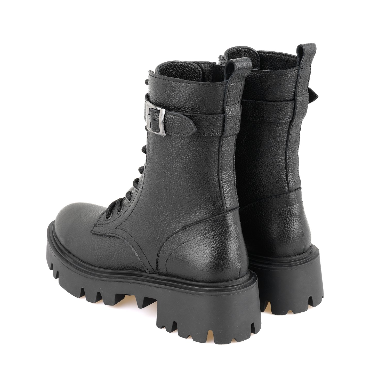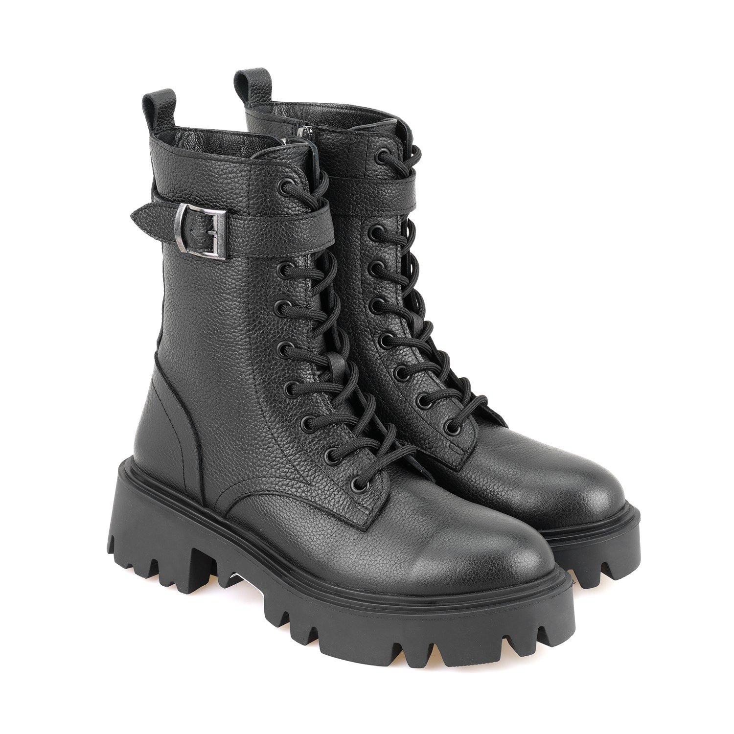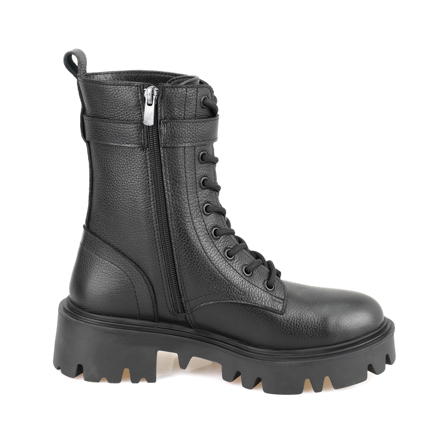 %100 deri, deri iç tabanlı, tekstil astarlı, ayarlanabilir metal tokalı, thermo tabanlı, bağcıklı kadın postal bot.