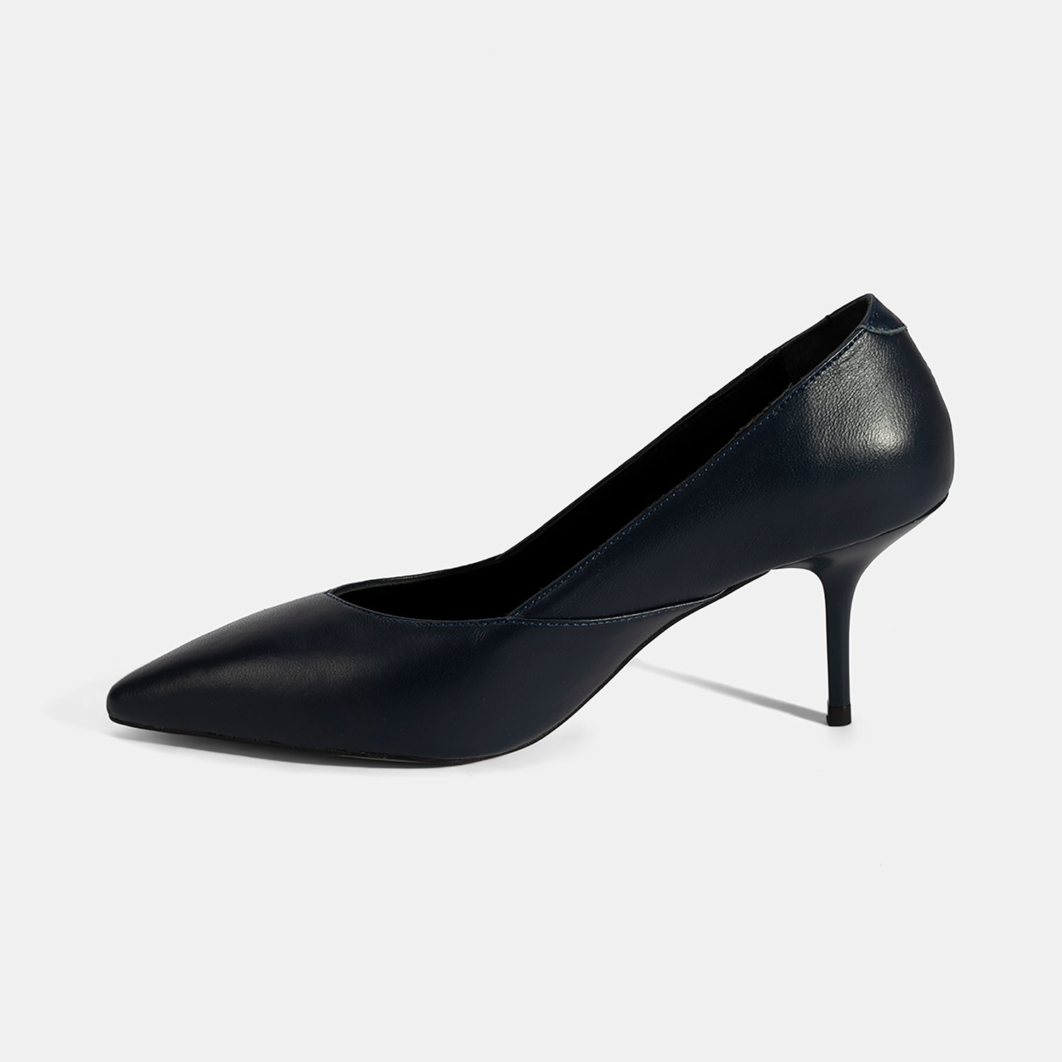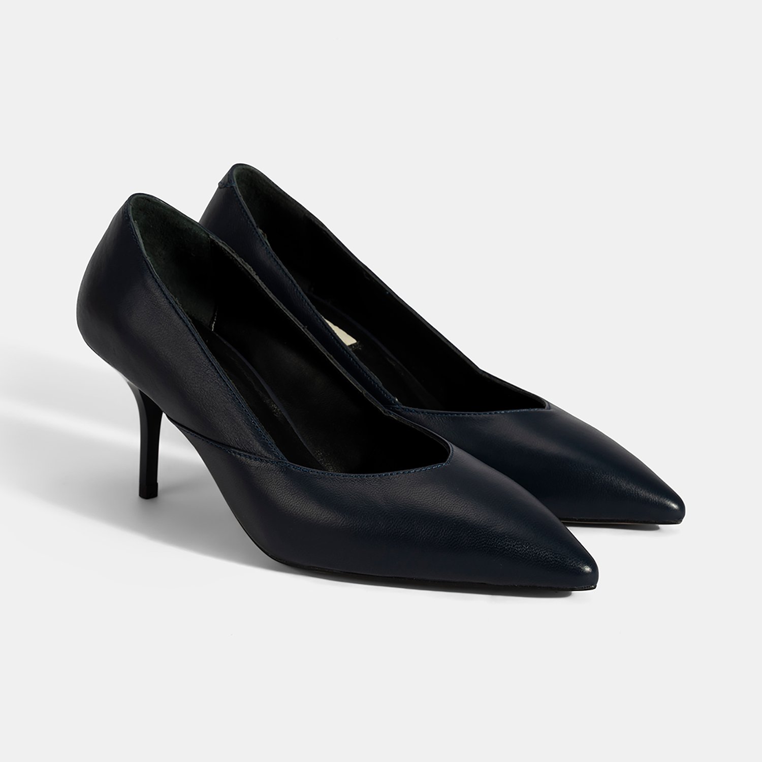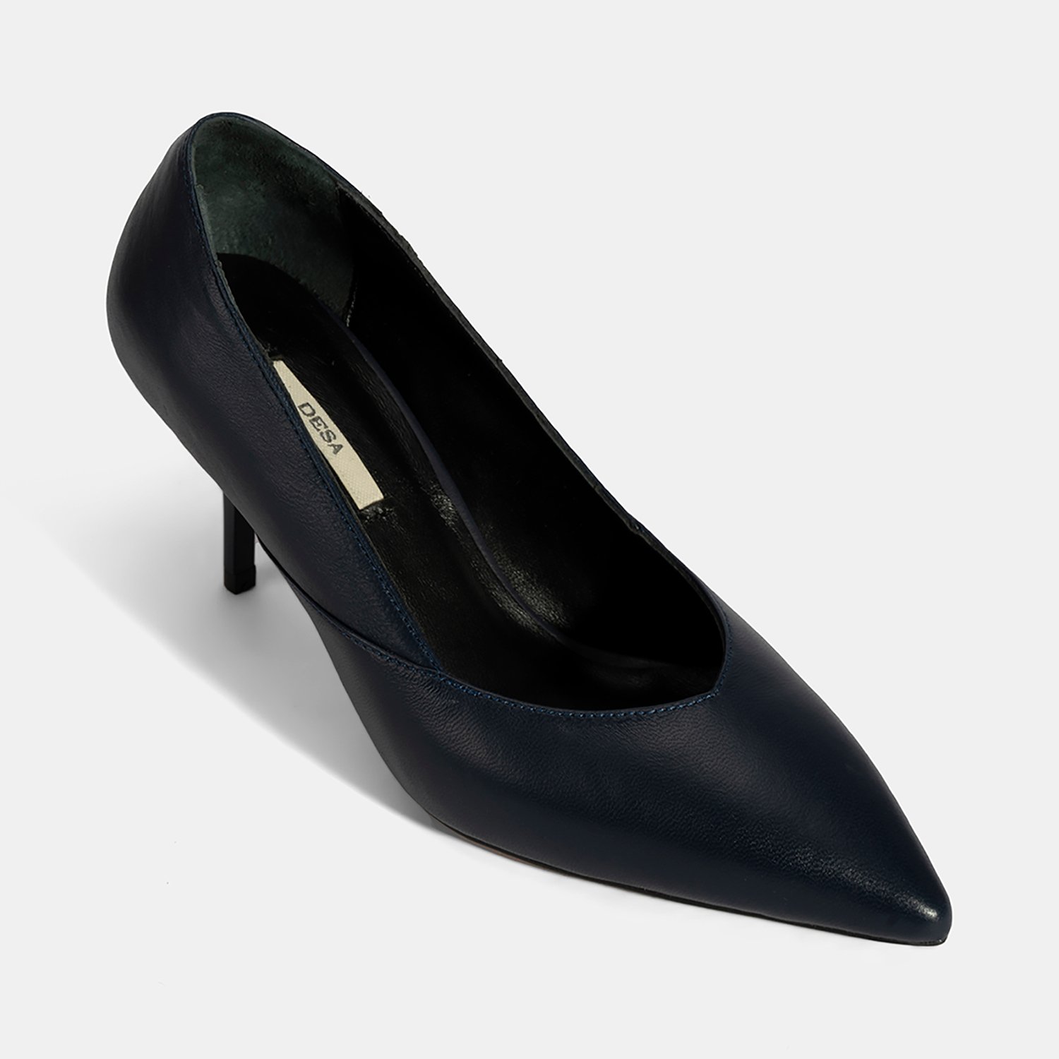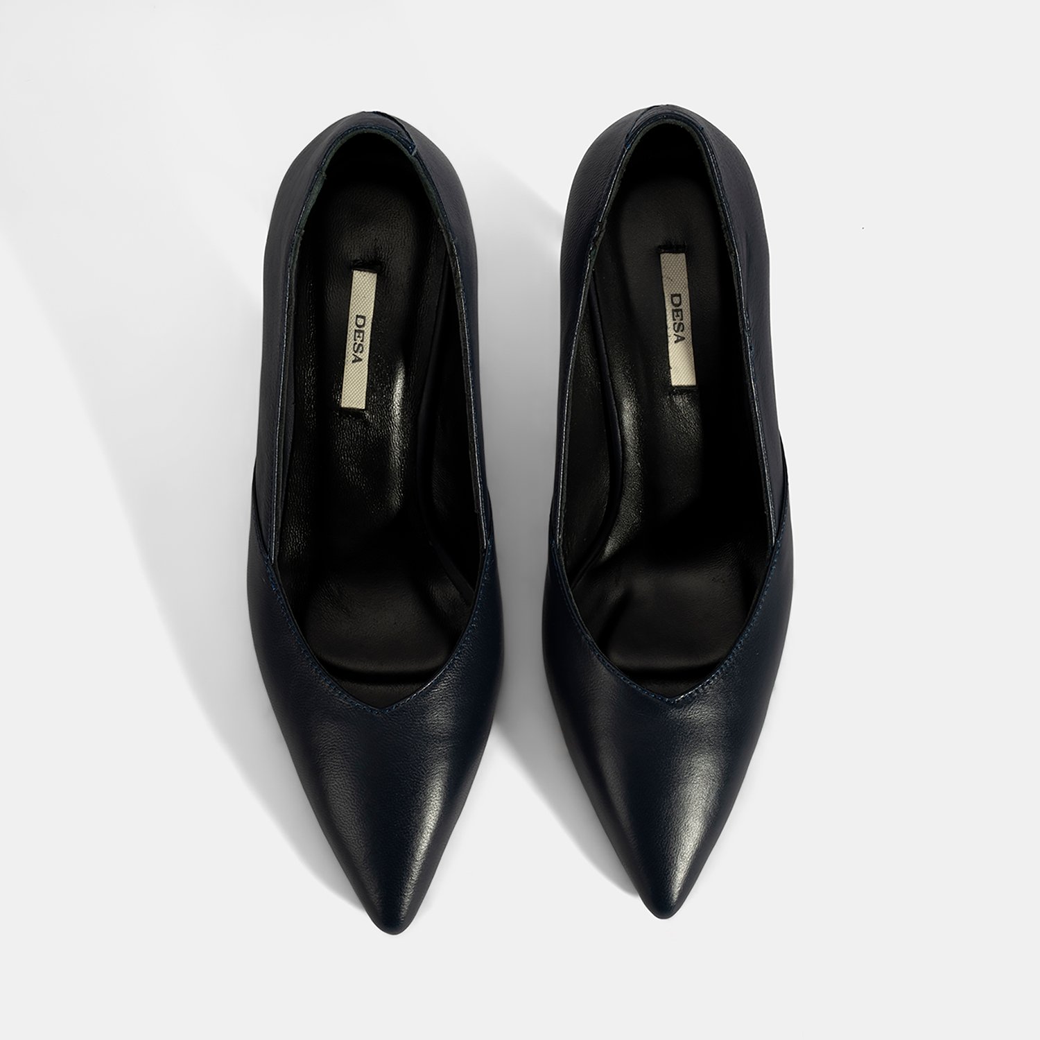 Kadın Lacivert Deri Topuklu Klasik Ayakkabı