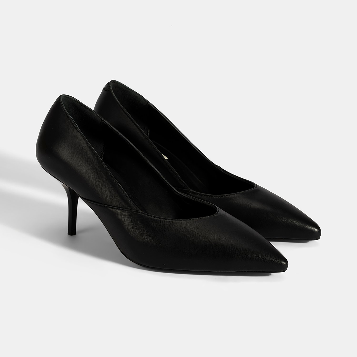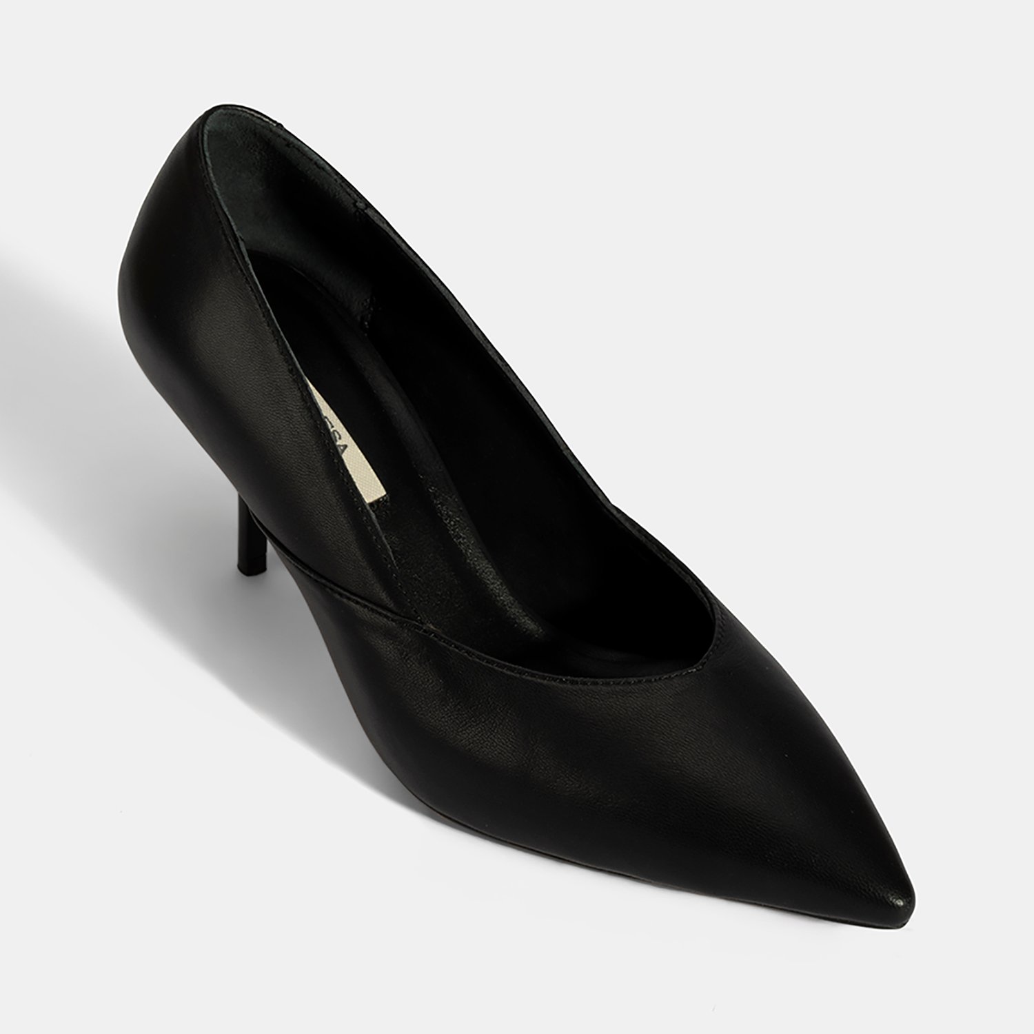 Kadın Siyah Deri Topuklu Klasik Ayakkabı