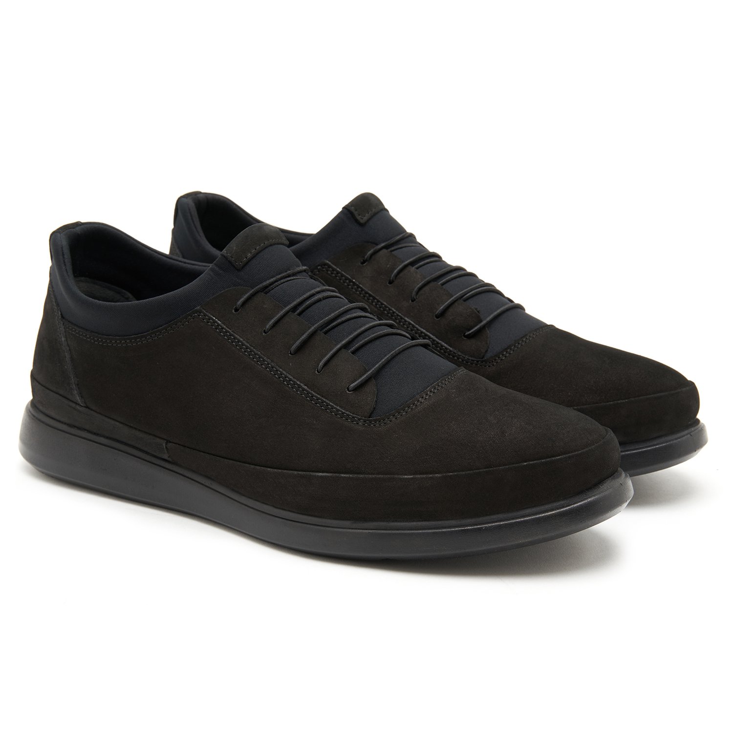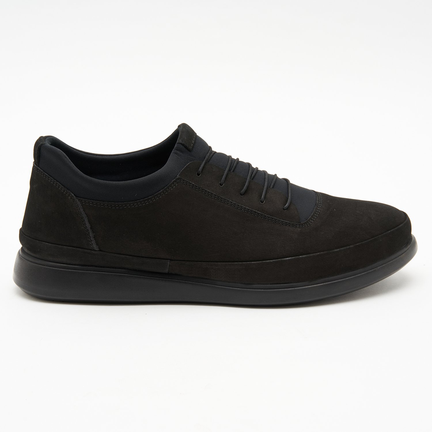 Deri iç tabanlı, deri astarlı, elastik bağcıklı, dayanıklı termo tabanlı erkek günlük ayakkabı.