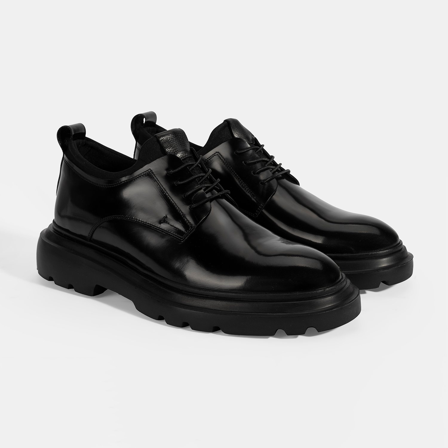 Erkek Siyah Bağcıklı Rugan Deri Günlük Ayakkabı