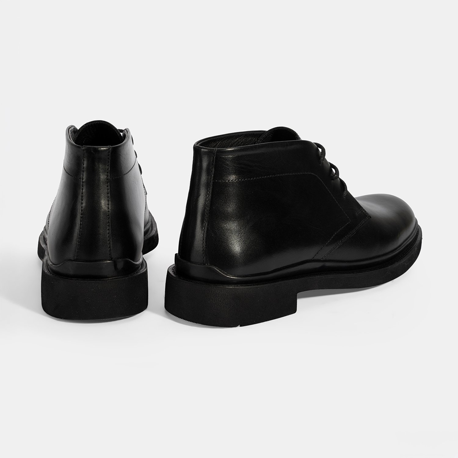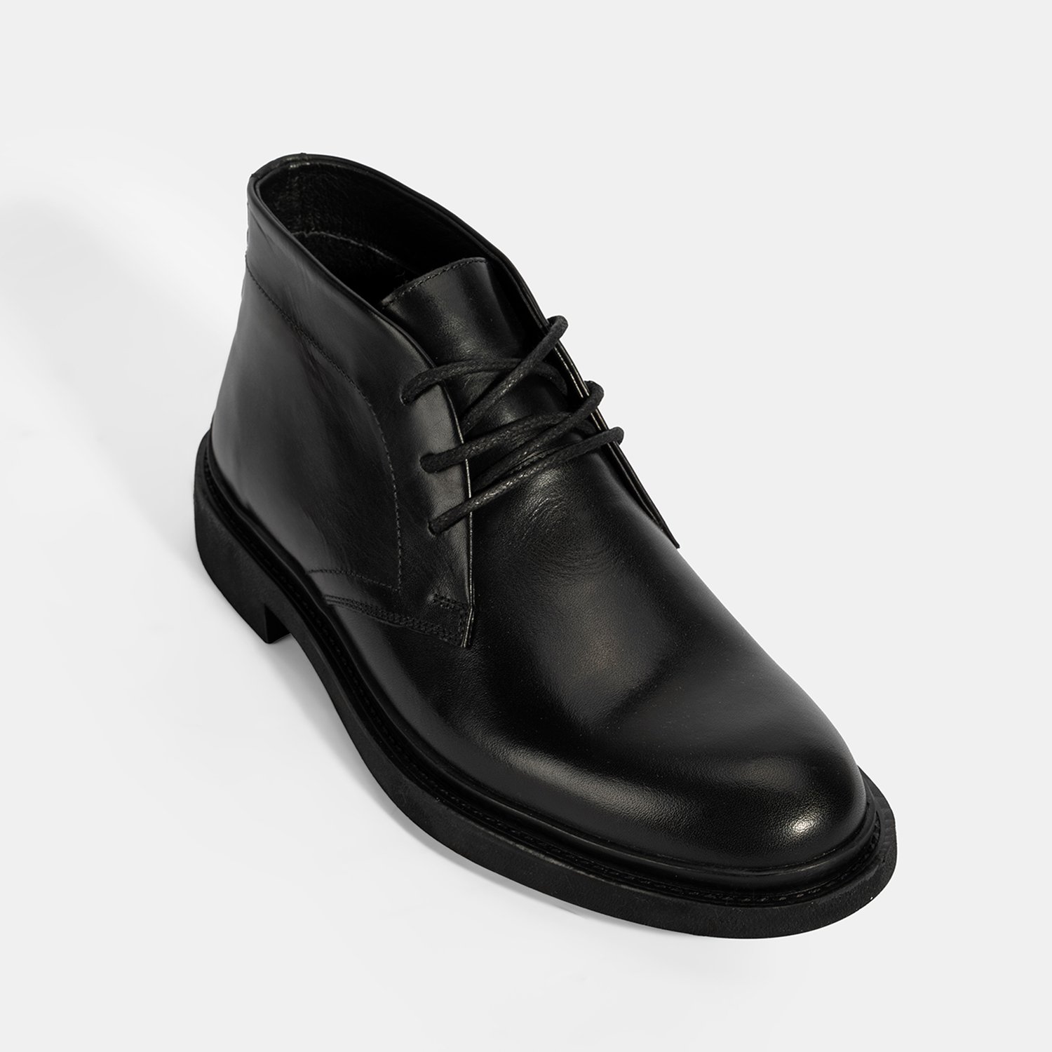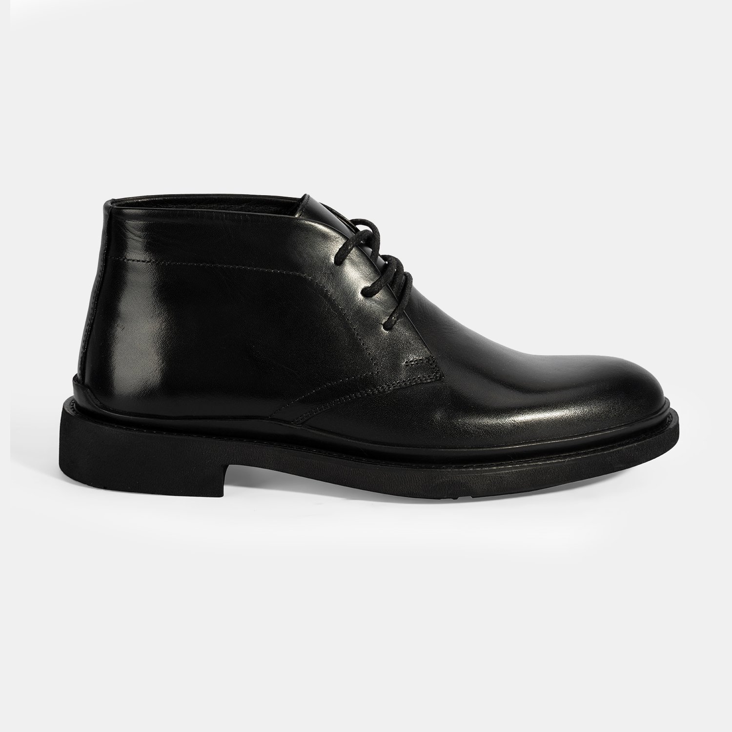 %100 deri, %100 deri mostrali, tekstil astarlı, bağcıklı, kauçuk tabanlı erkek bot.