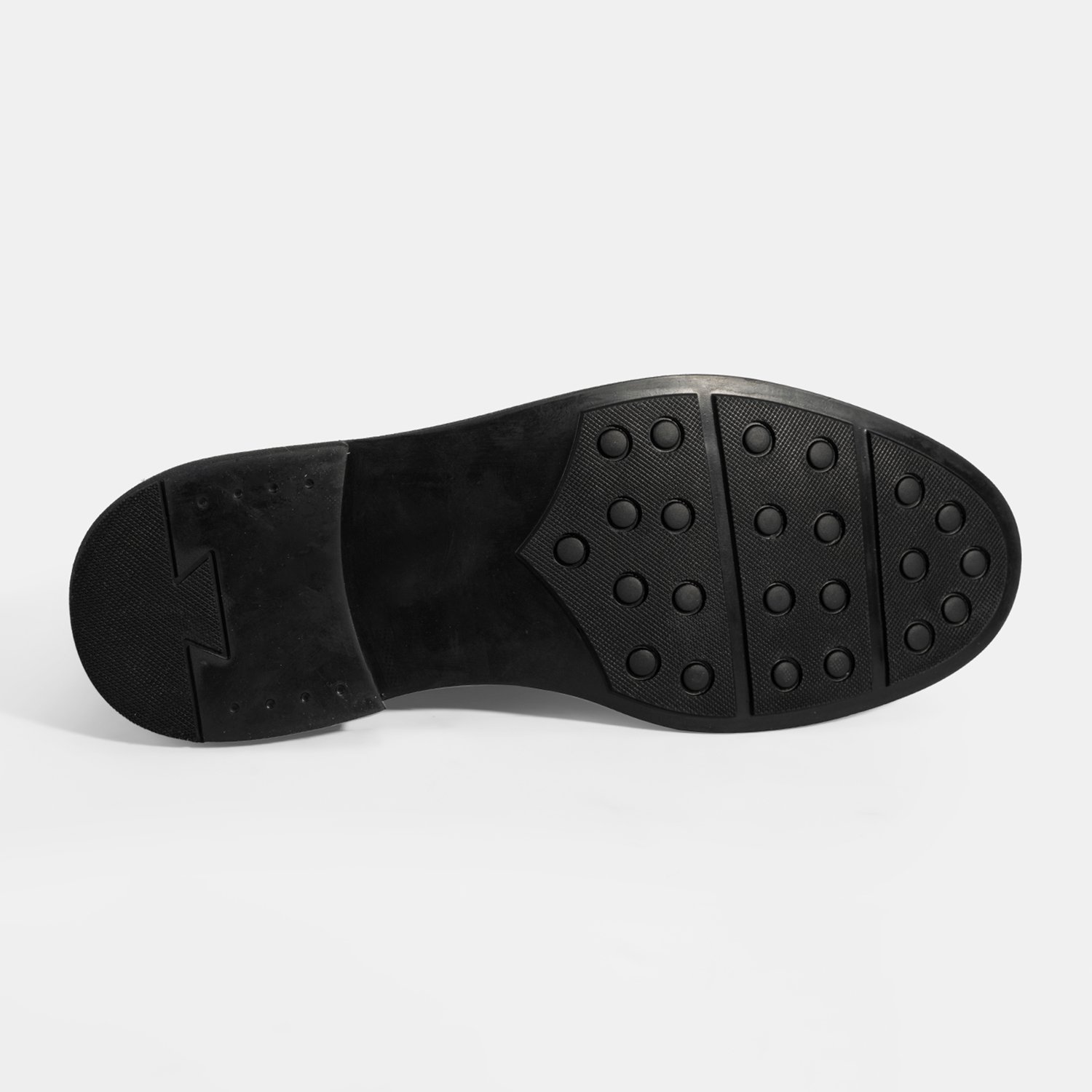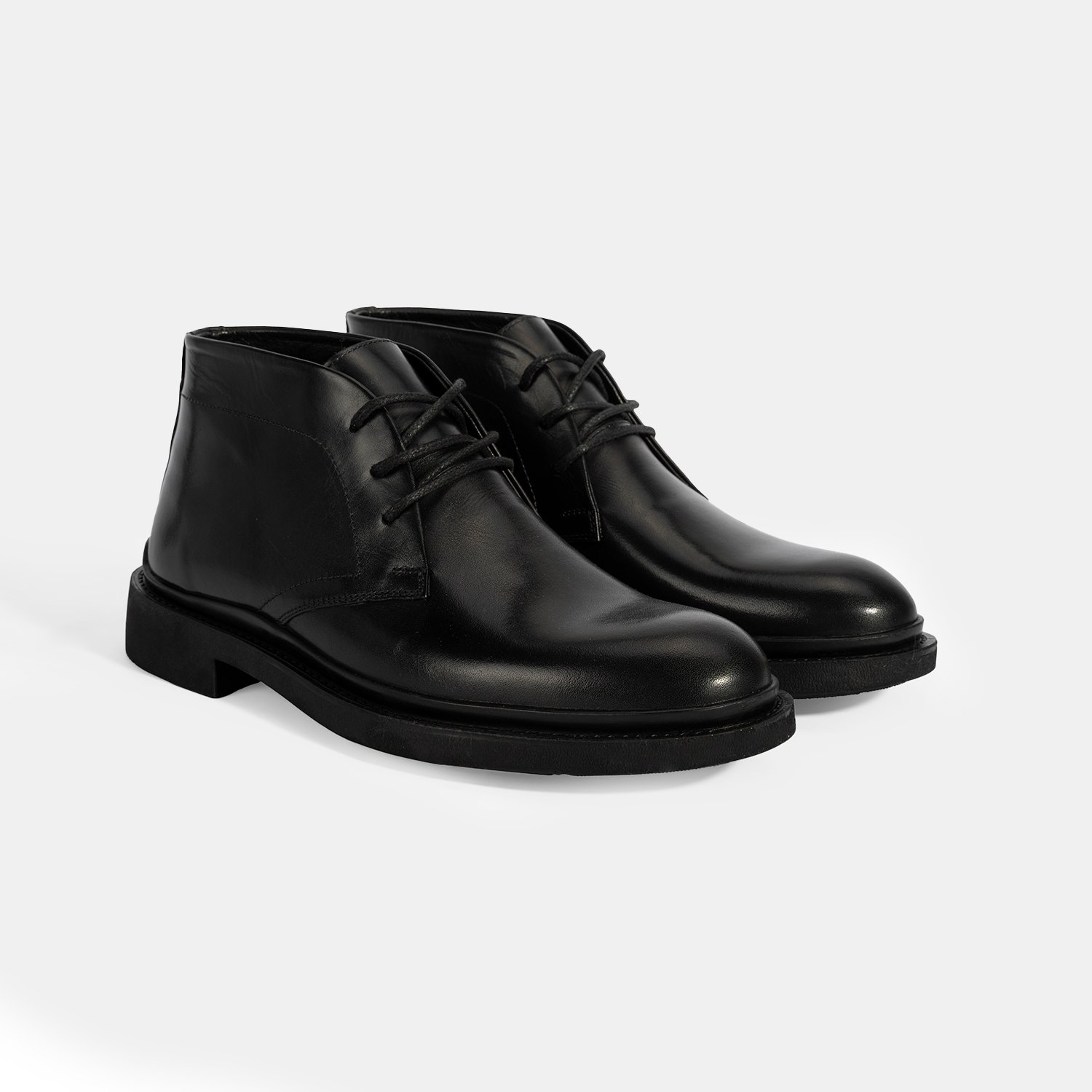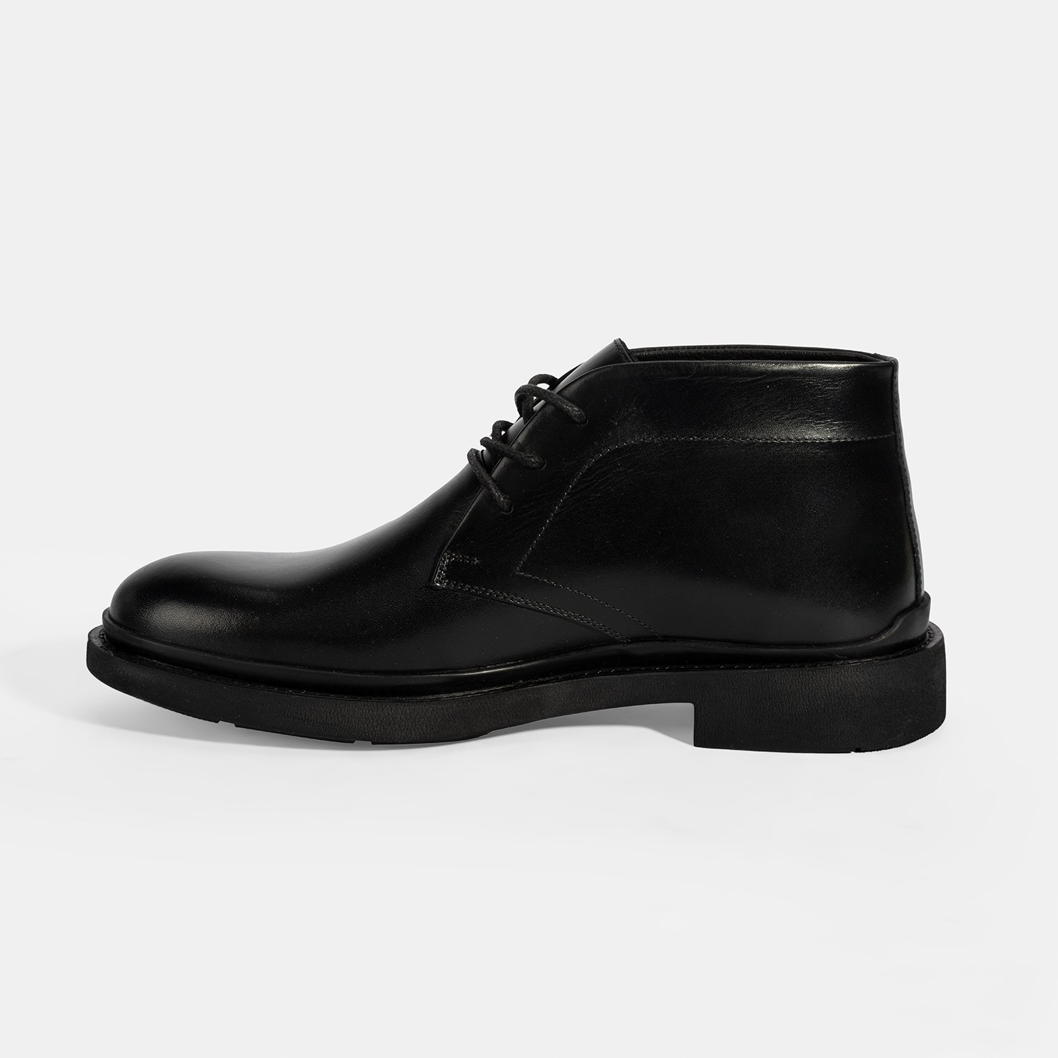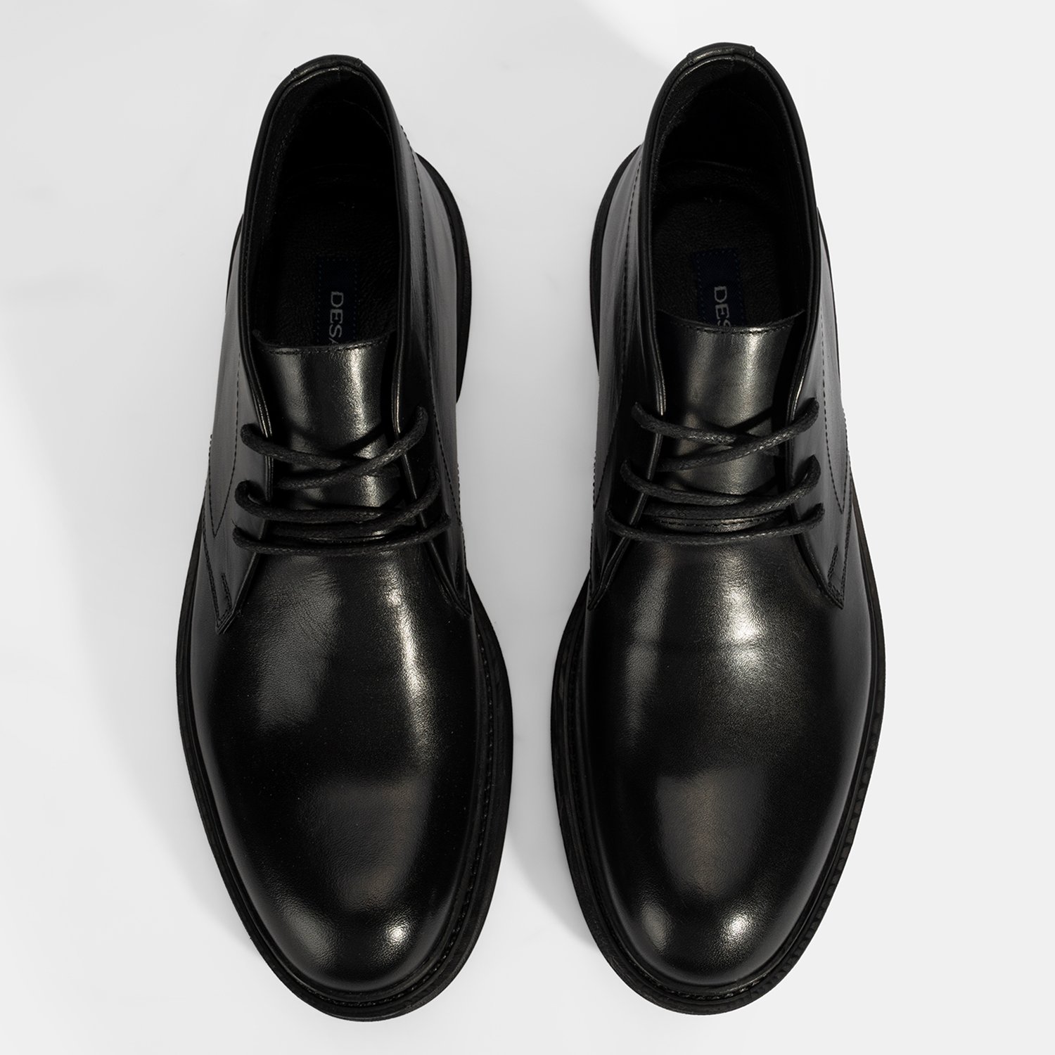 %100 deri, %100 deri mostrali, tekstil astarlı, bağcıklı, kauçuk tabanlı erkek bot.