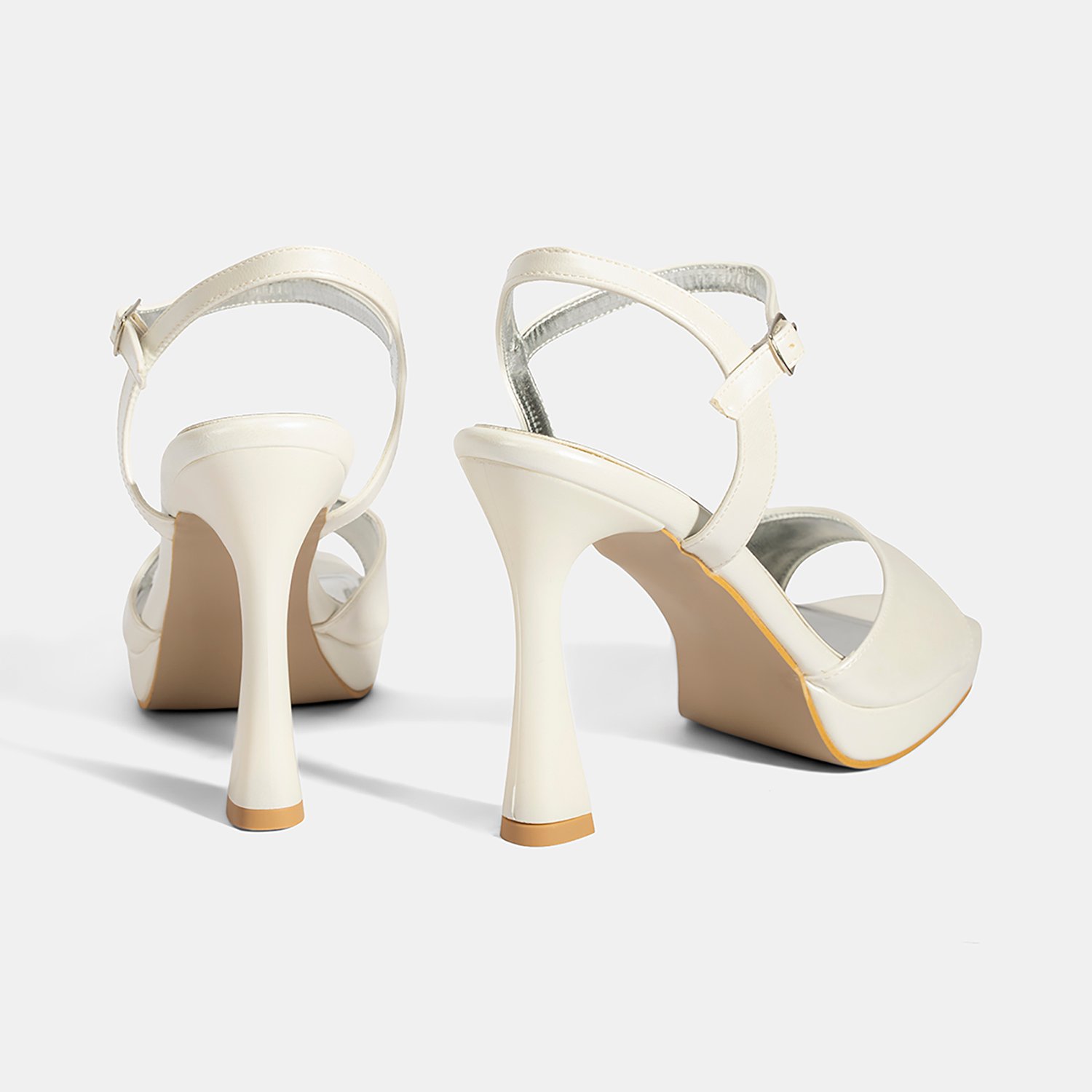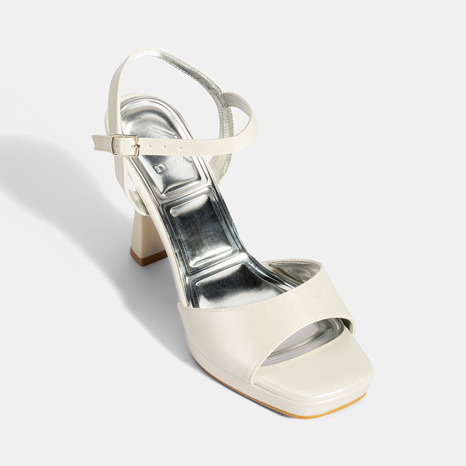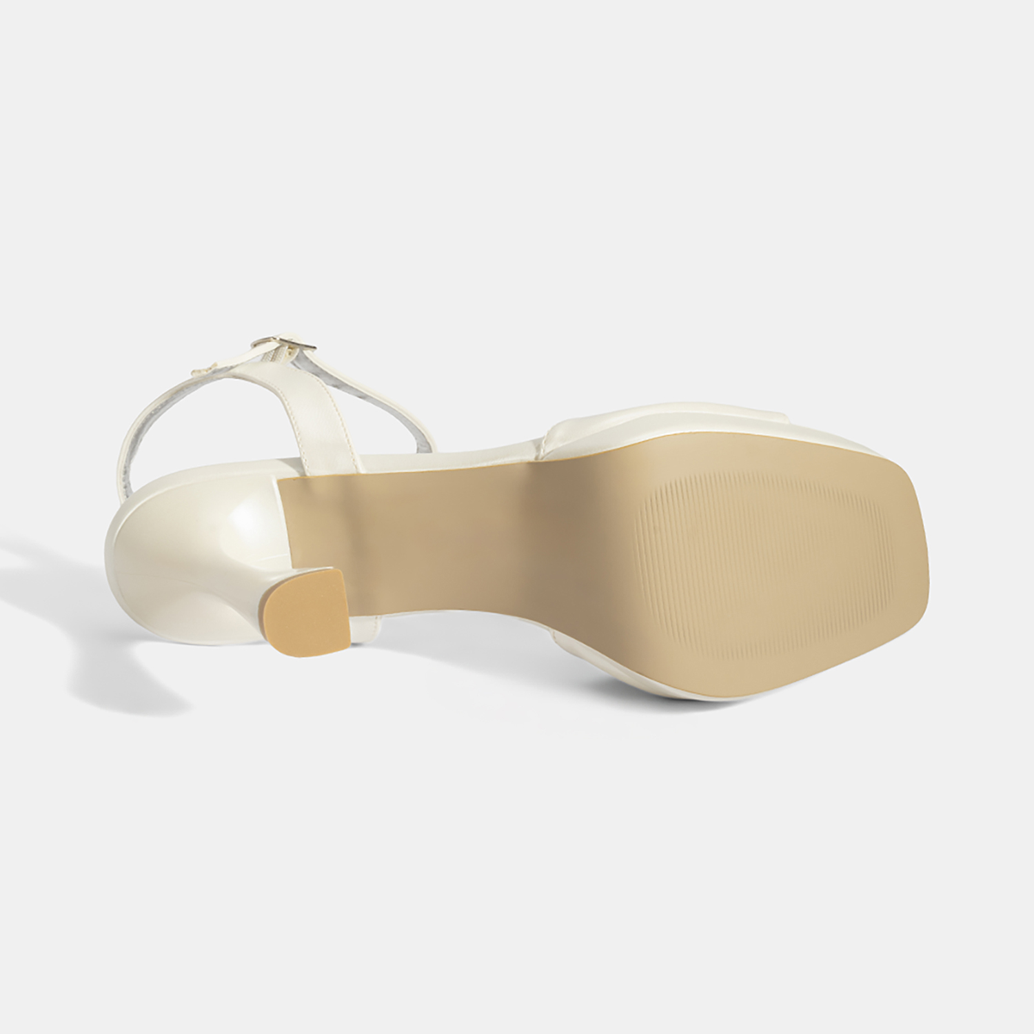 PU materyalden üretilmiştir, PU iç tabanlı, PU astarlı, neolit tabanlı, ayarlanabilir metal tokalı, platform topuklu kadın abiye gelinlik ayakkabısı.