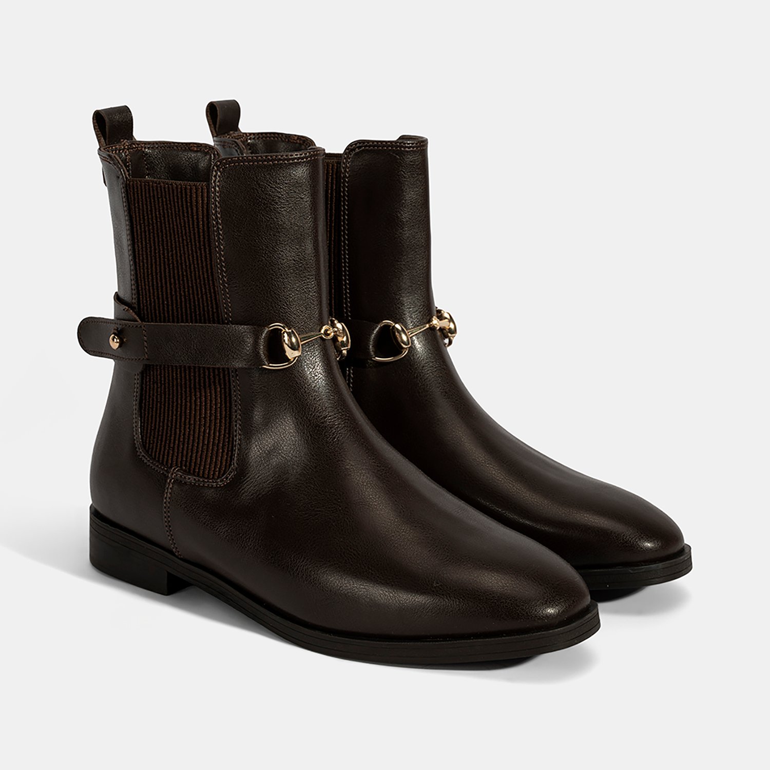 Kadın Kahve Metal Toka Aksesuarlı Bot