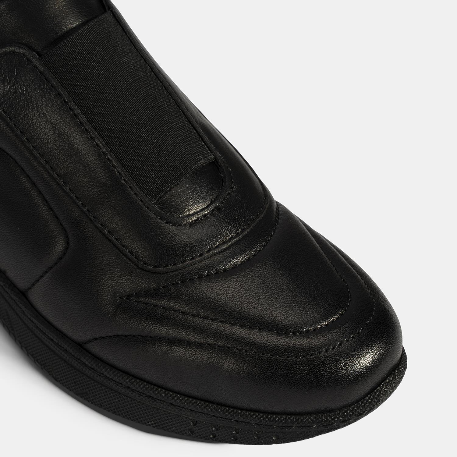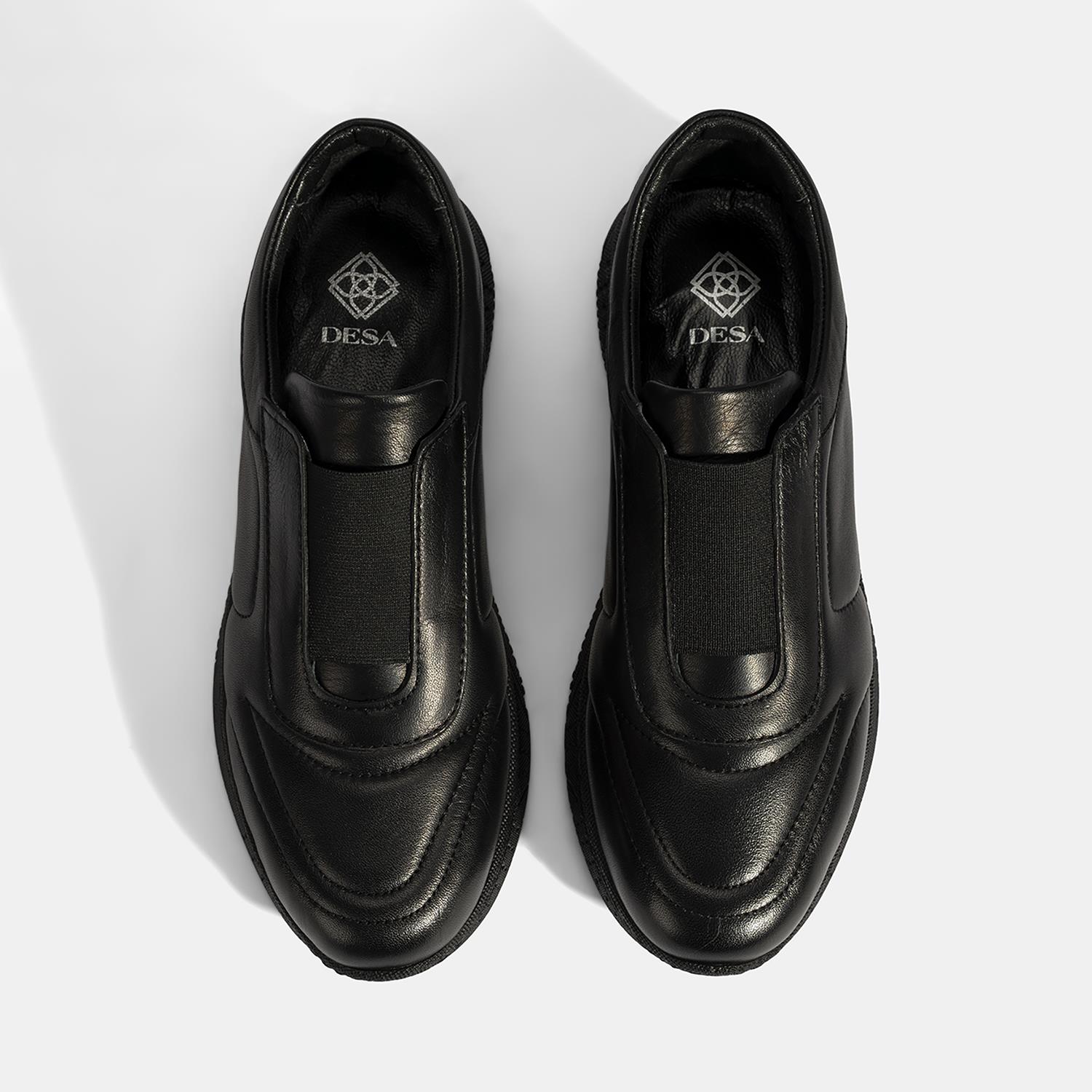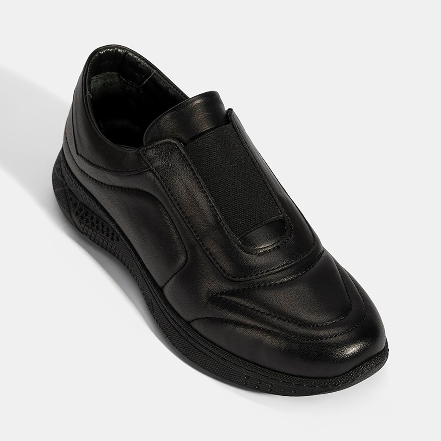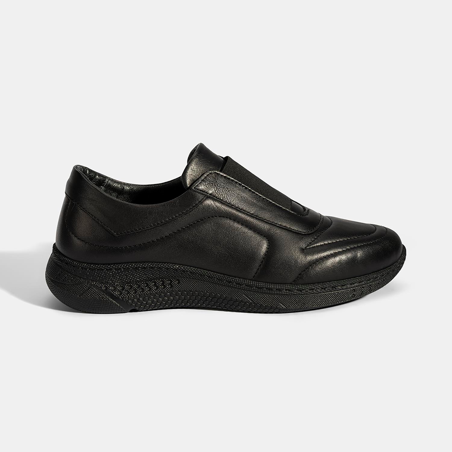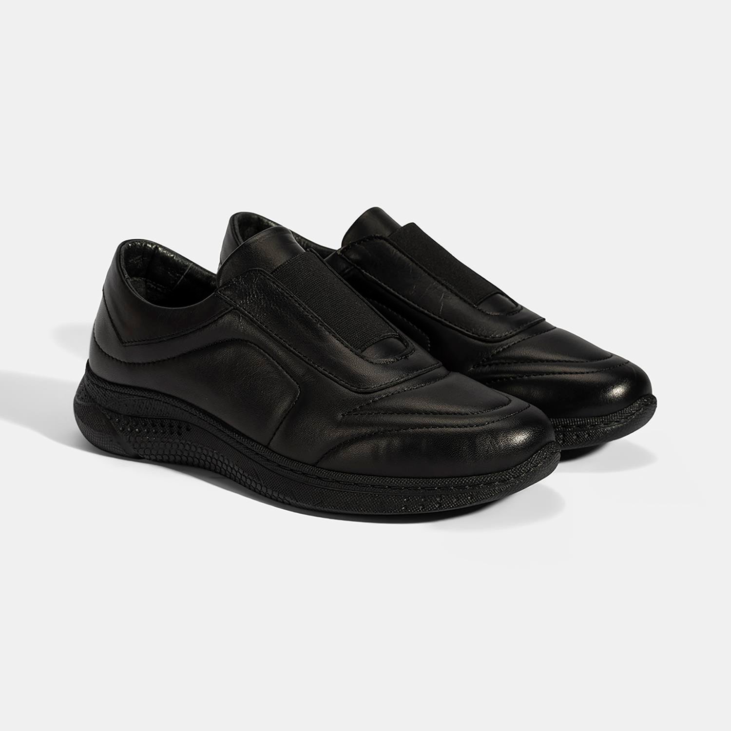 Kadın Siyah Lastikli Deri Spor Ayakkabı