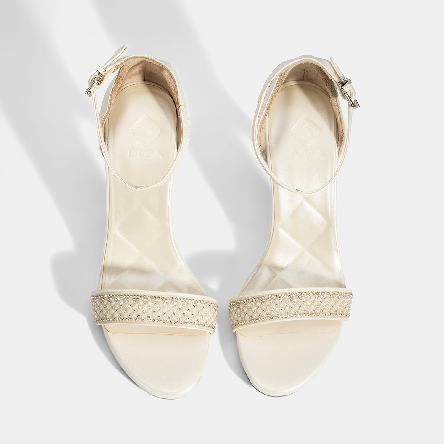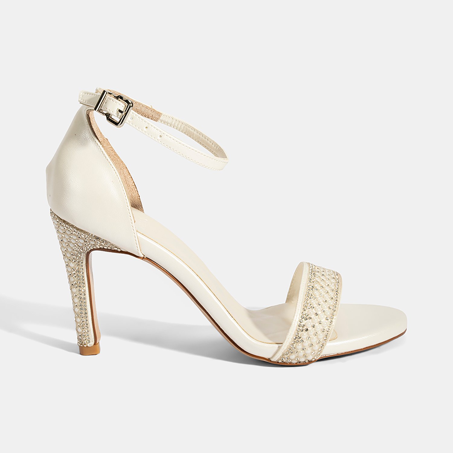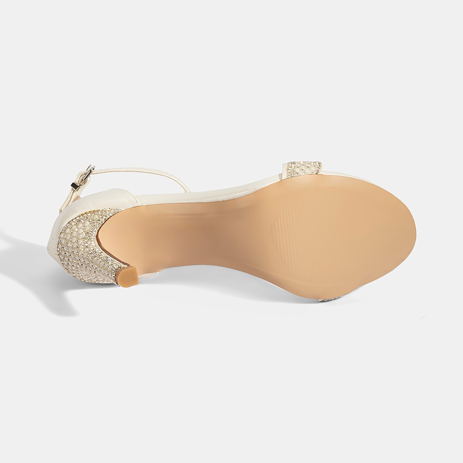 Kadın Beyaz Ayarlanabilir Tokalı Taşlı Topuklu Abiye Sandalet