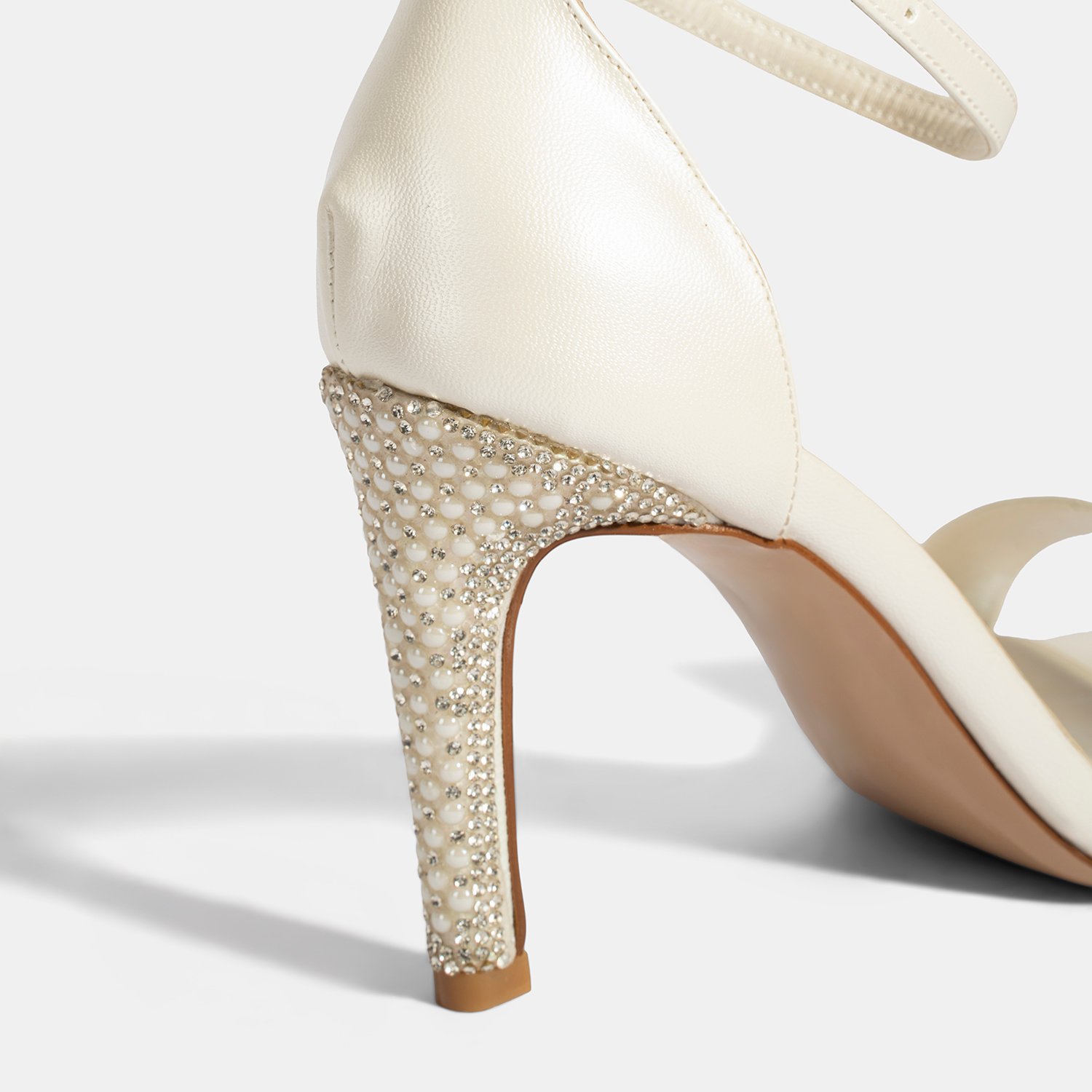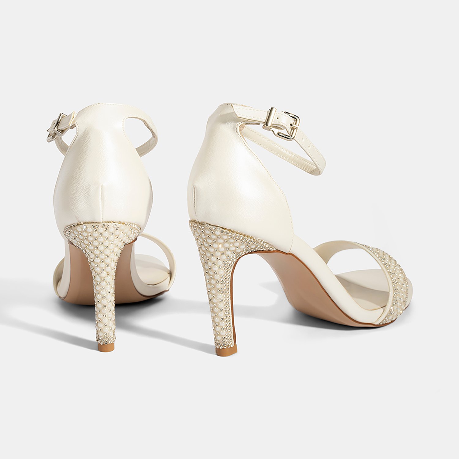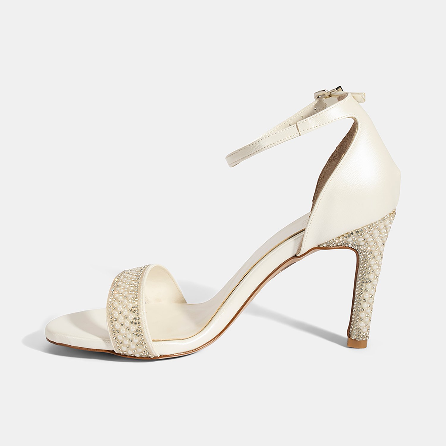Kadın Beyaz Ayarlanabilir Tokalı Taşlı Topuklu Abiye Sandalet