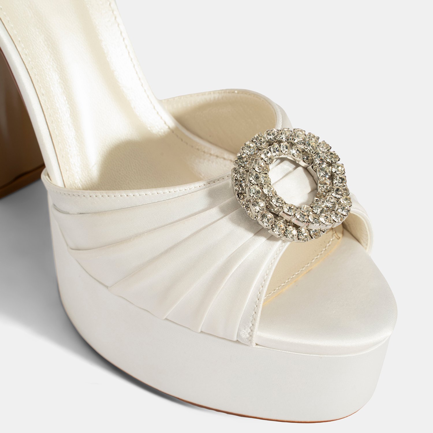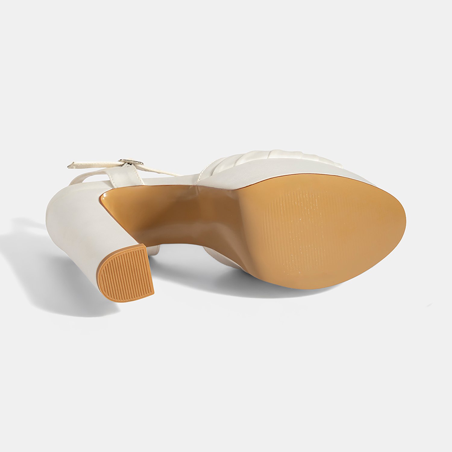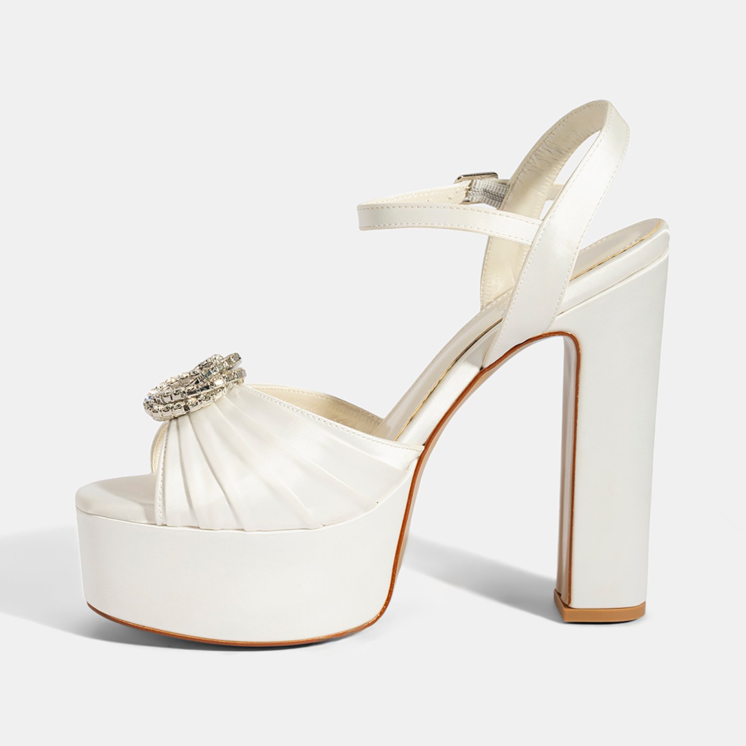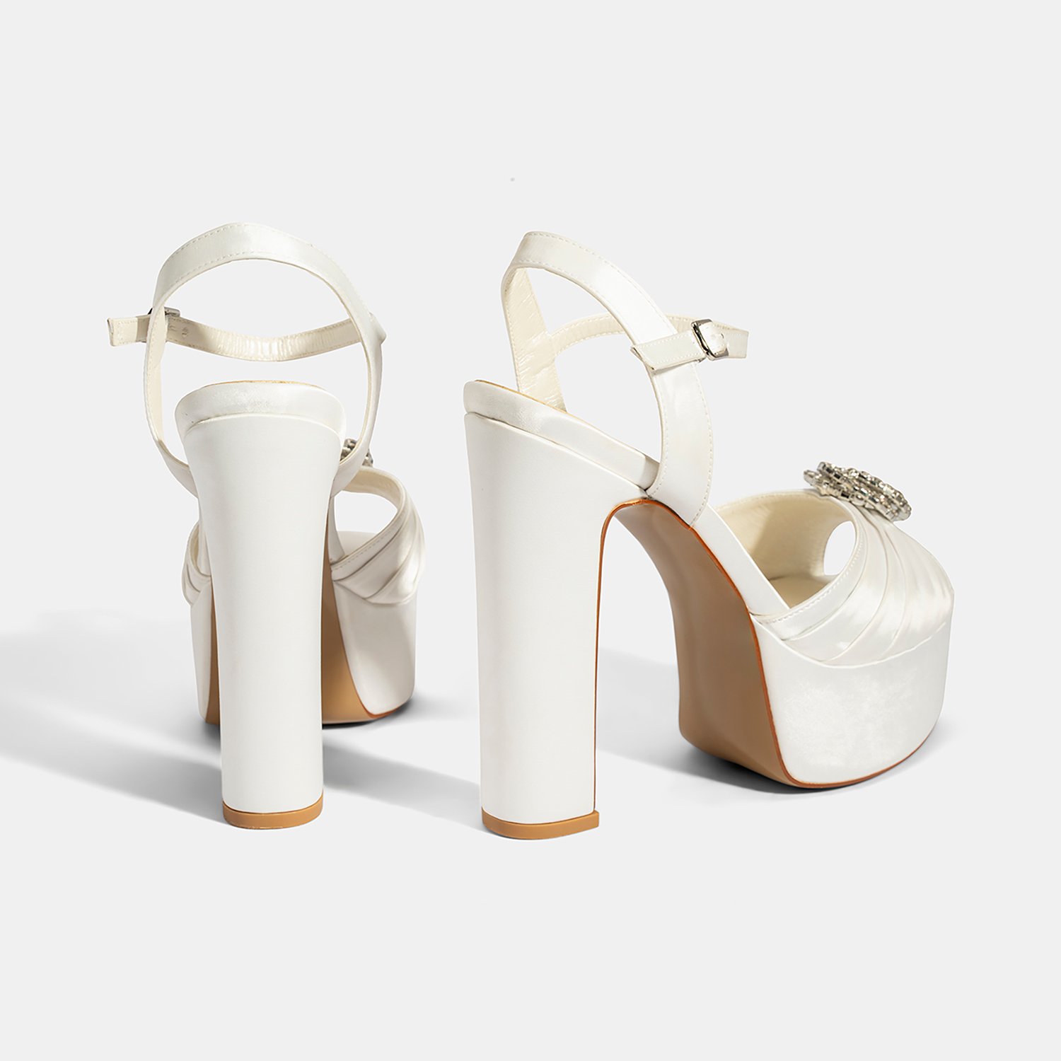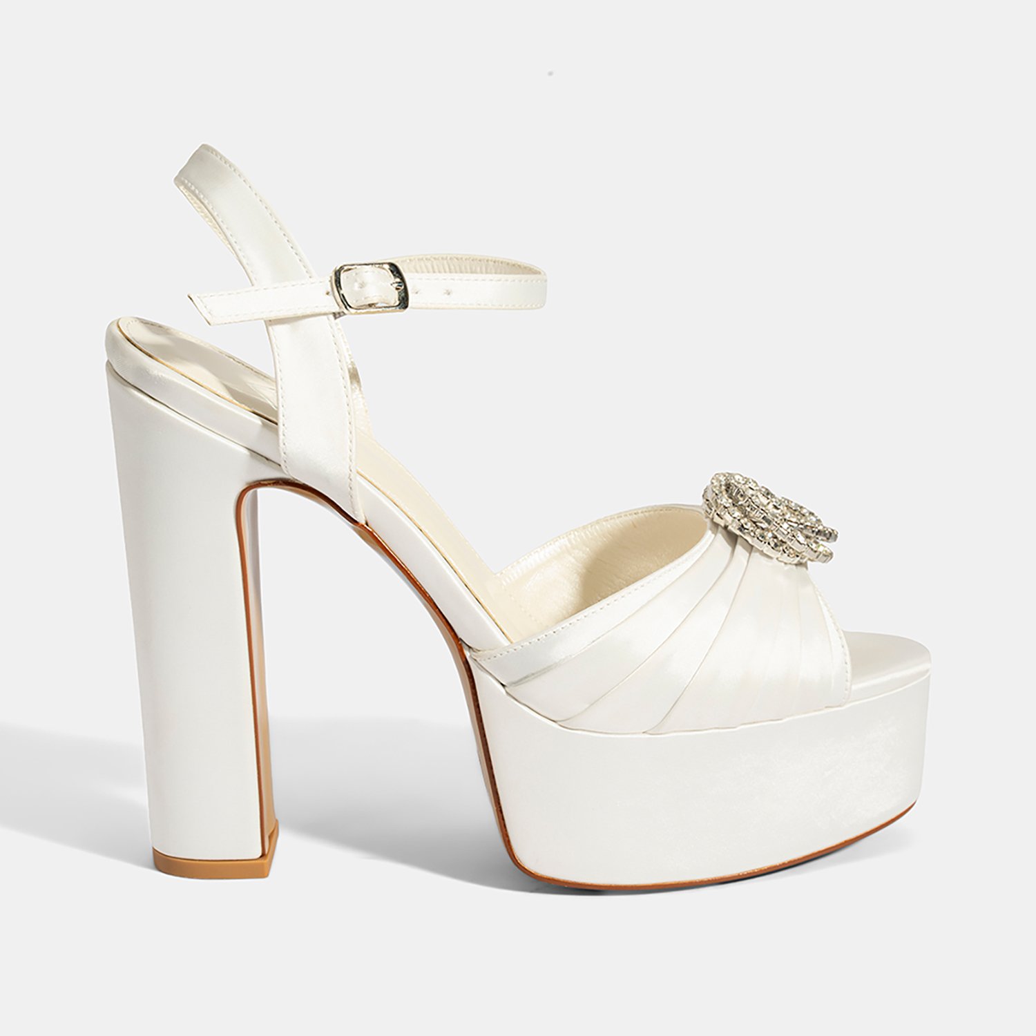 Kadın Beyaz Ayarlanabilir Tokalı Taşlı Topuklu Gelin Ayakkabısı