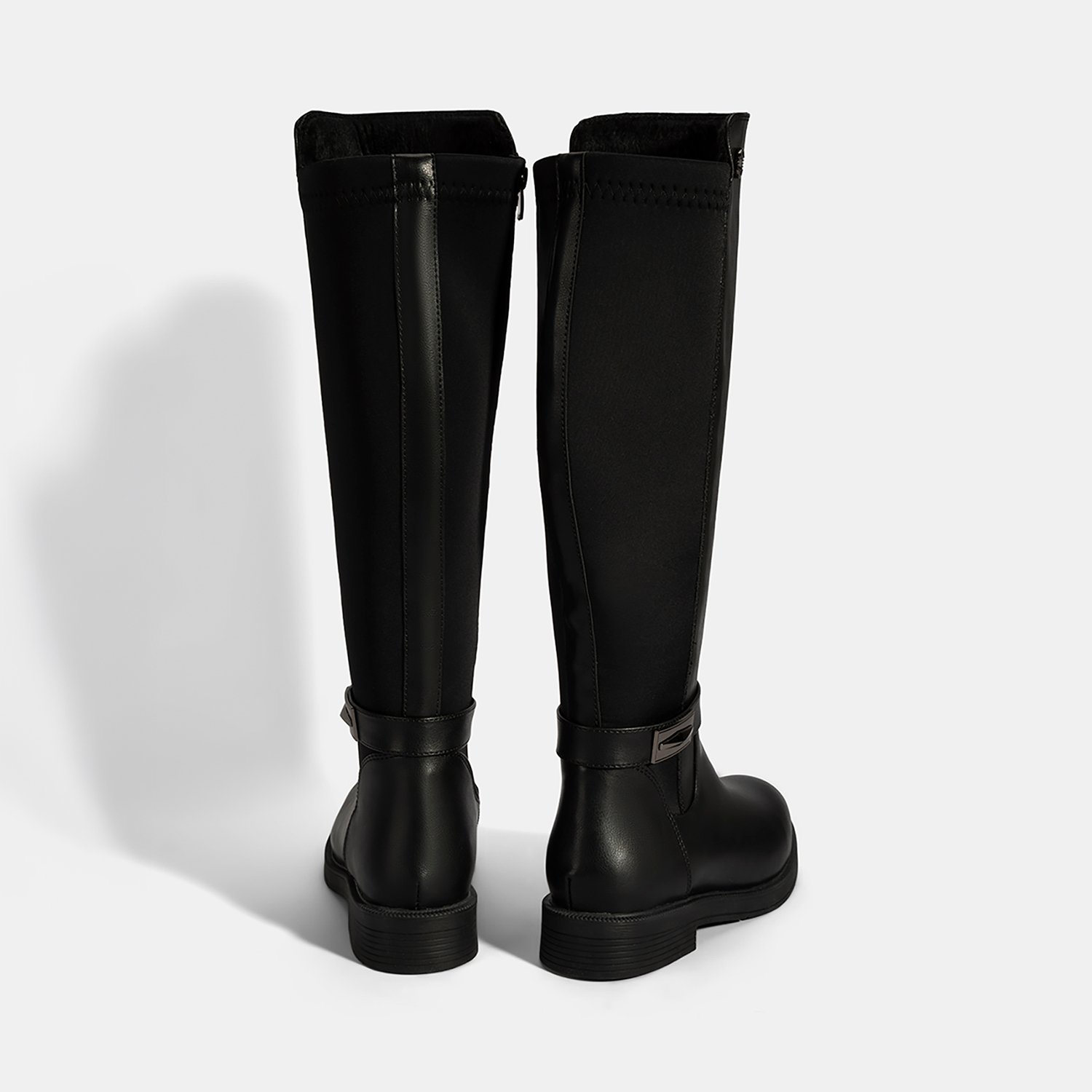 PU materyalden üretilmiştir. Tekstil sıcak astarlı, tekstil iç tabanlı, termo tabanlı, stretch konç detaylı kadın çizme. Topuk yüksekliği: 3 cm.