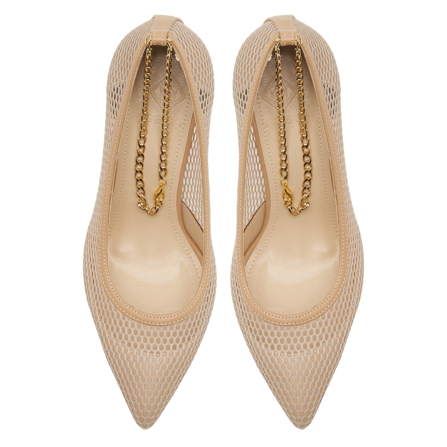 Ayarlanabilir zincir detaylı, neolit tabanlı kadın klasik ayakkabı.
