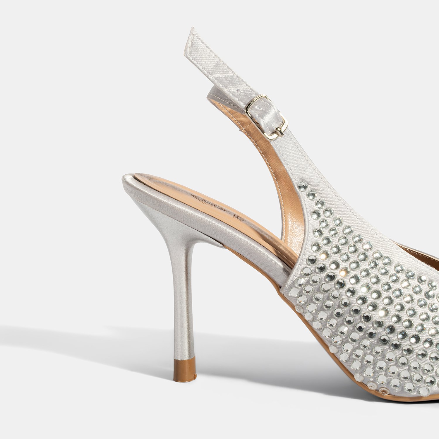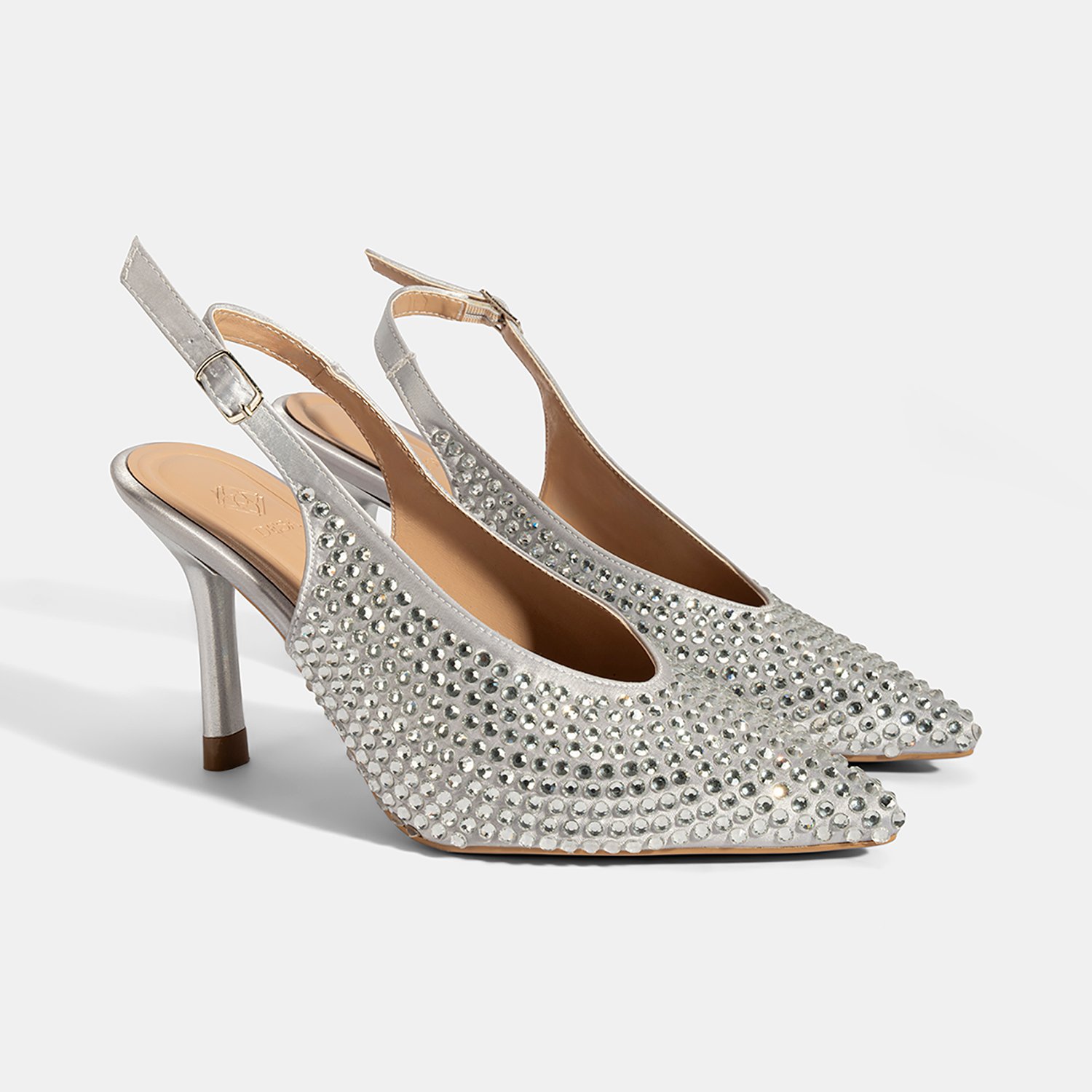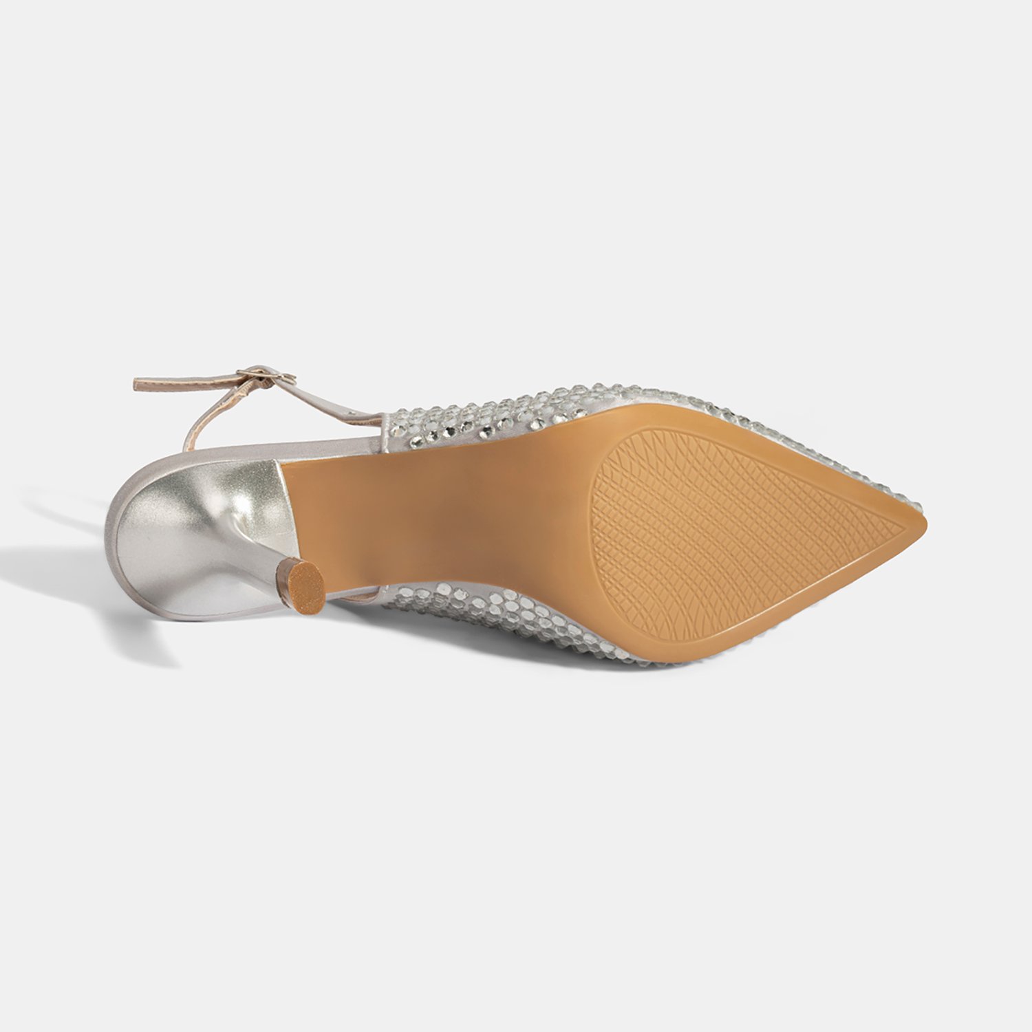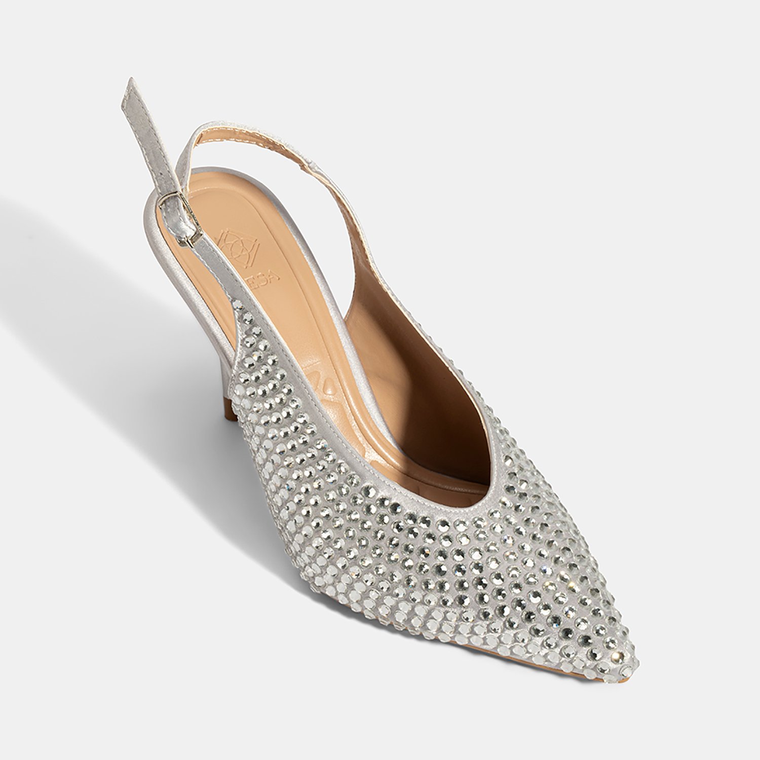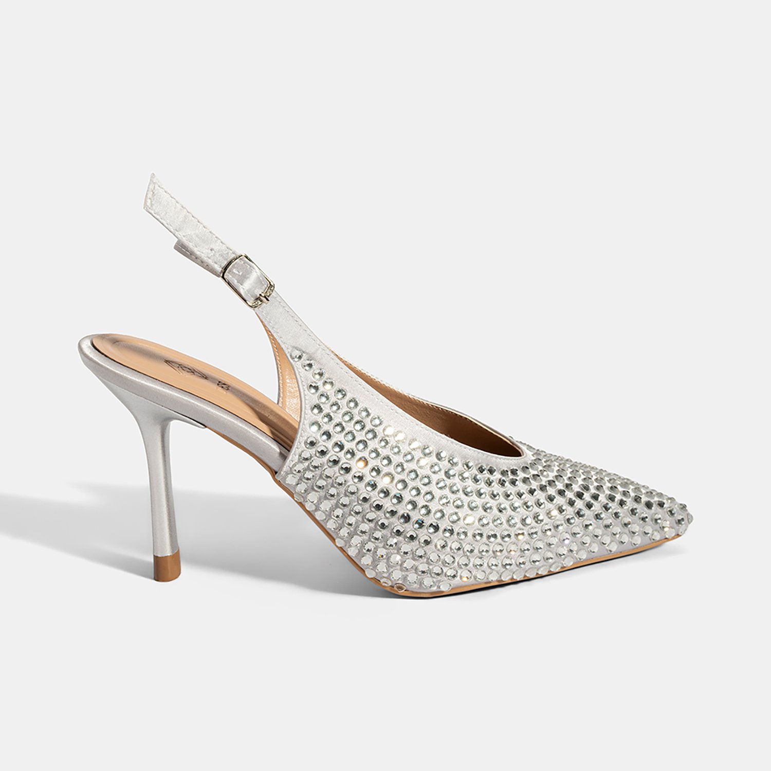 Kadın Gümüş Ayarlanabilir Metal Tokalı Taşlı Abiye Ayakkabı