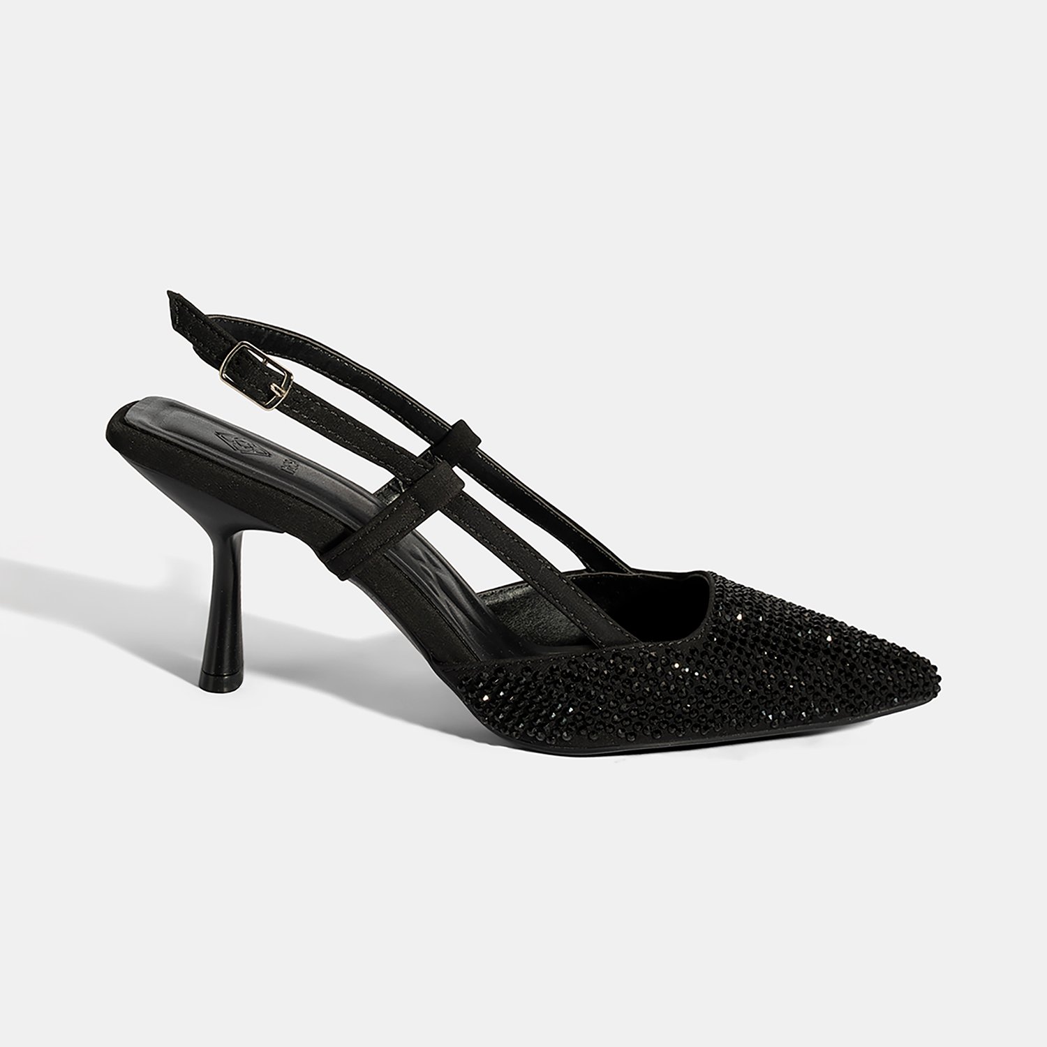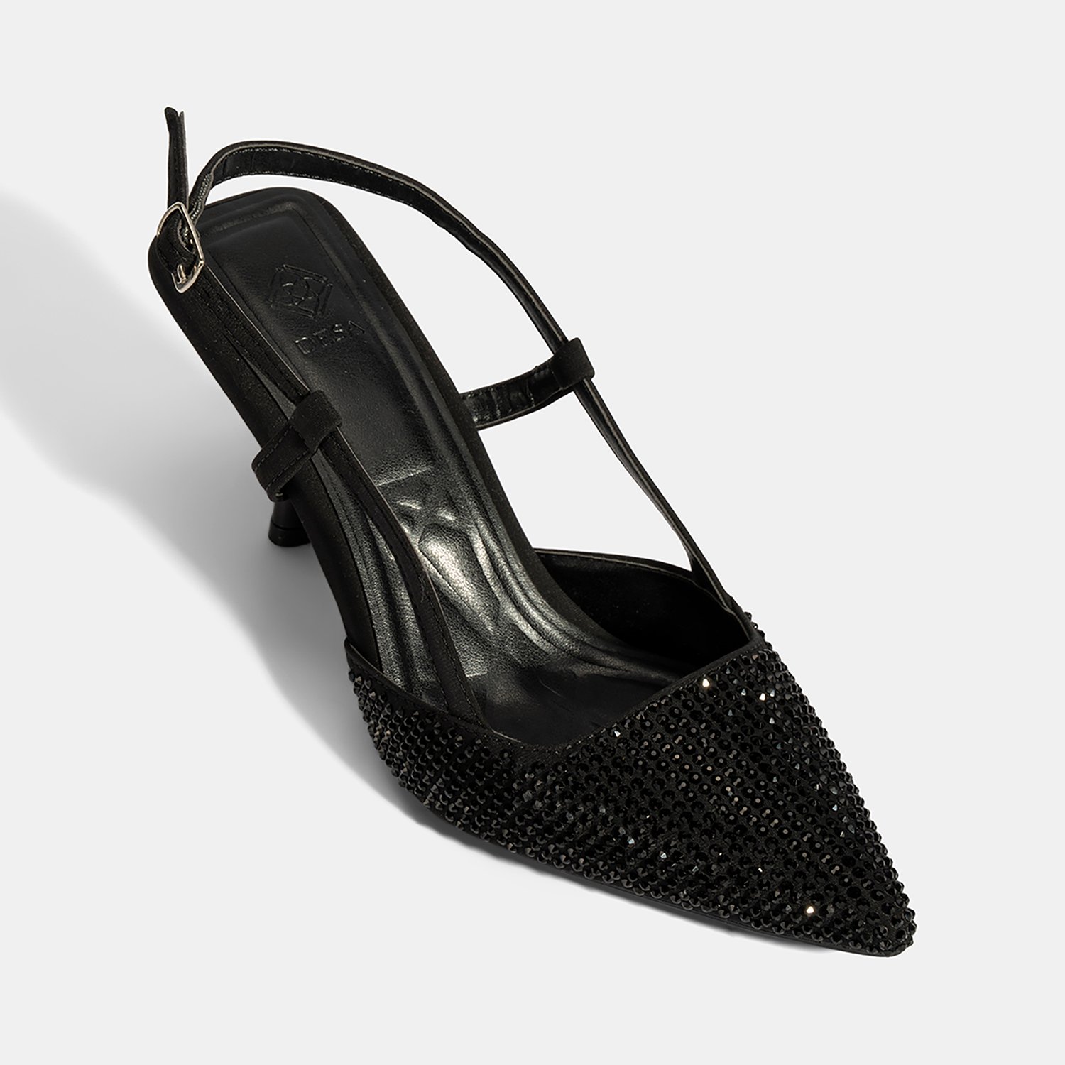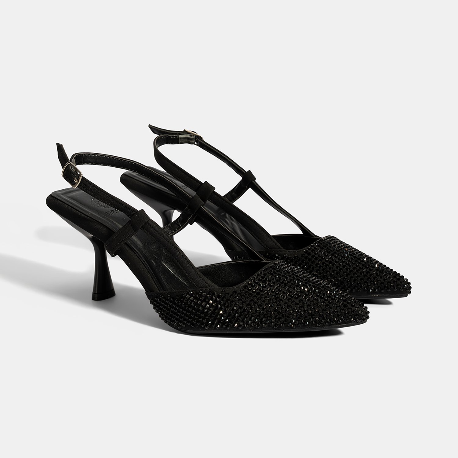 Kadın Siyah Ayarlanabilir Metal Tokalı Taşlı Abiye Ayakkabı