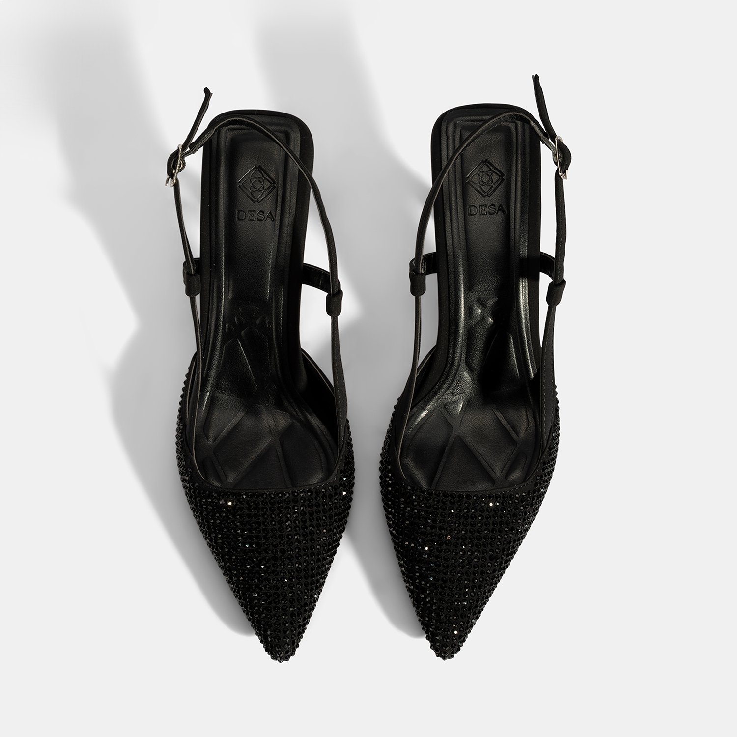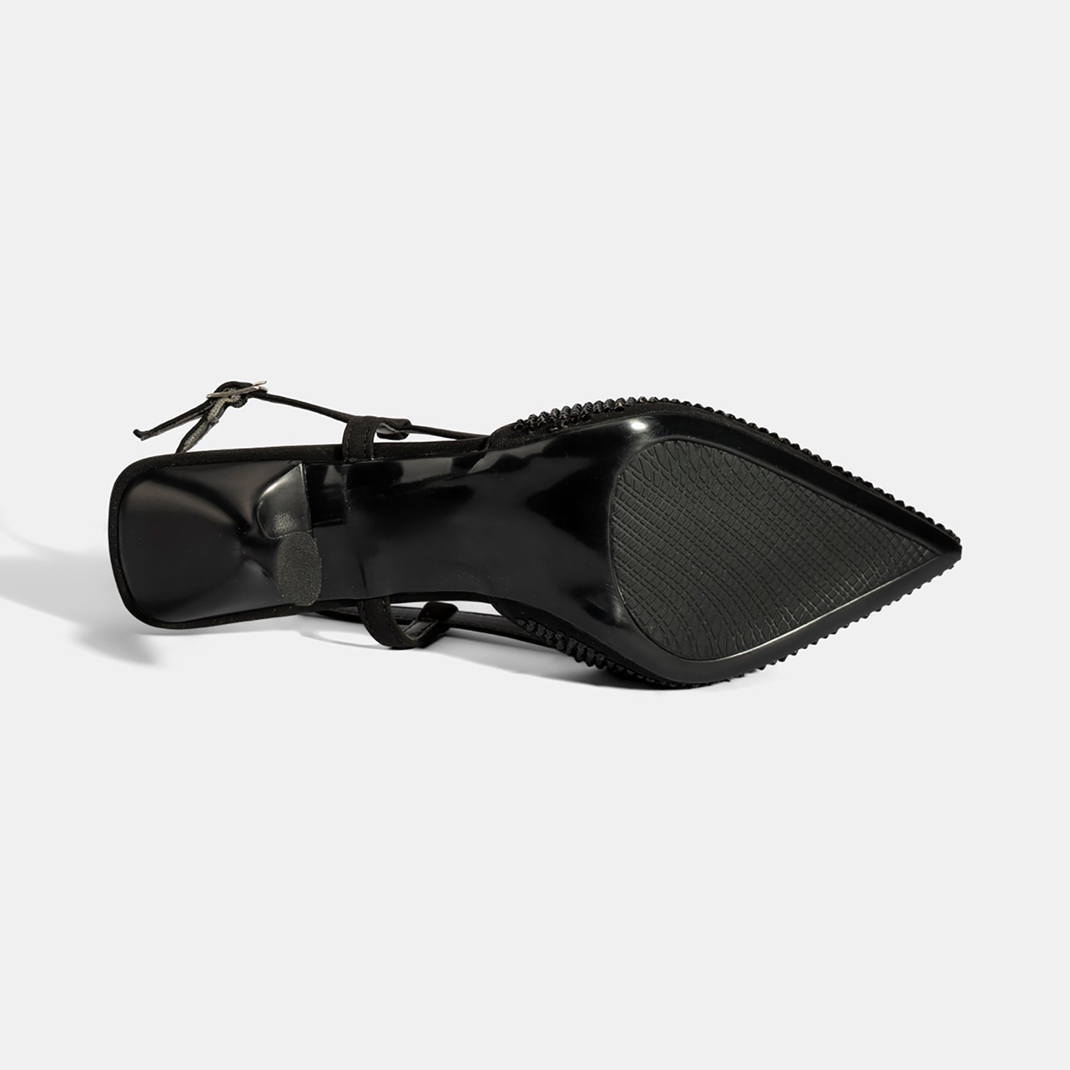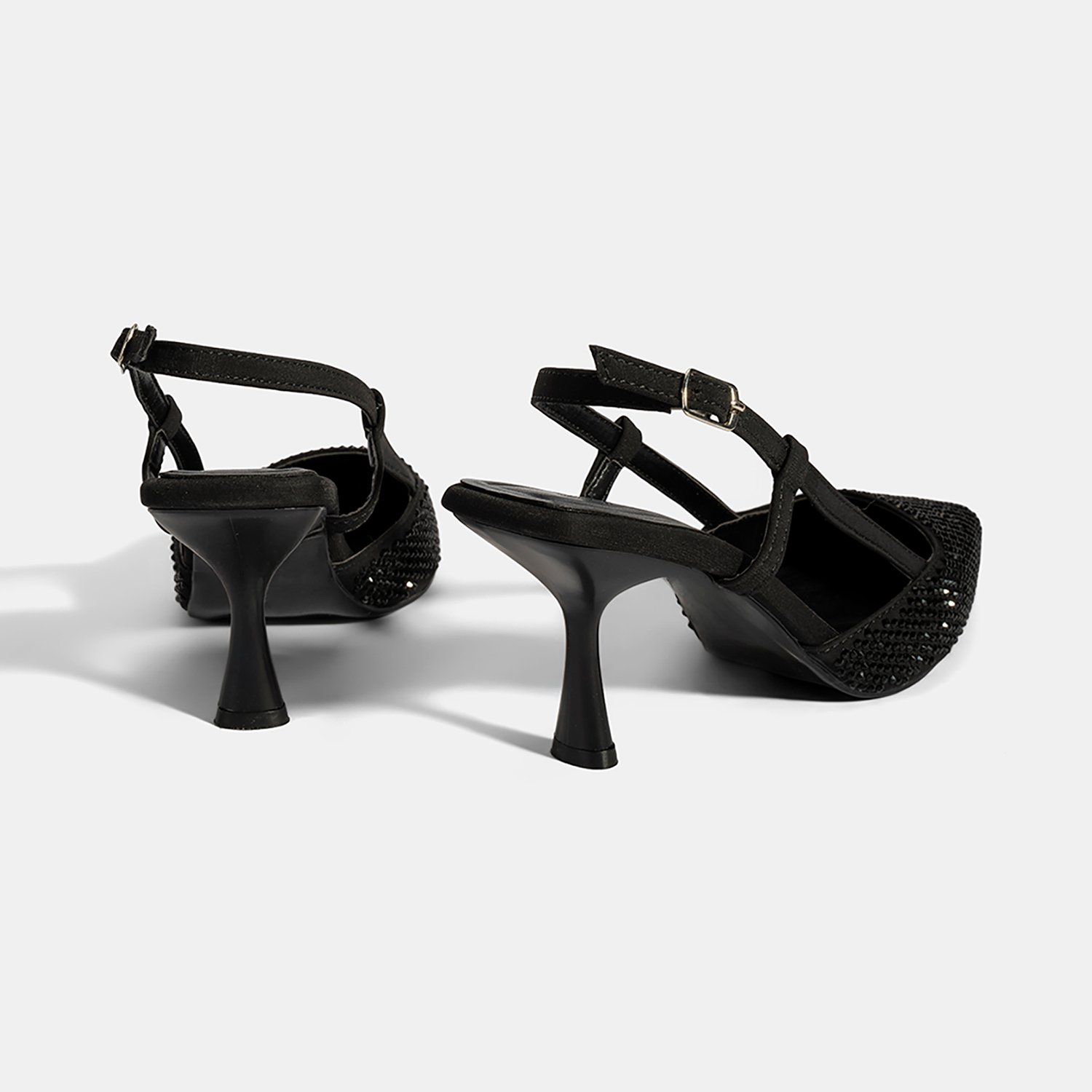 Kadın Siyah Ayarlanabilir Metal Tokalı Taşlı Abiye Ayakkabı