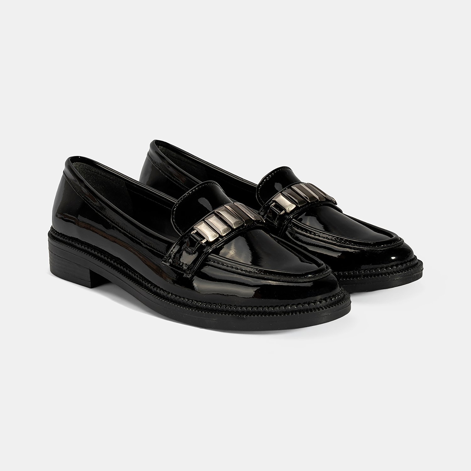 Kadın Siyah Metal Aksesuarlı Loafer