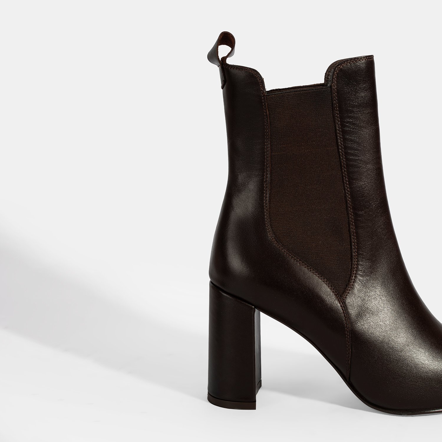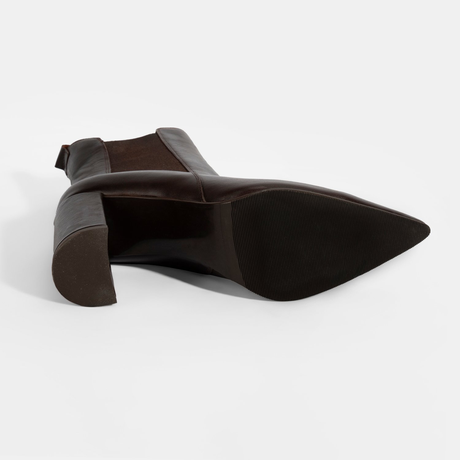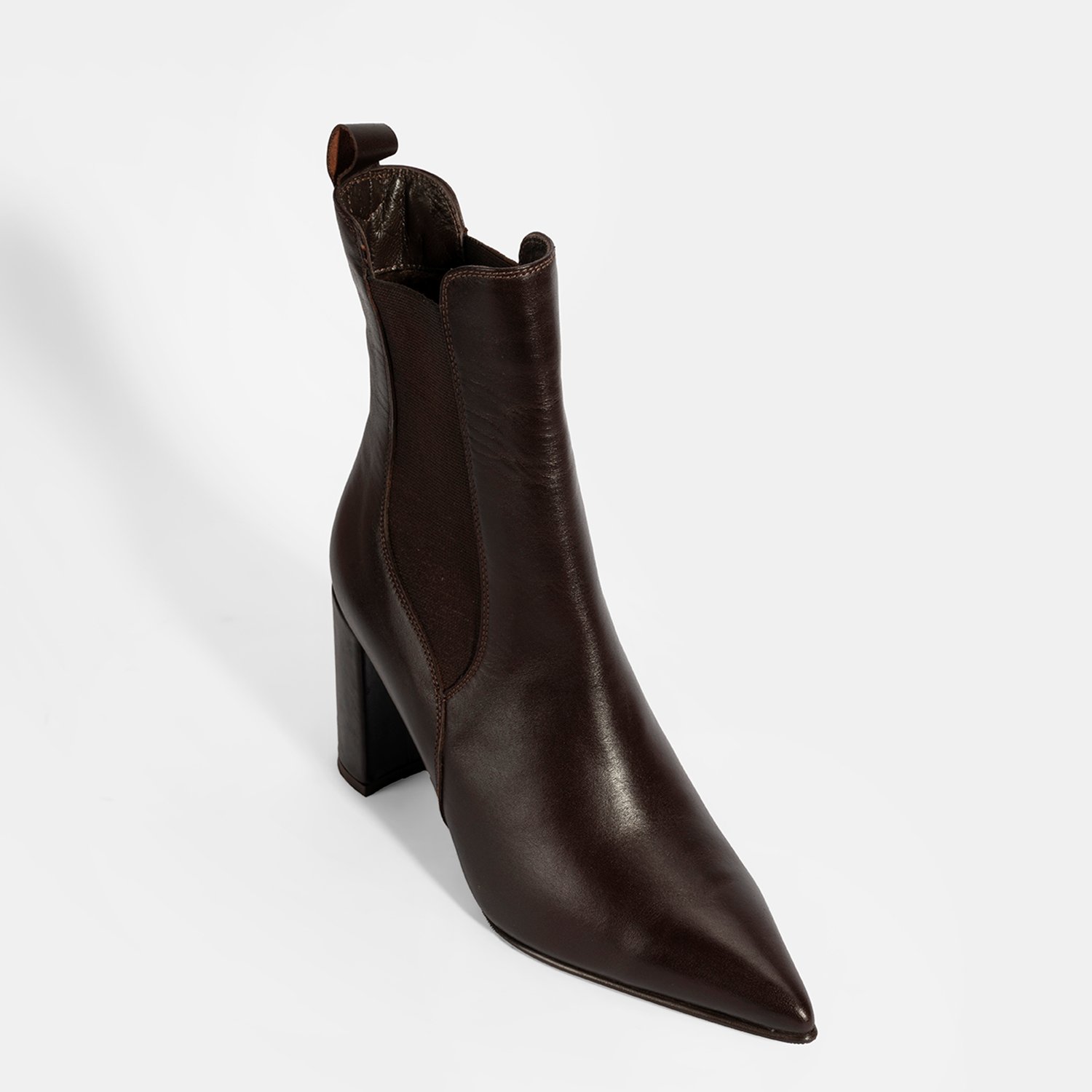 Kadın Kahve Lastikli Topuklu Deri Bot