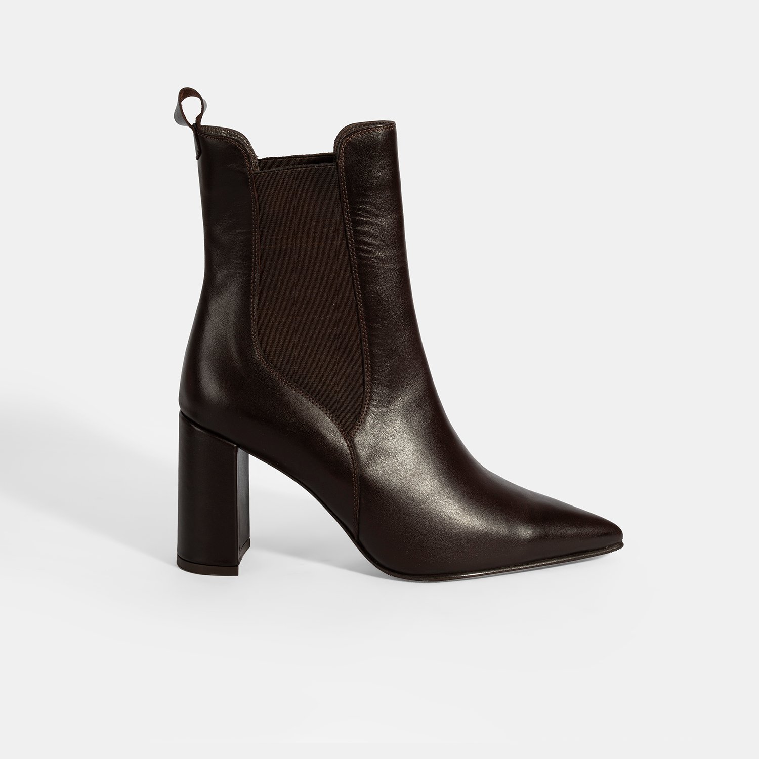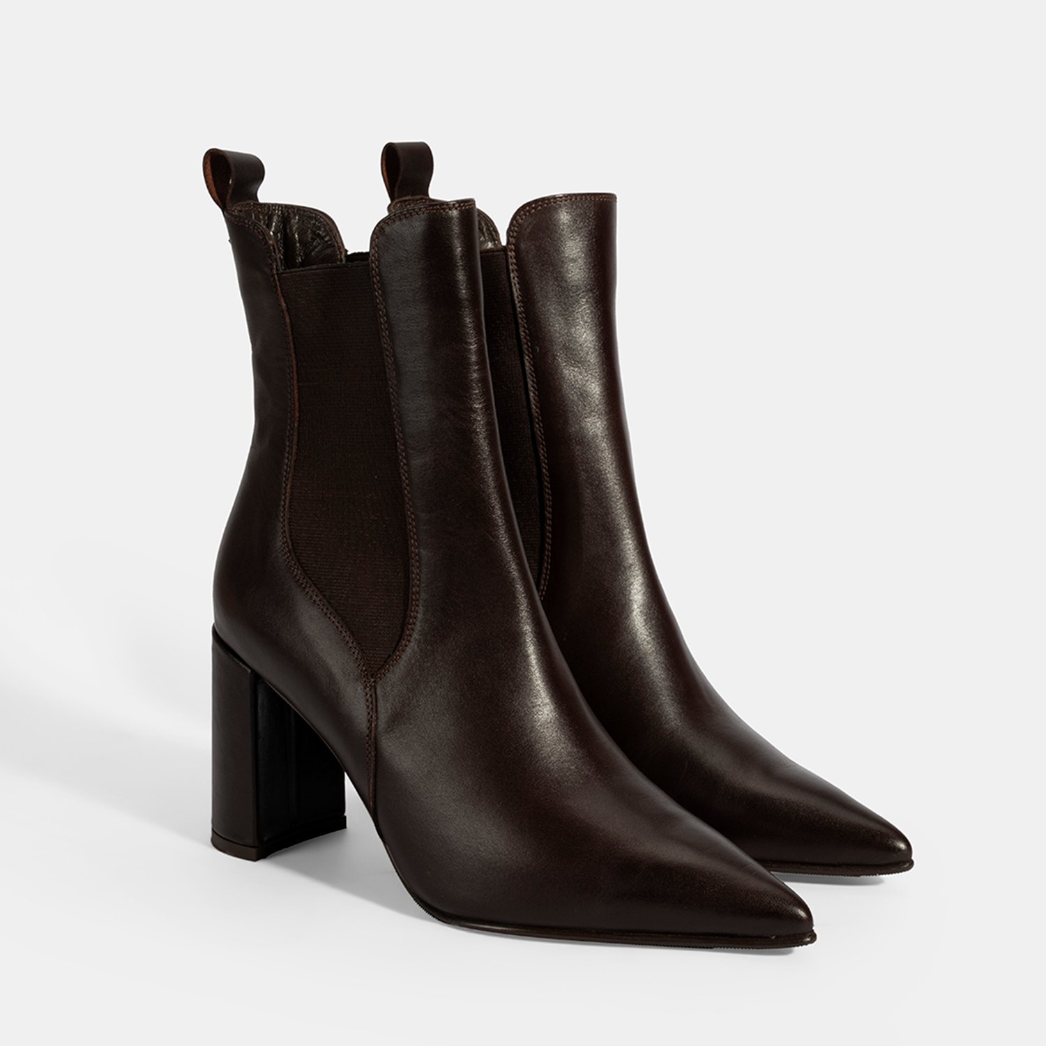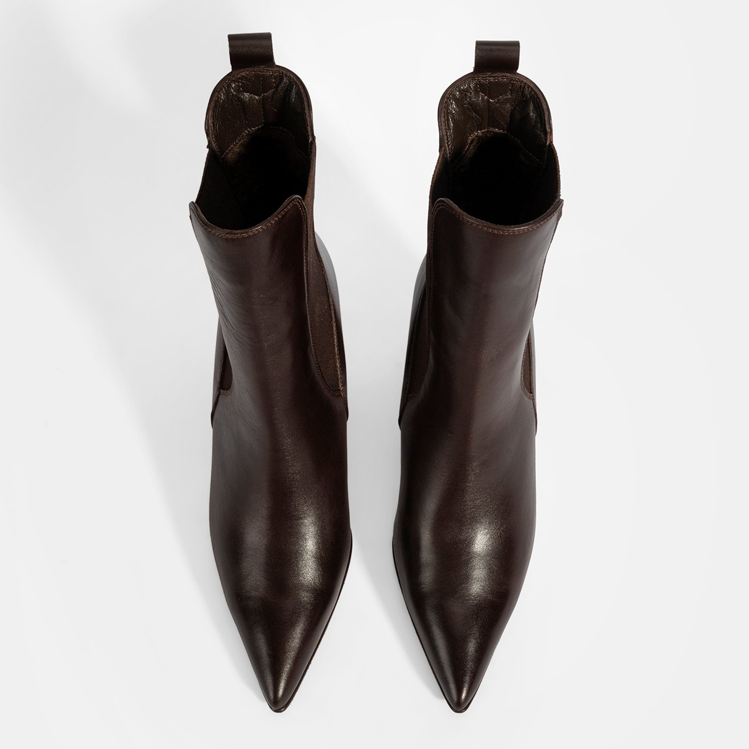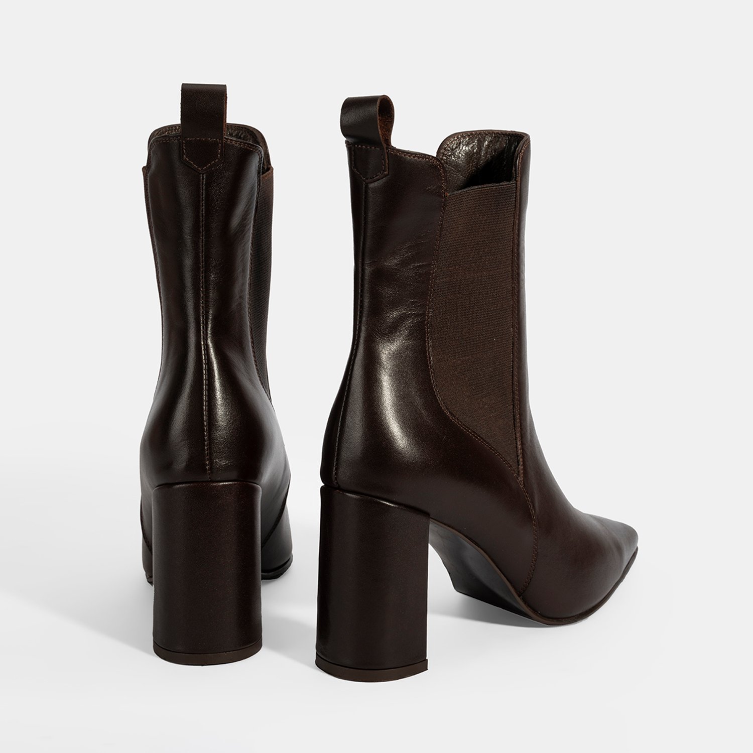 Kadın Kahve Lastikli Topuklu Deri Bot