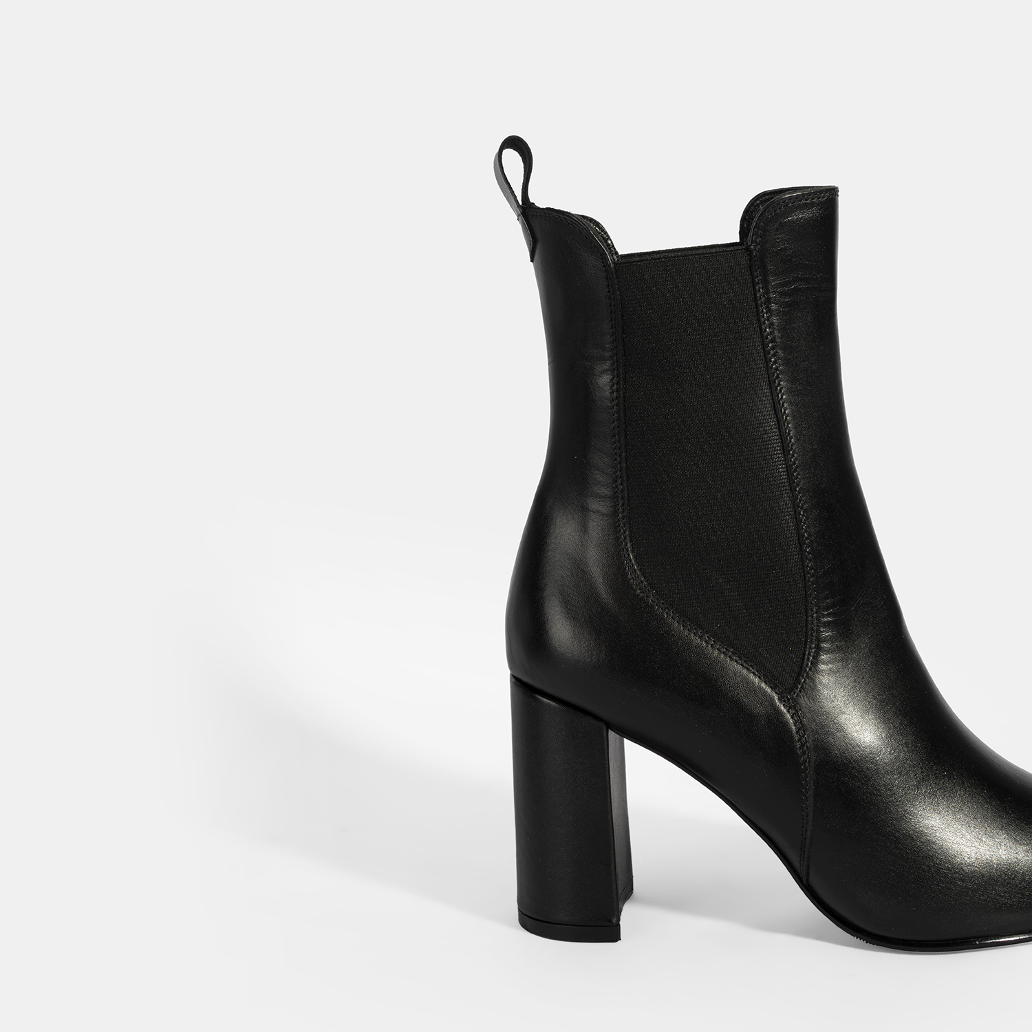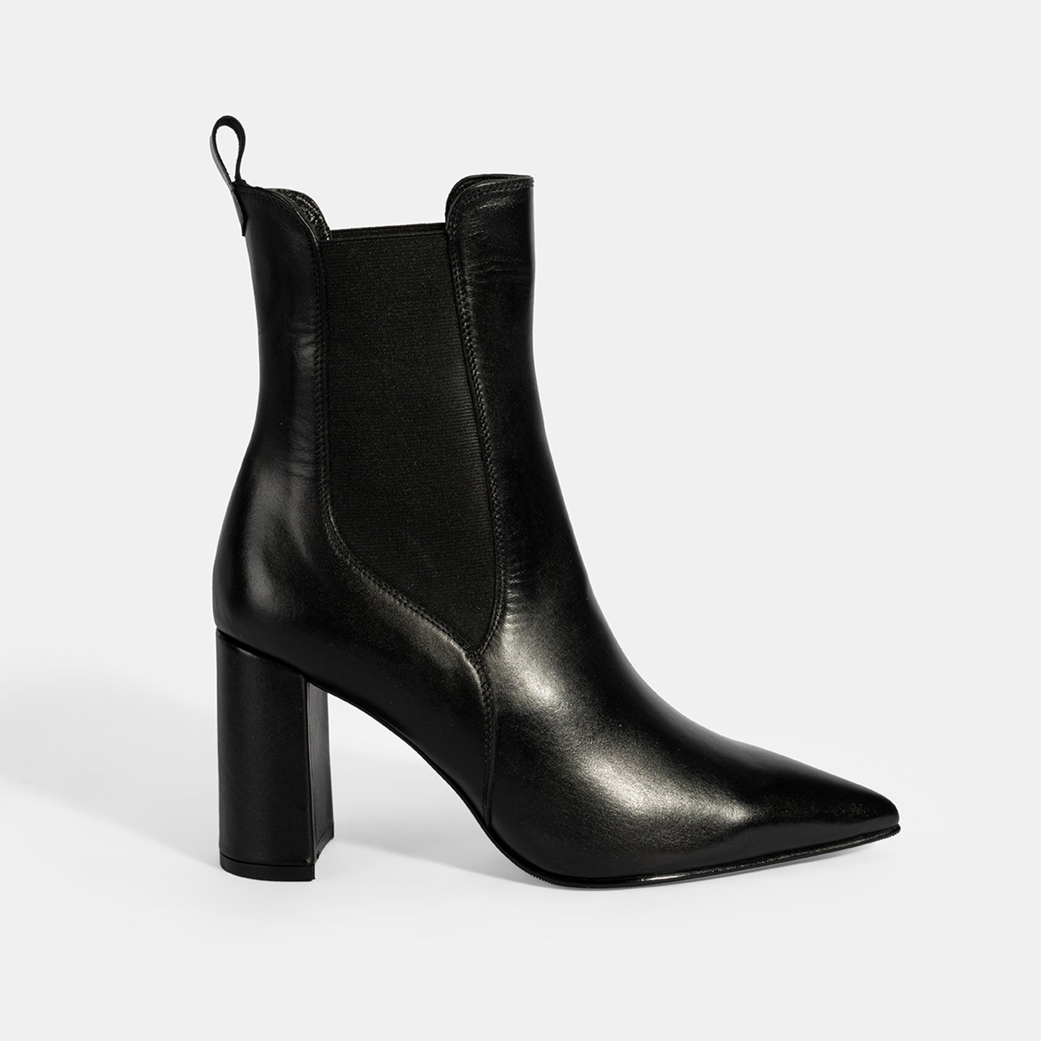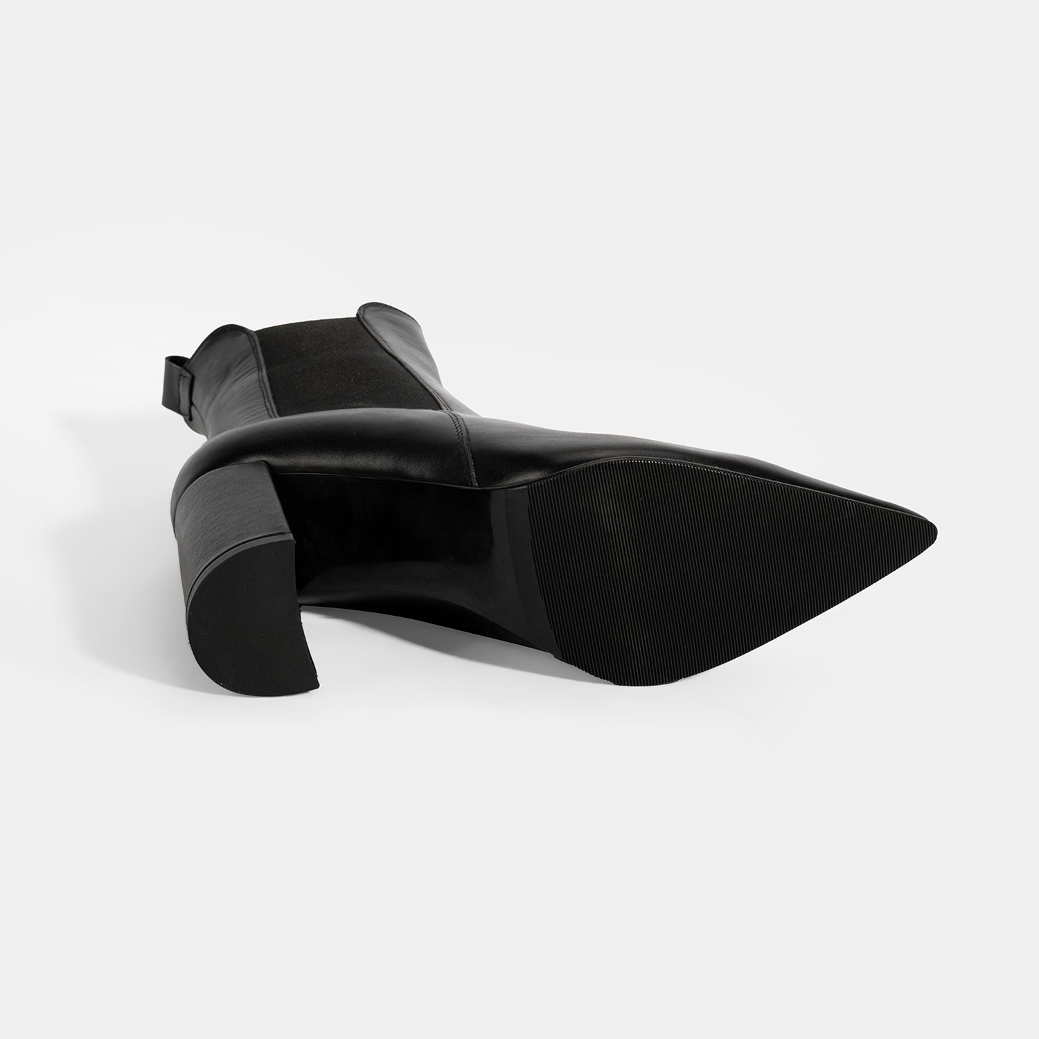 Kadın Siyah Lastikli Topuklu Deri Bot