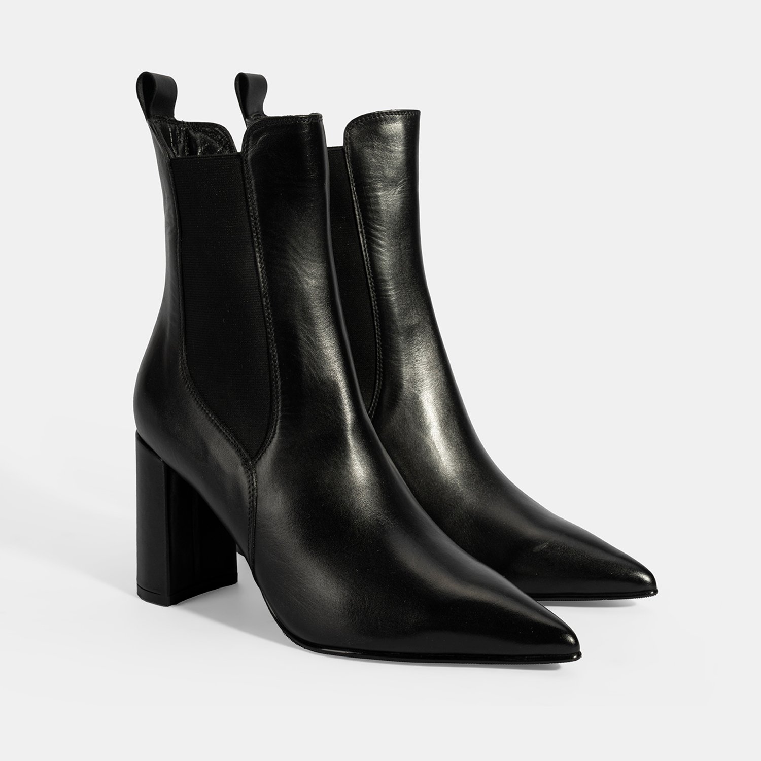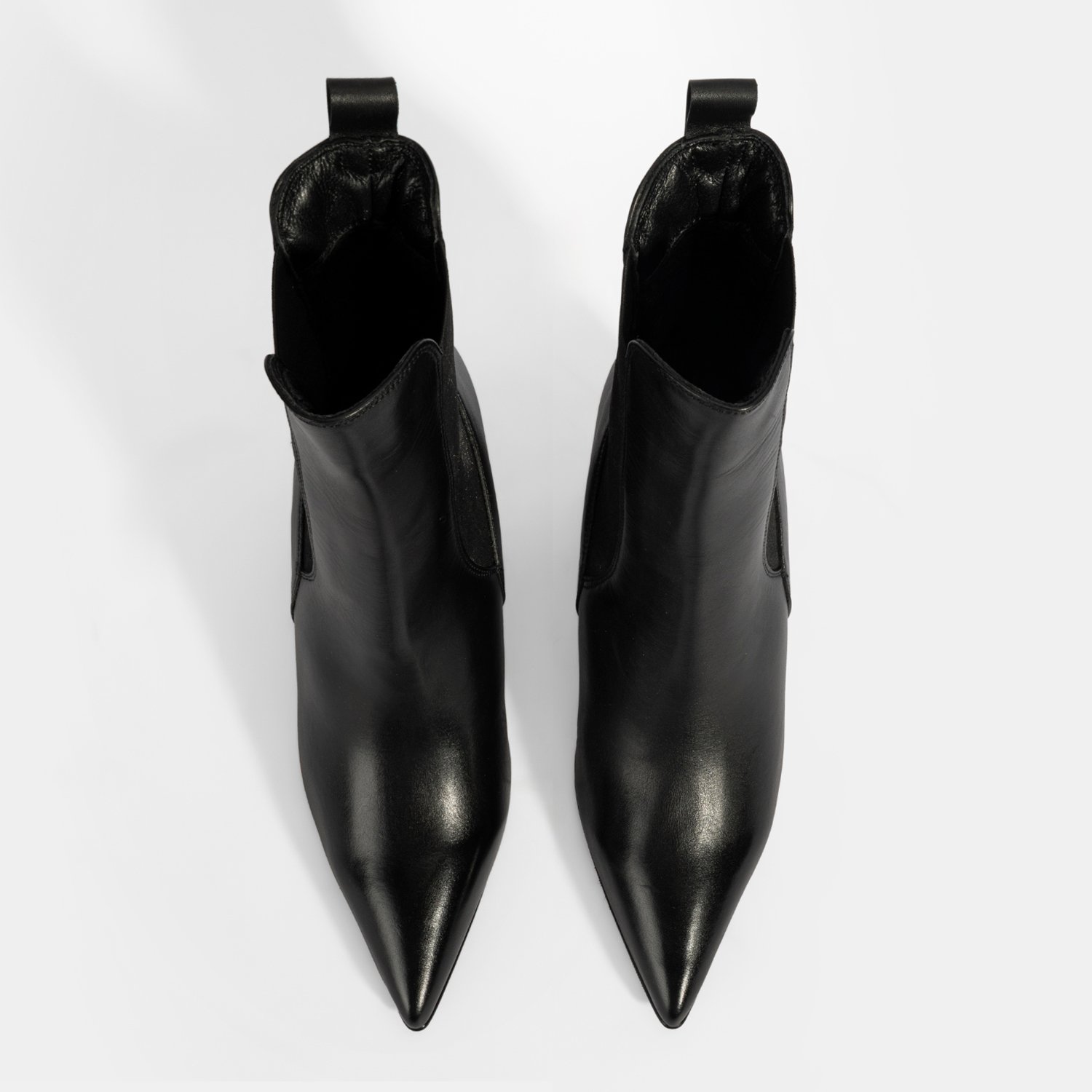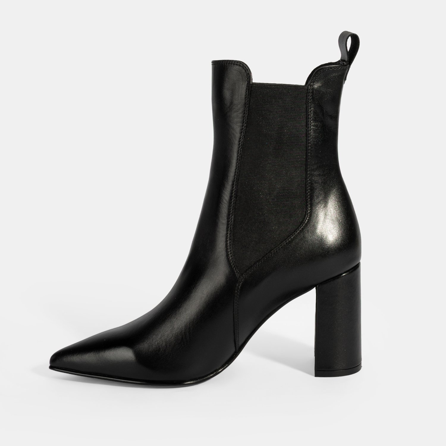 Kadın Siyah Lastikli Topuklu Deri Bot