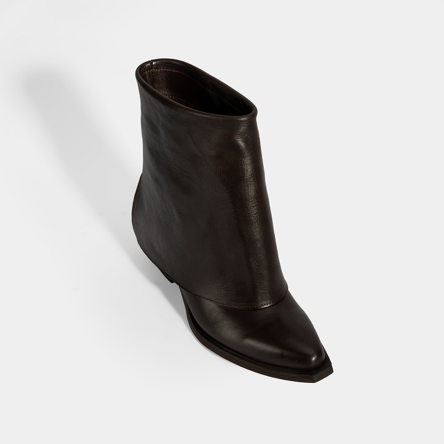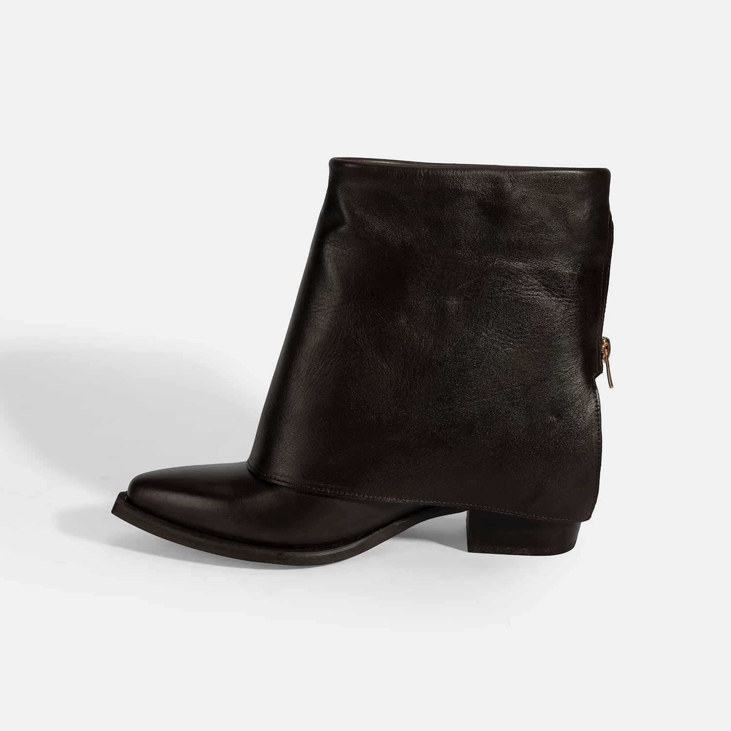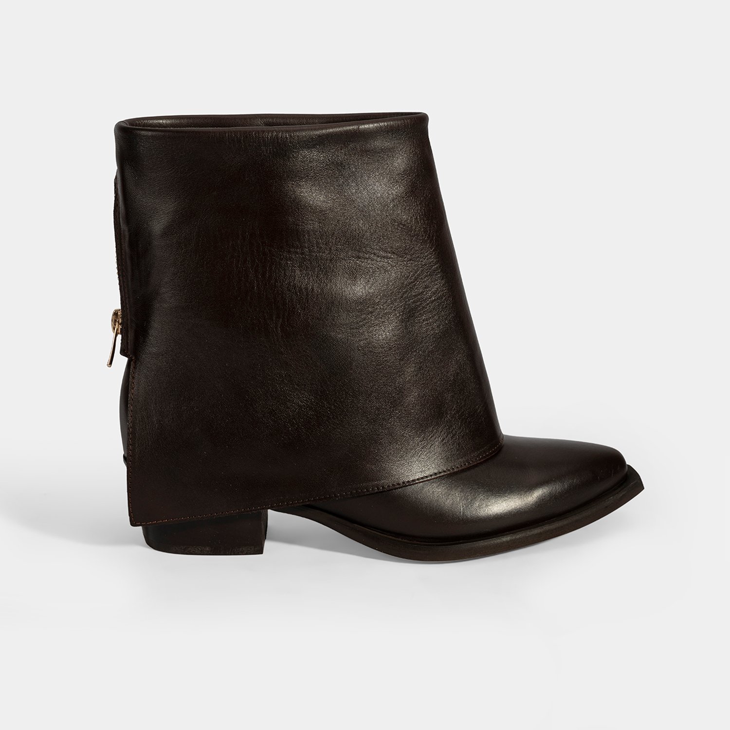 Kadın Kahve Katlama Detaylı Topuklu Deri Bot