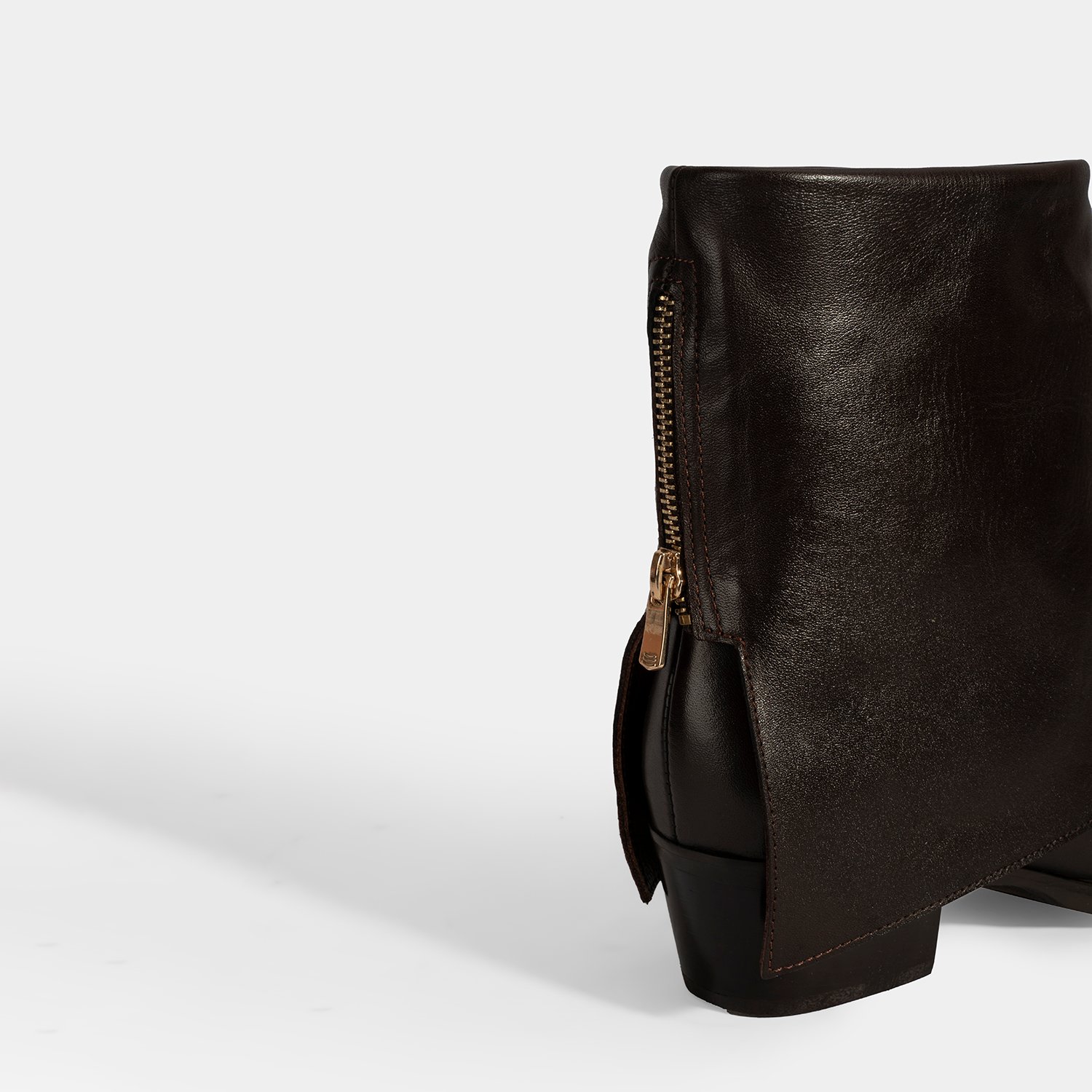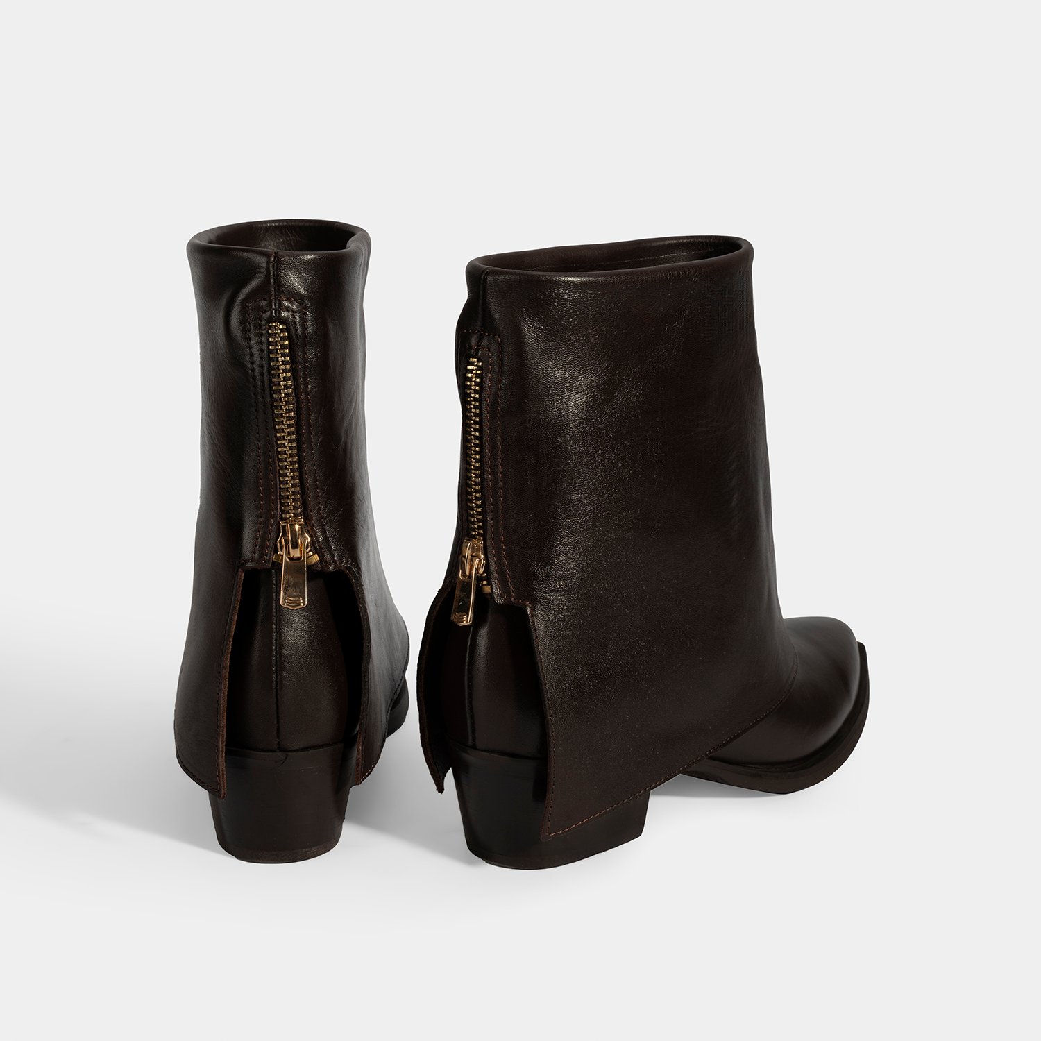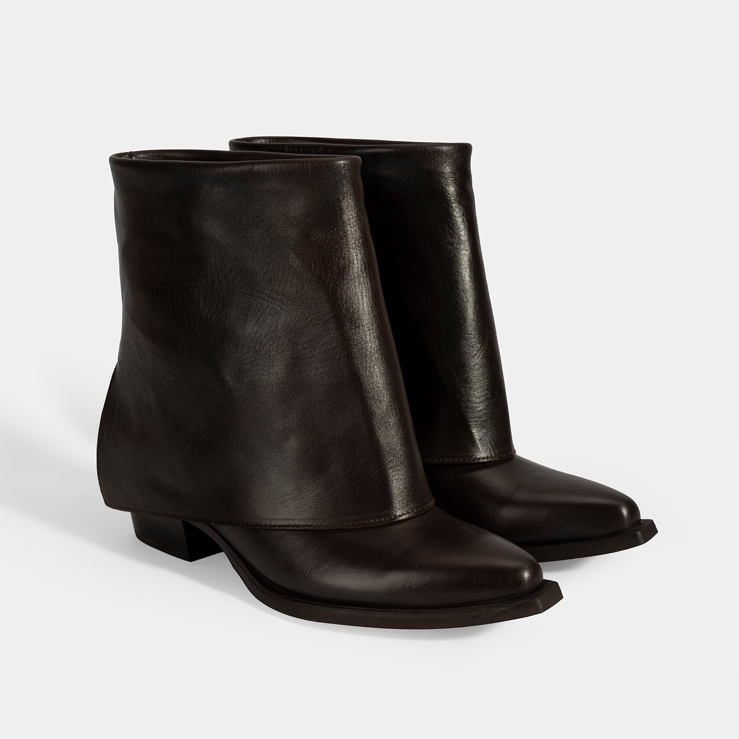 Kadın Kahve Katlama Detaylı Topuklu Deri Bot