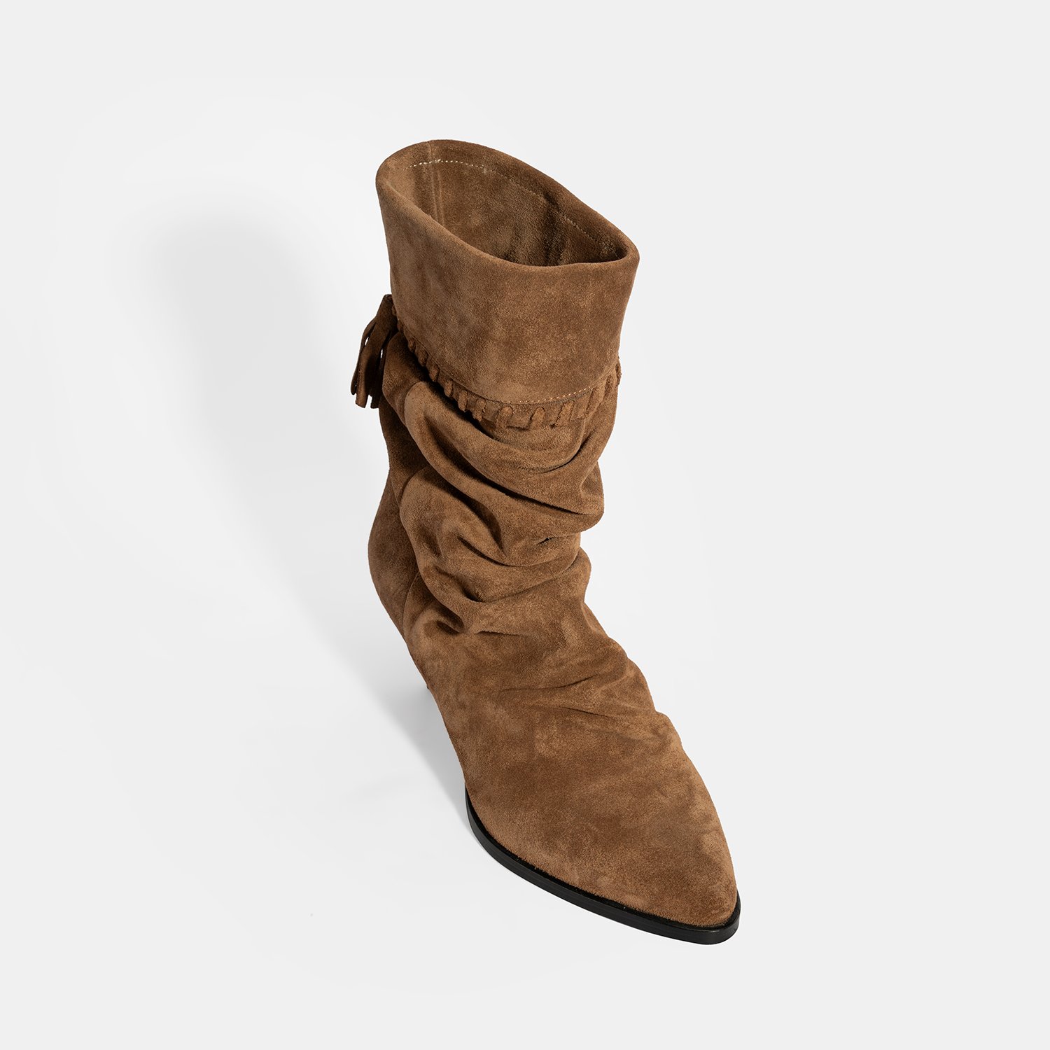 Kadın Taba Püskül Detaylı Süet Topuklu Bot