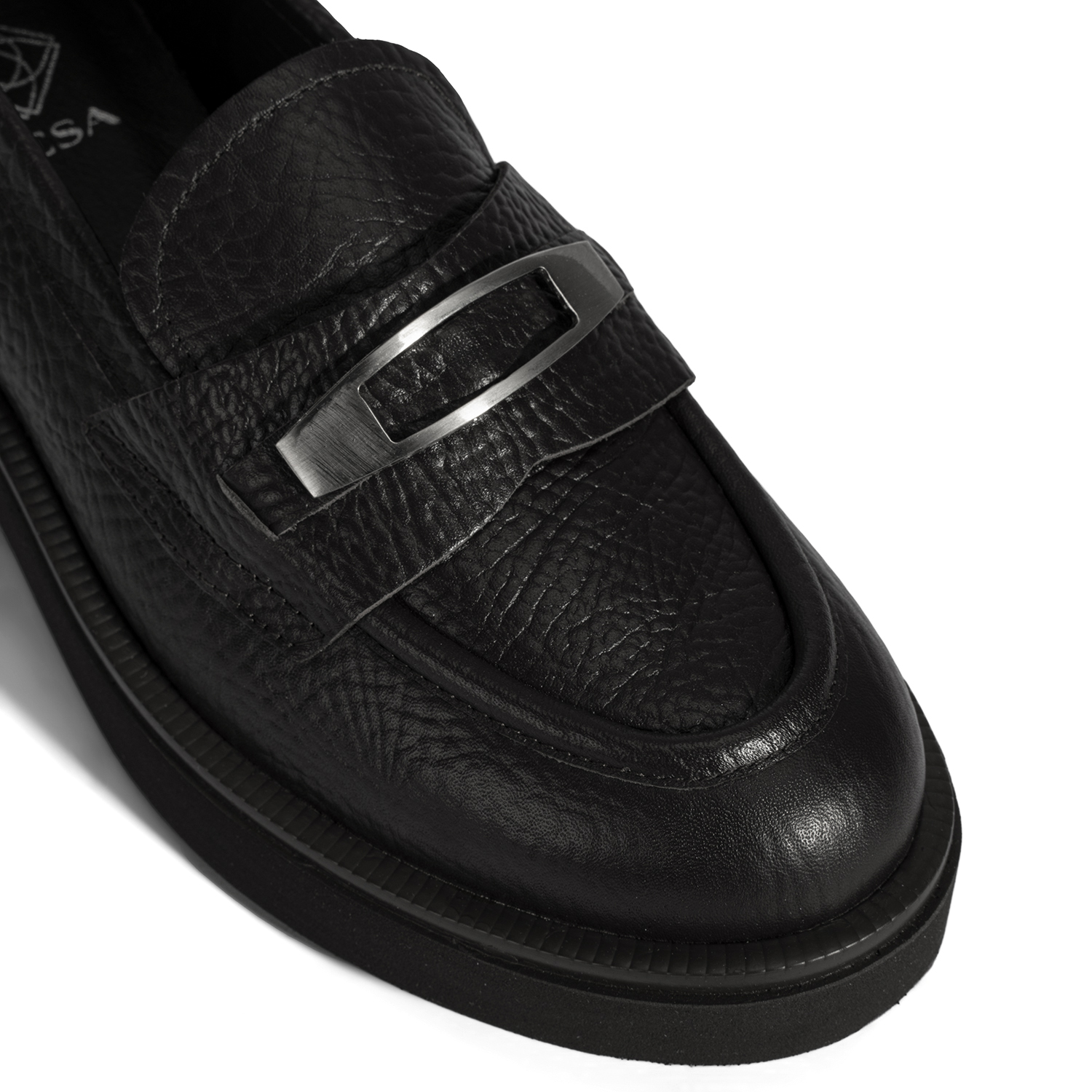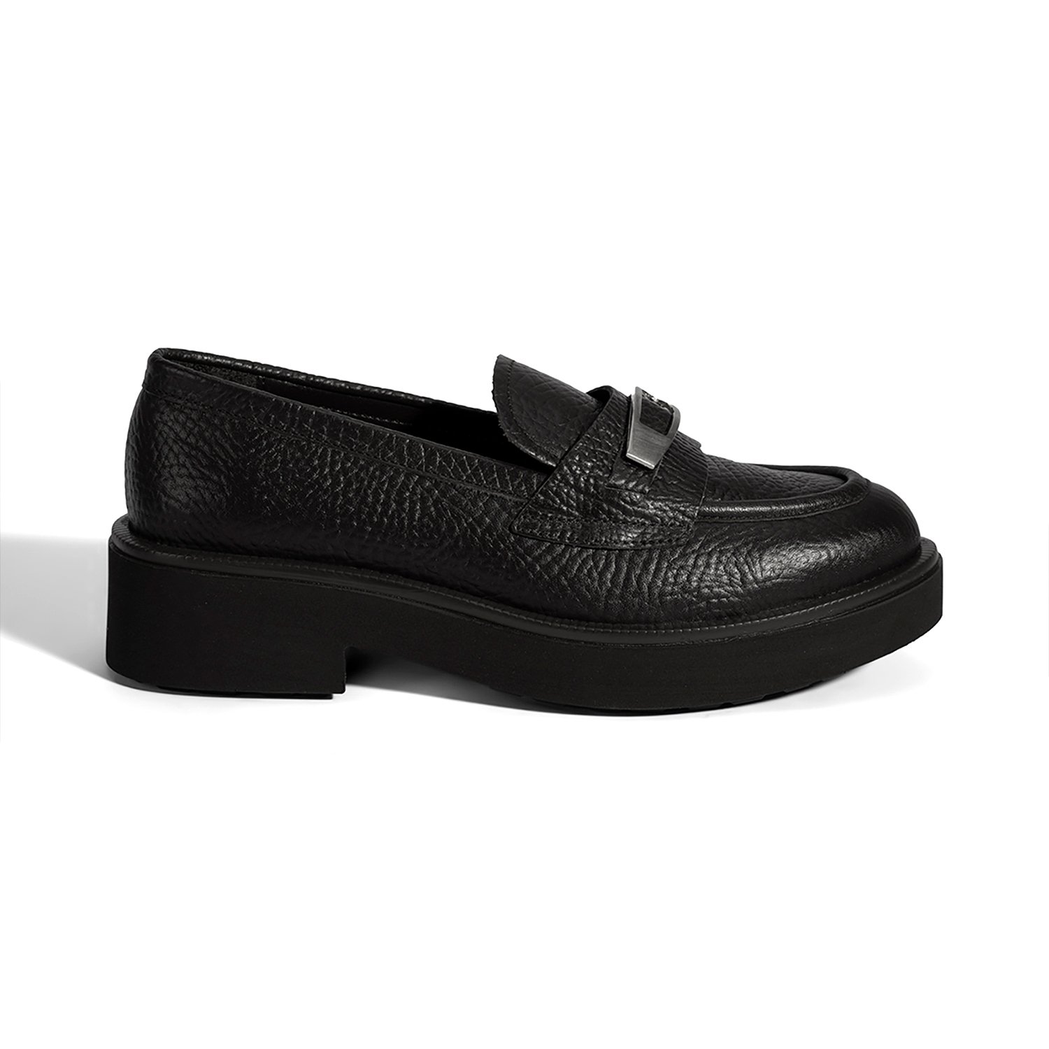 Kadın Siyah Toka Aksesuarlı Kalın Tabanlı Deri Loafer