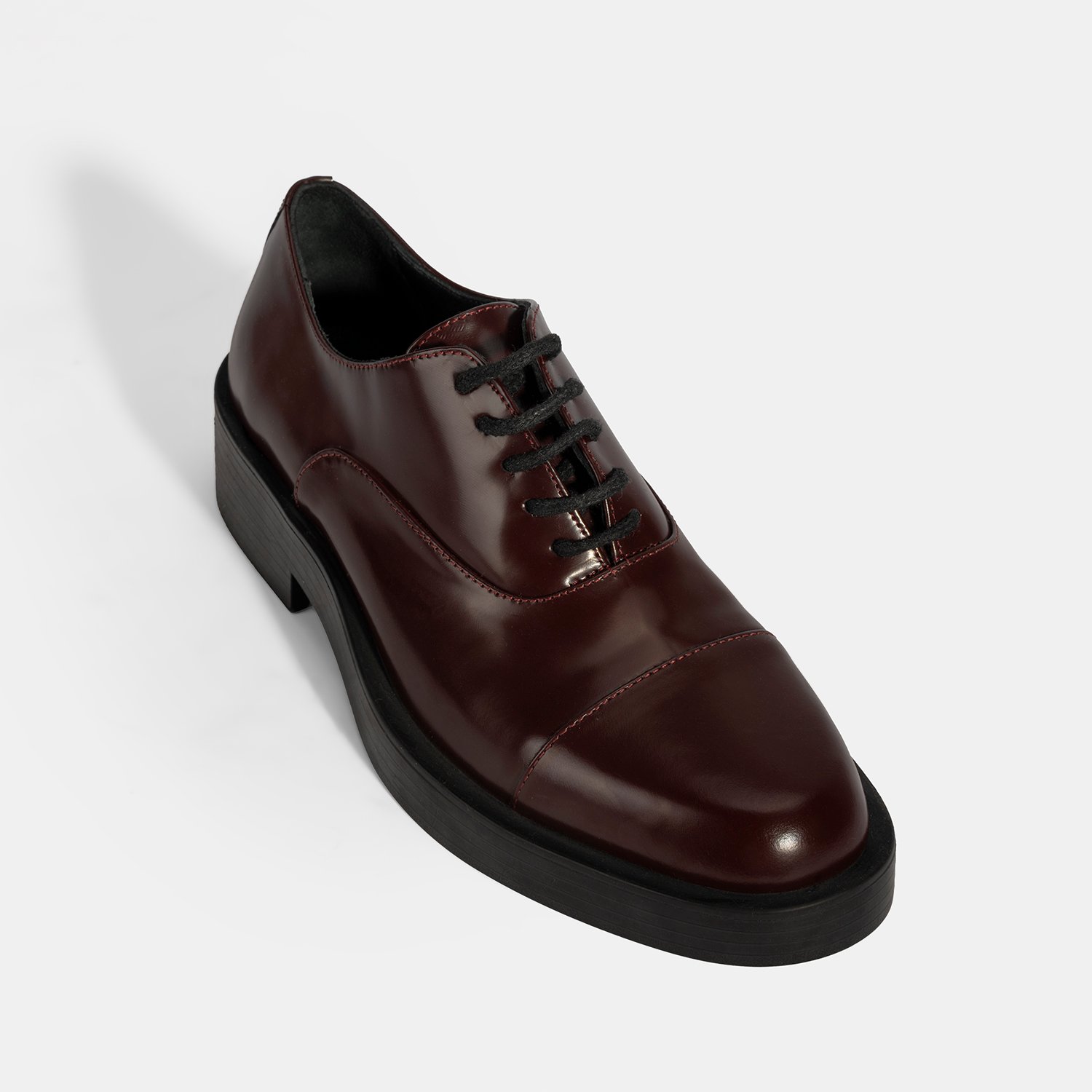 Kadın Bordo Bağcıklı Klasik Deri Ayakkabı