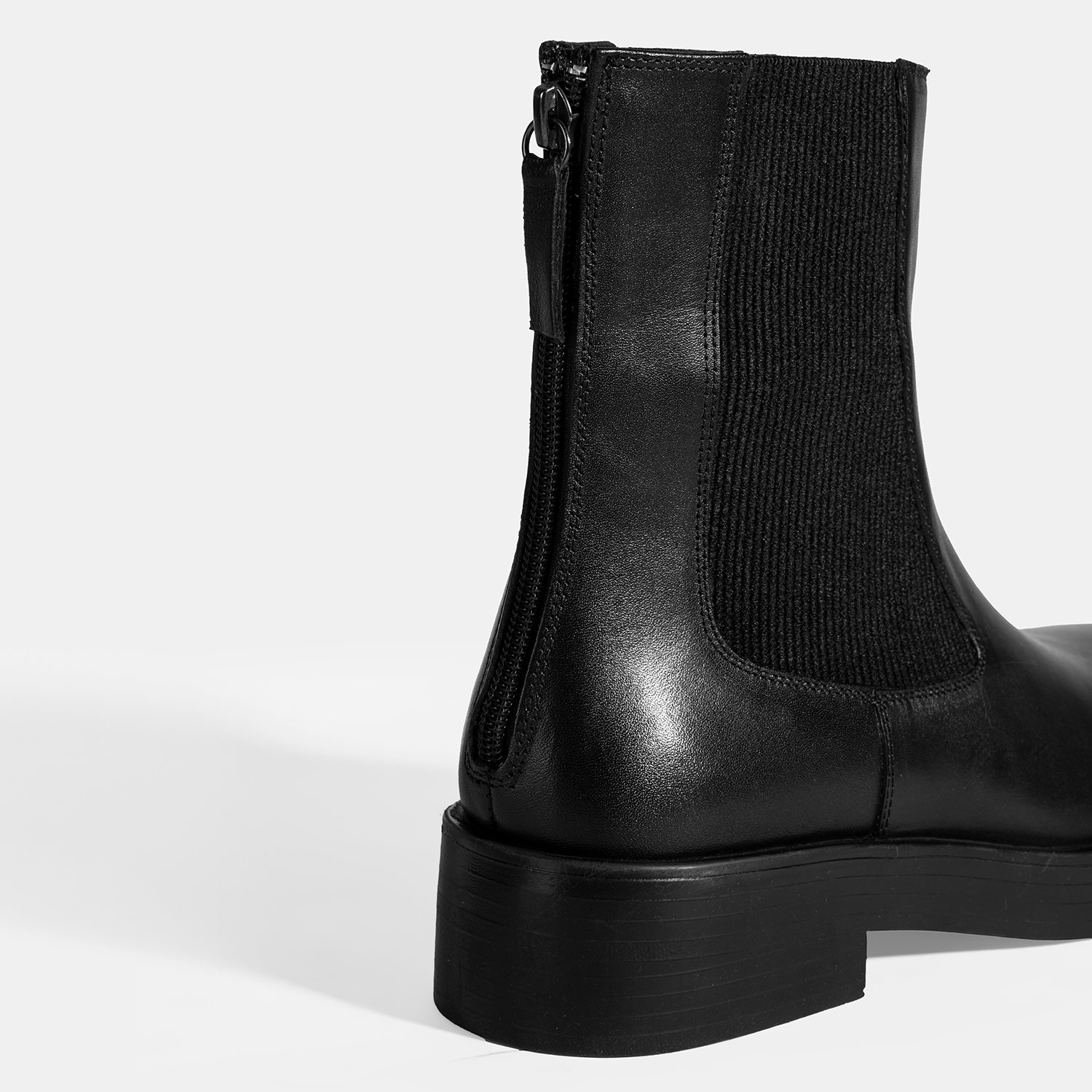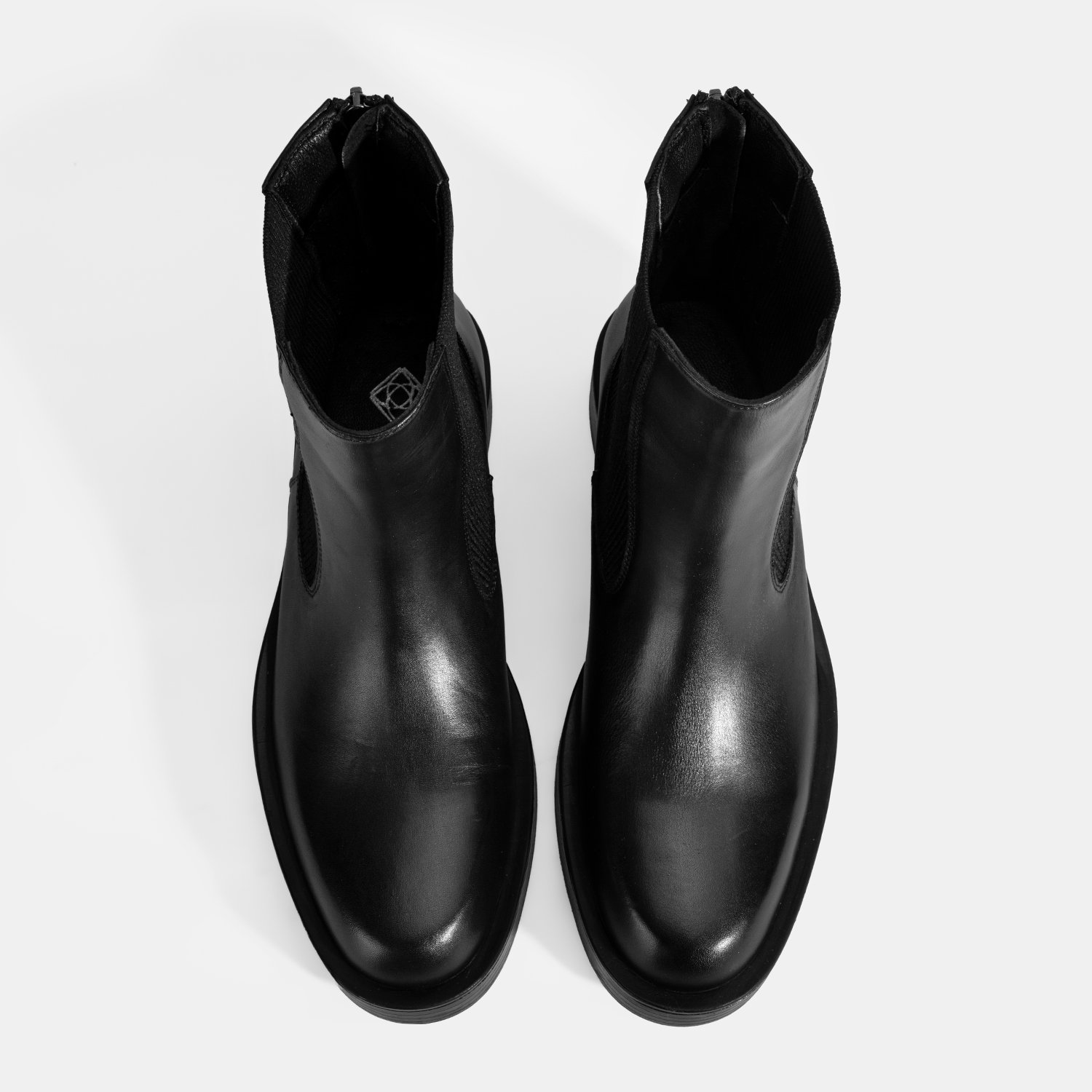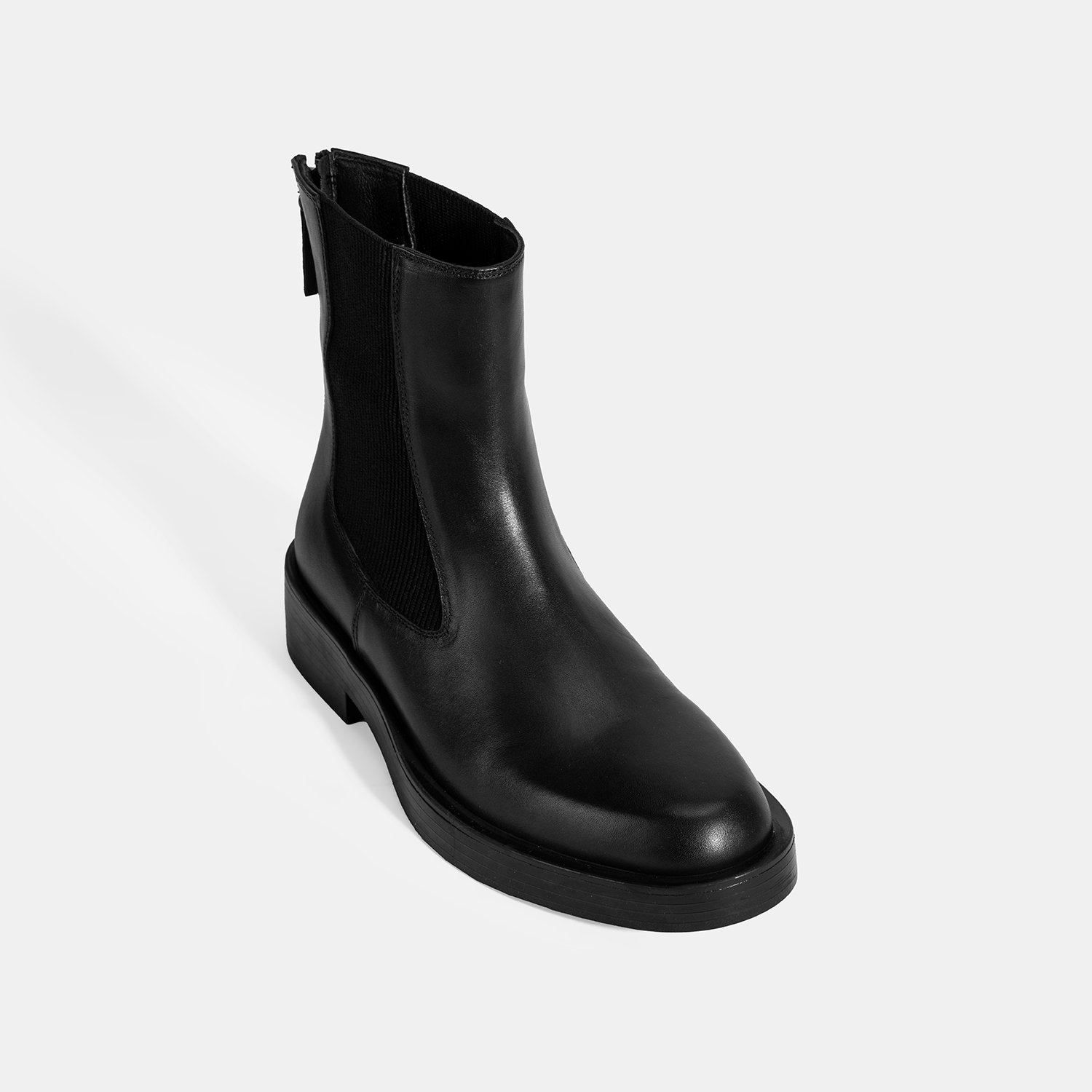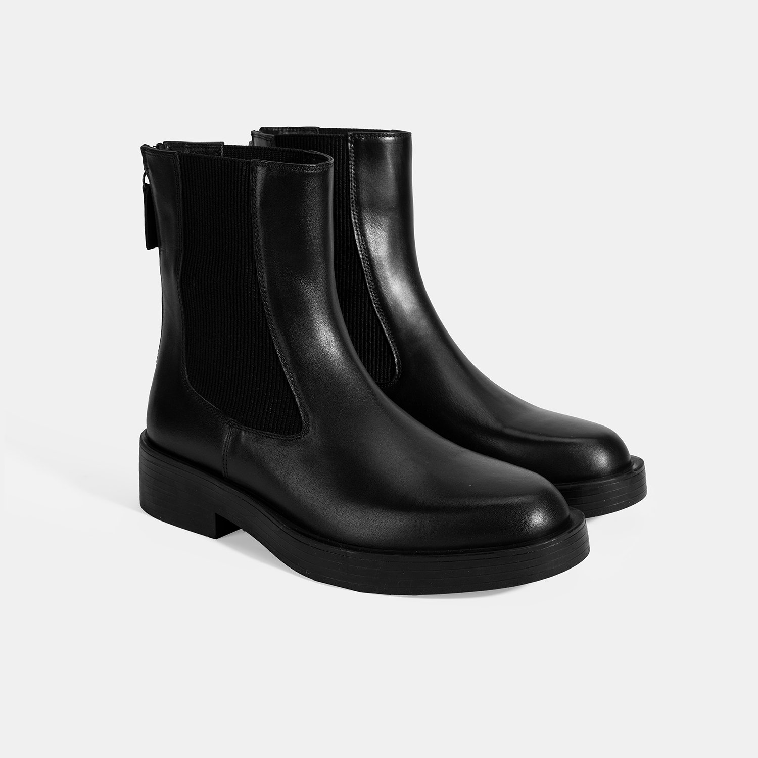 %100 deri, deri iç tabanlı, sıcak tekstil astarlı, termo tabanlı, lastik ve fermuar detaylı kadın Chelsea bot. Topuk yüksekliği: 4 cm.