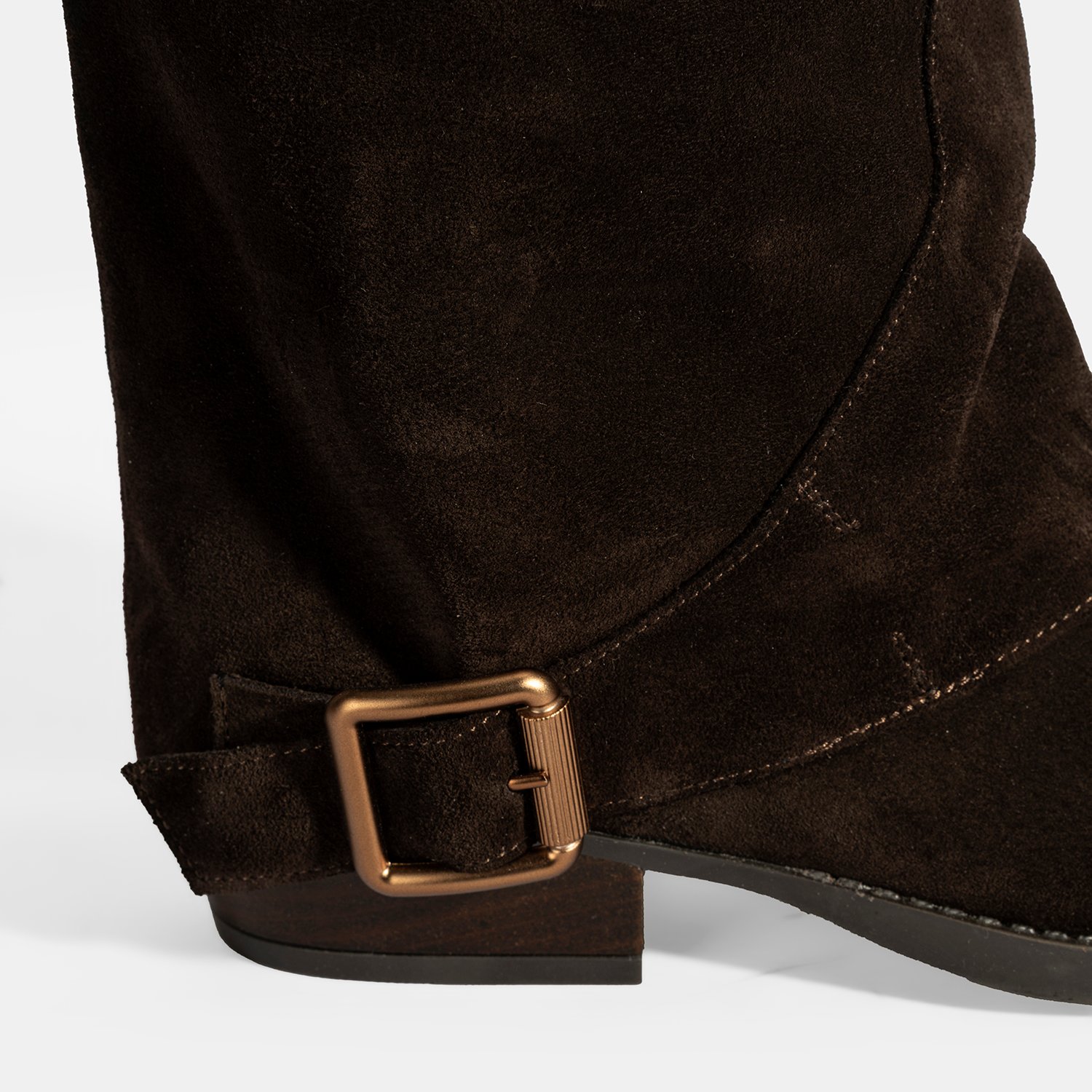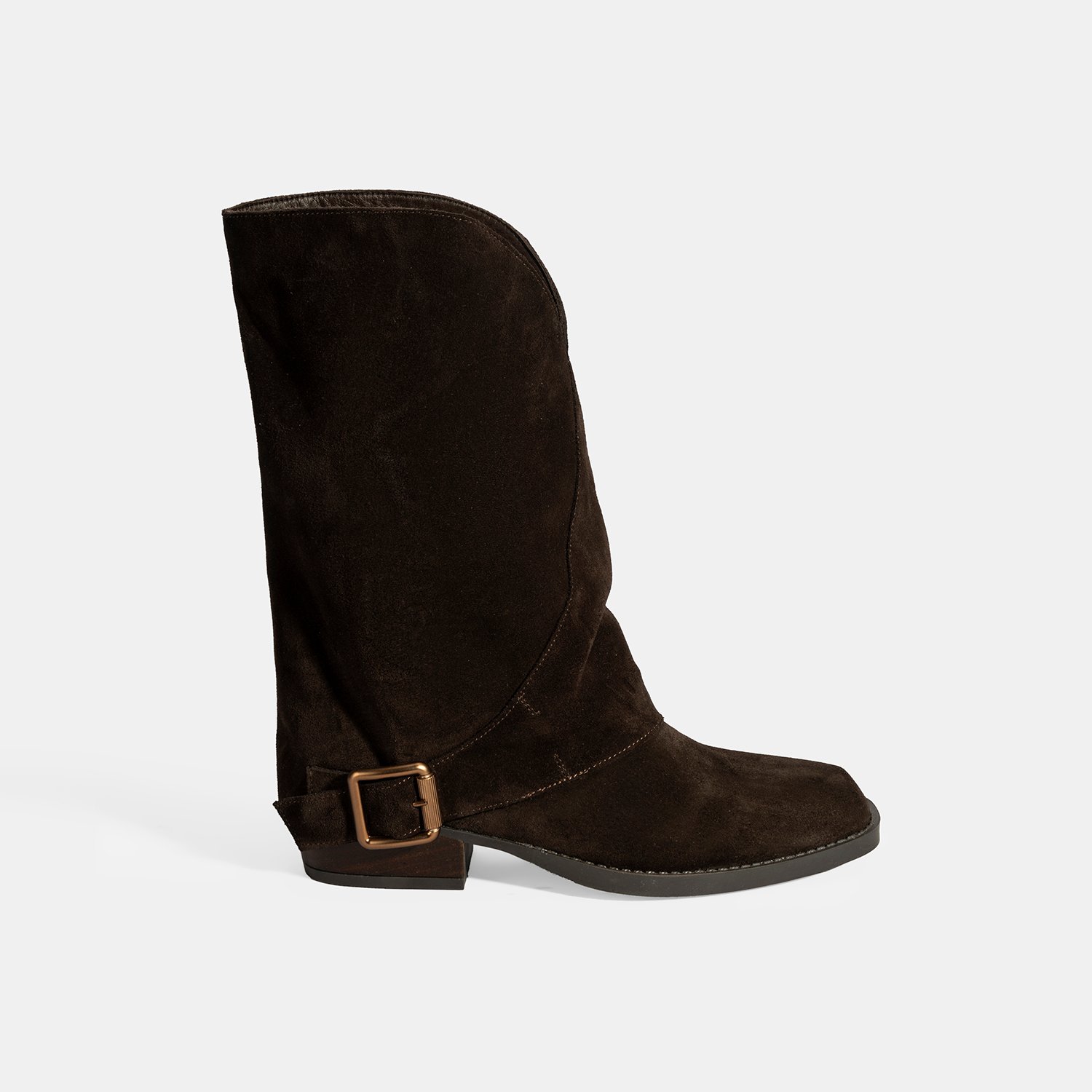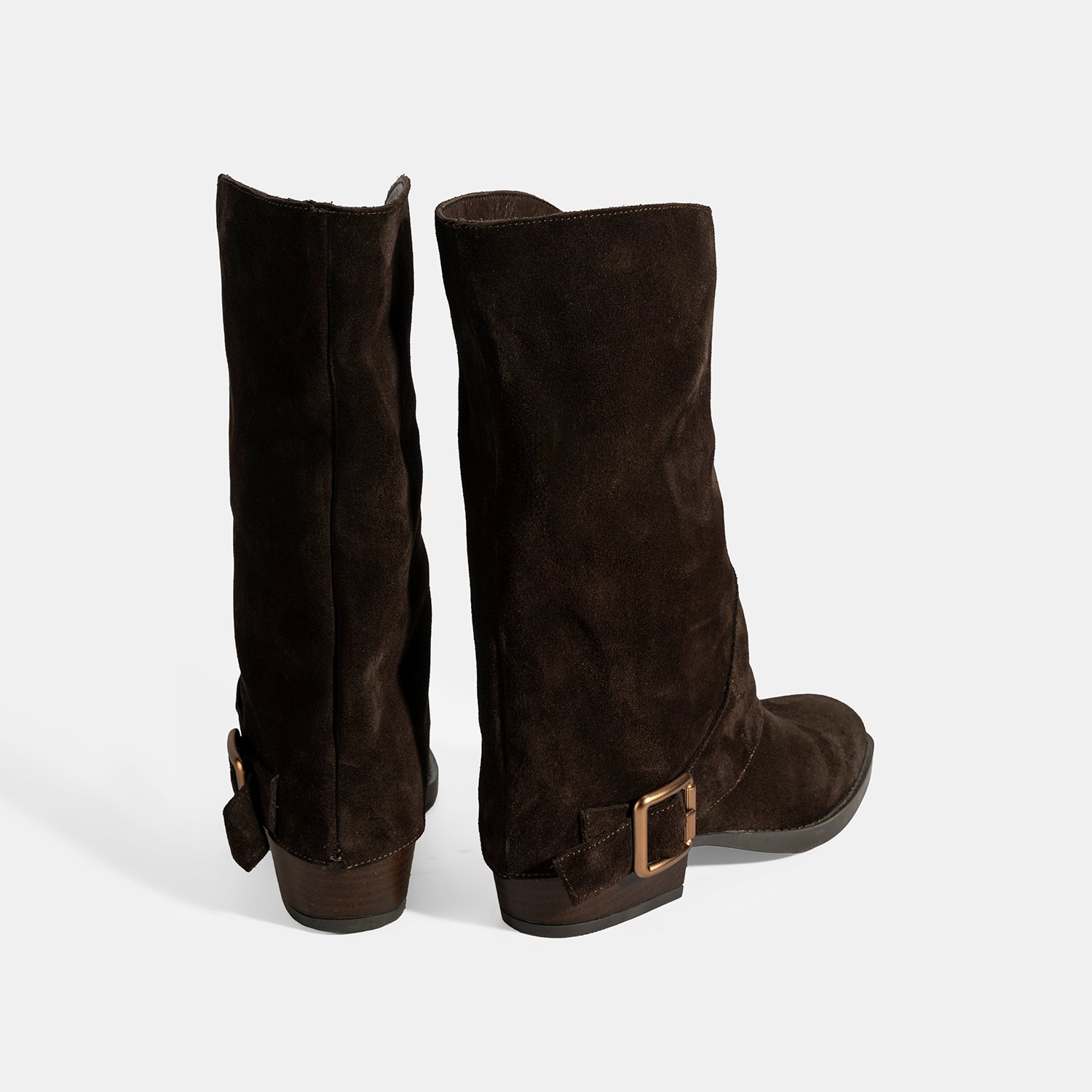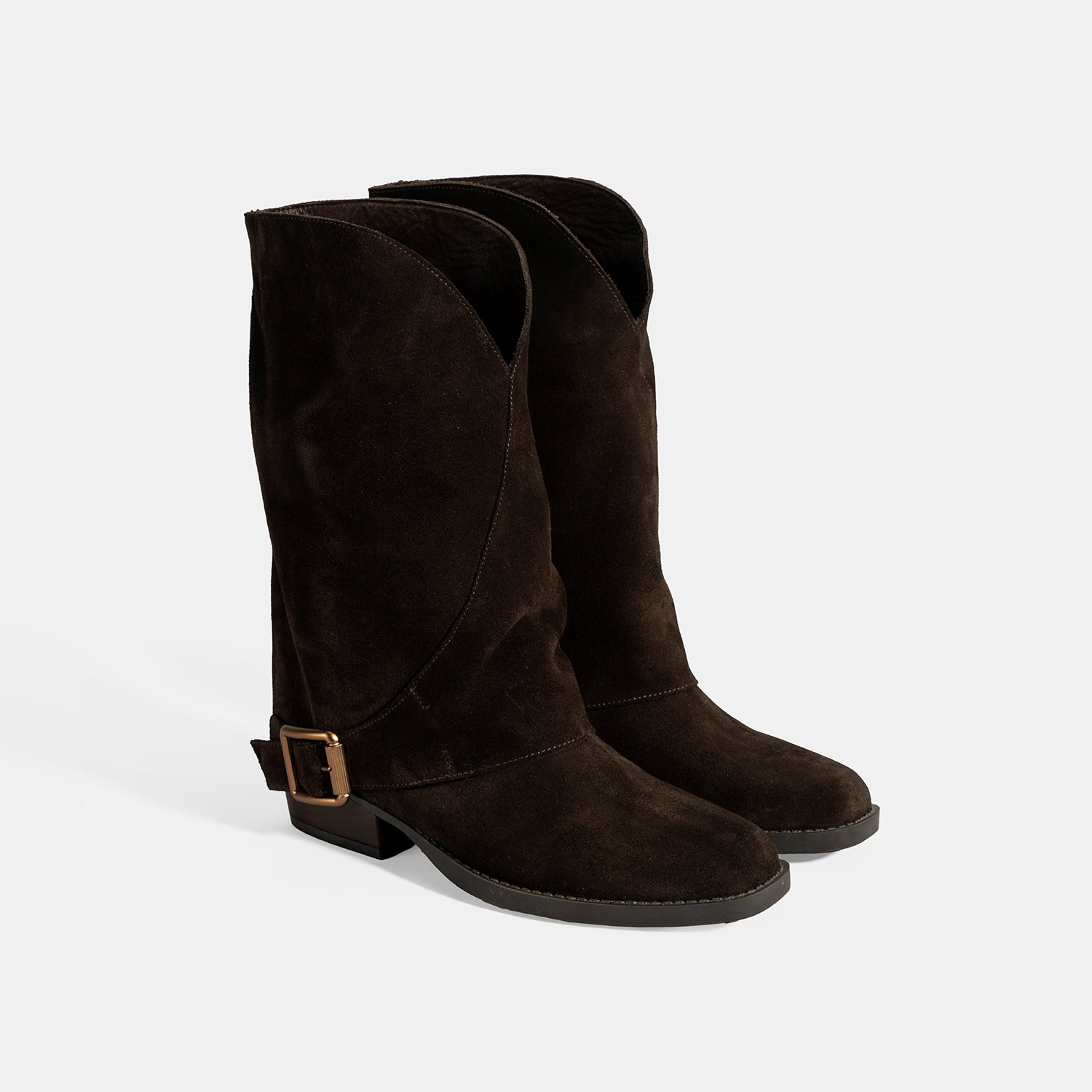 %100 süet deri, deri iç tabanlı, sıcak tekstil astarlı, metal toka aksesuarlı, katlama detaylı, termo tabanlı kadın bot. Topuk yüksekliği: 3 cm.