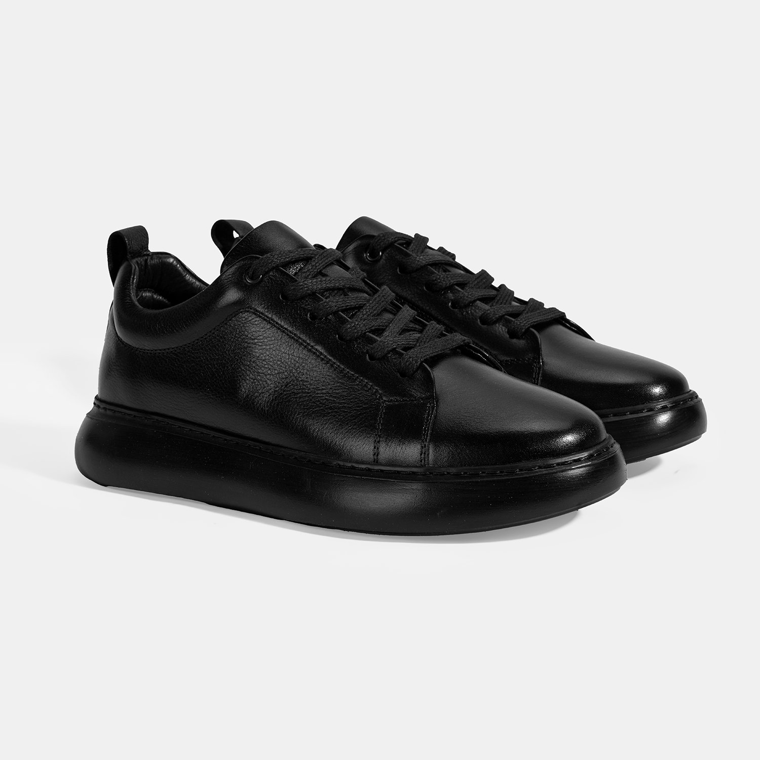 Erkek Siyah Bağcıklı Deri Spor Ayakkabı