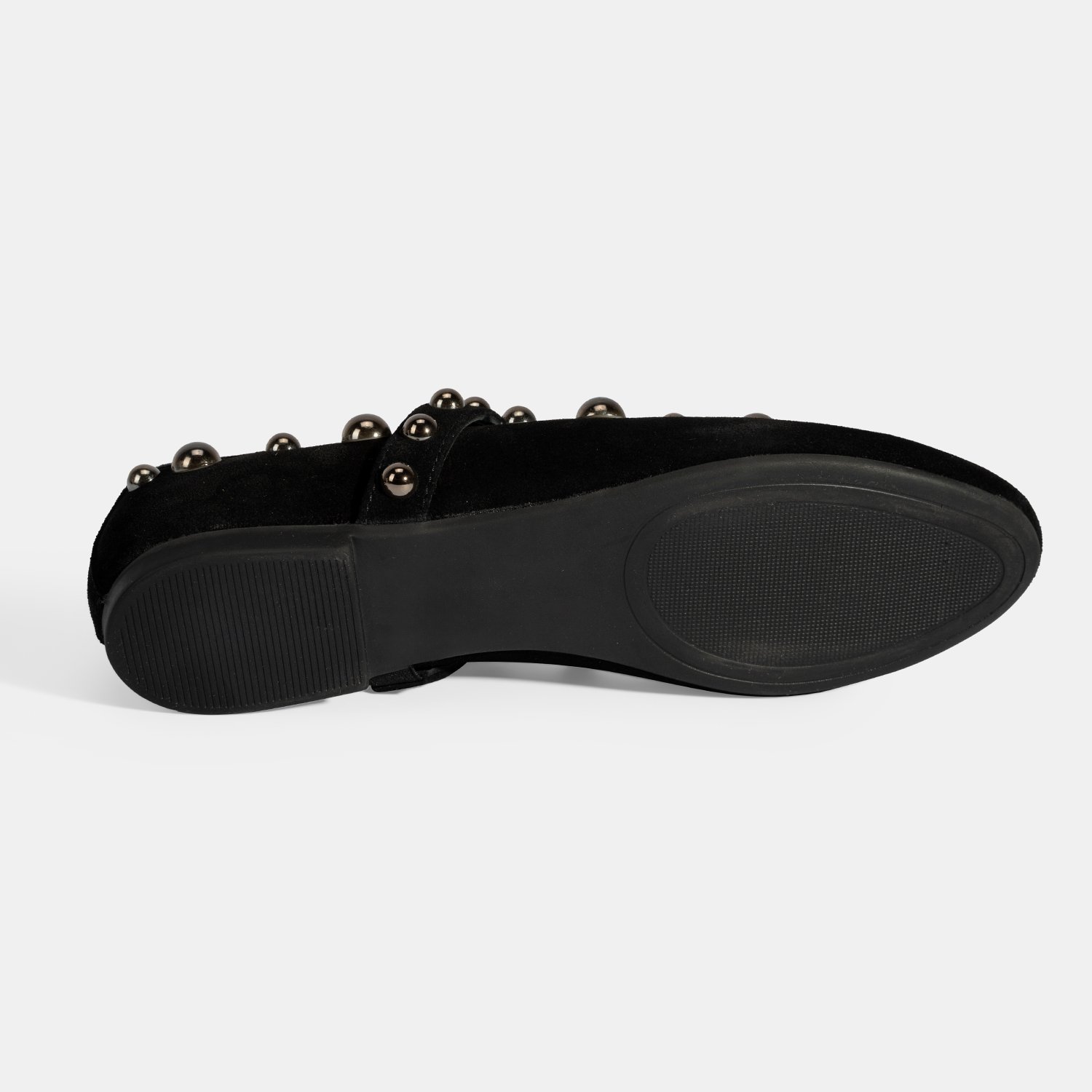 Kadın Siyah Metal Zımba Detaylı Mary Jane Babet