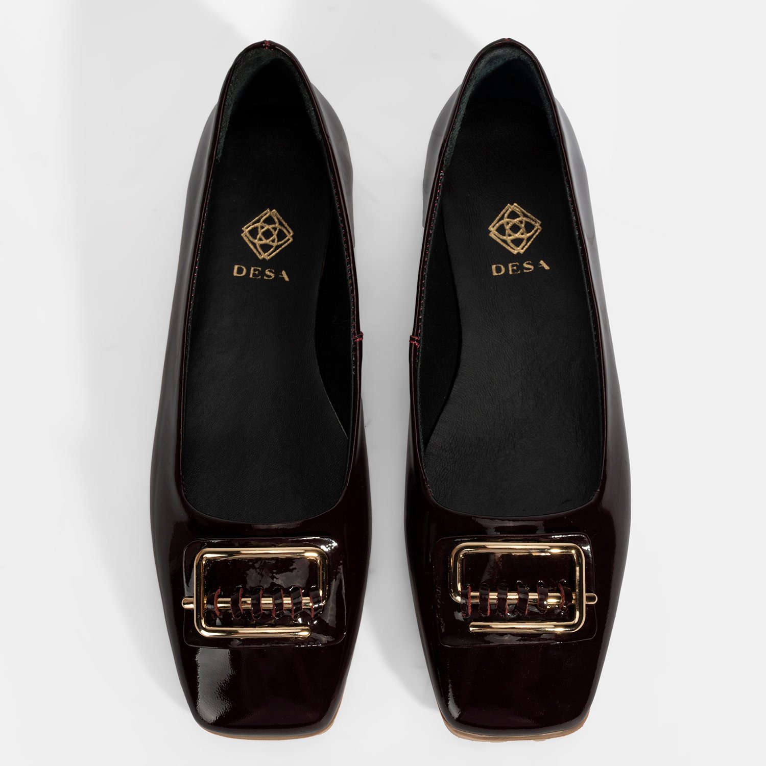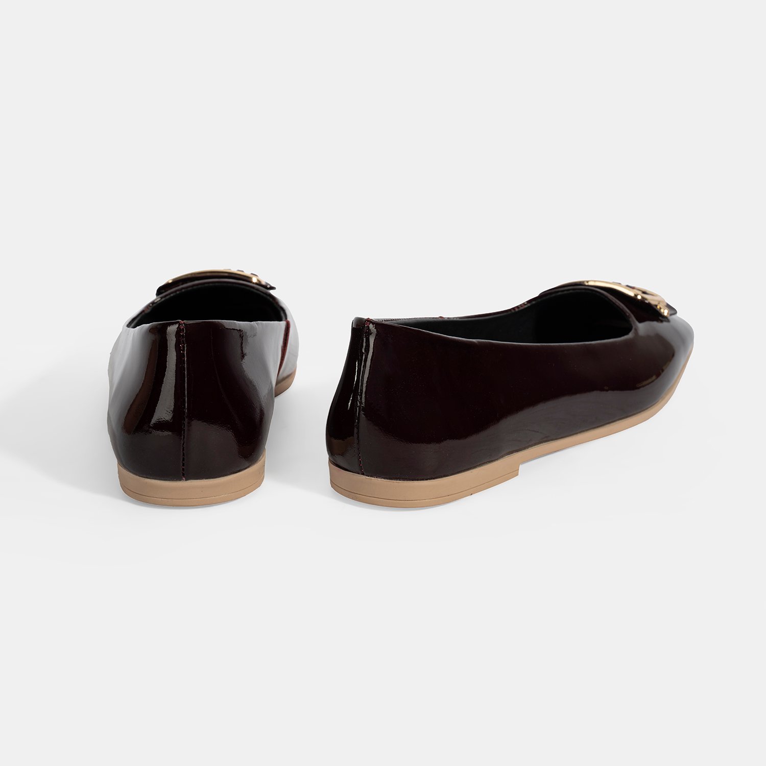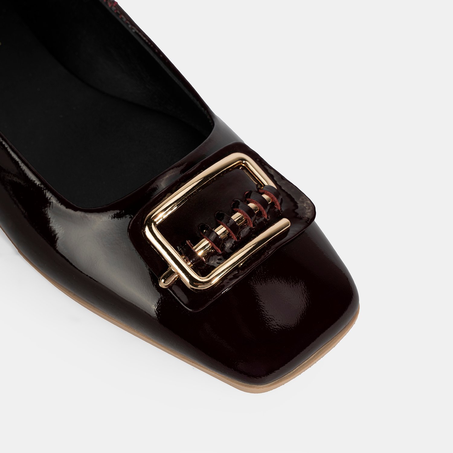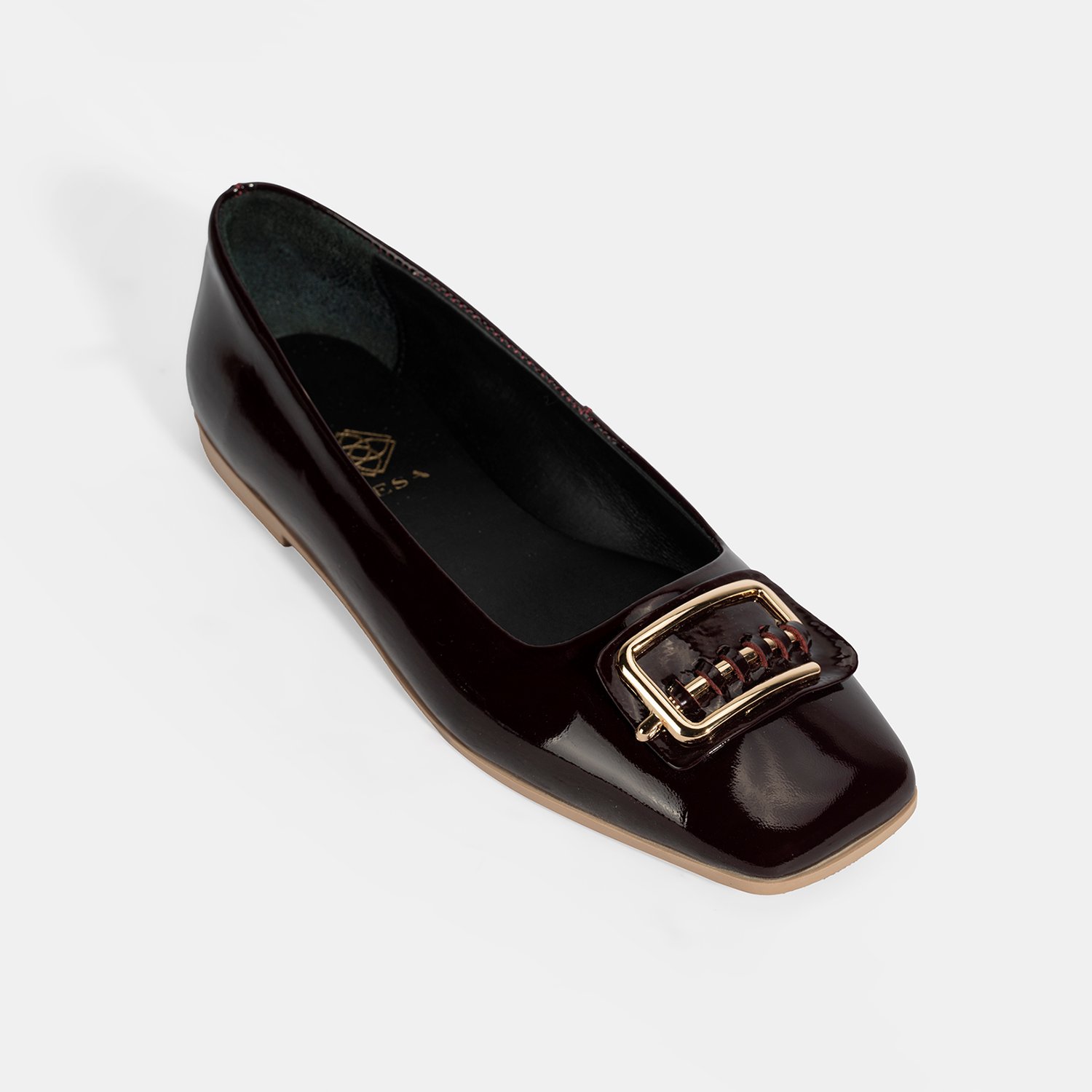 Kadın Bordo Metal Toka Aksesuarlı Rugan Babet