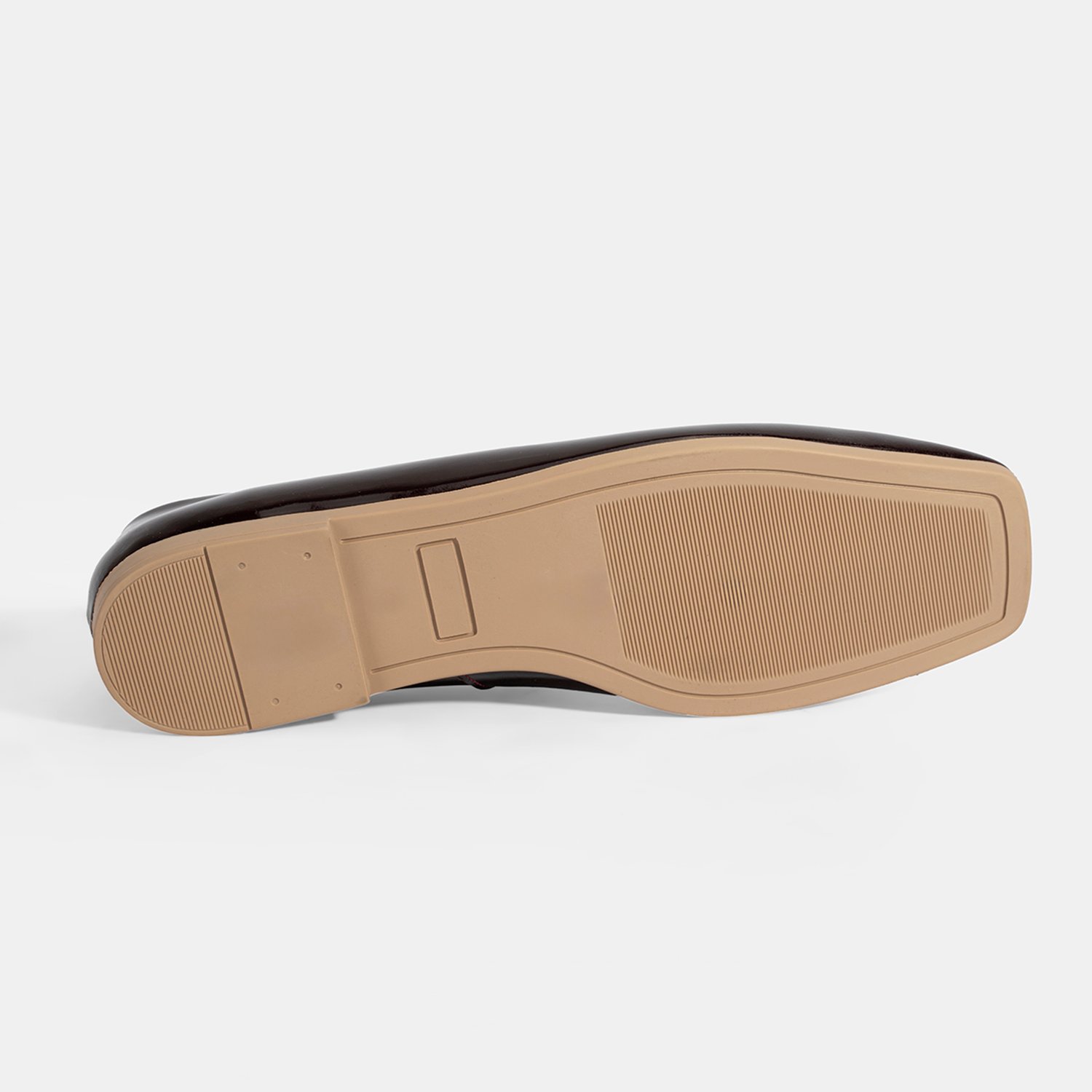 %100 rugan deri, deri iç tabanlı, deri astarlı, metal akseuar detaylı, kare burunlu, tpu tabanlı, kadın babet. Topuk yüksekliği 1 cm