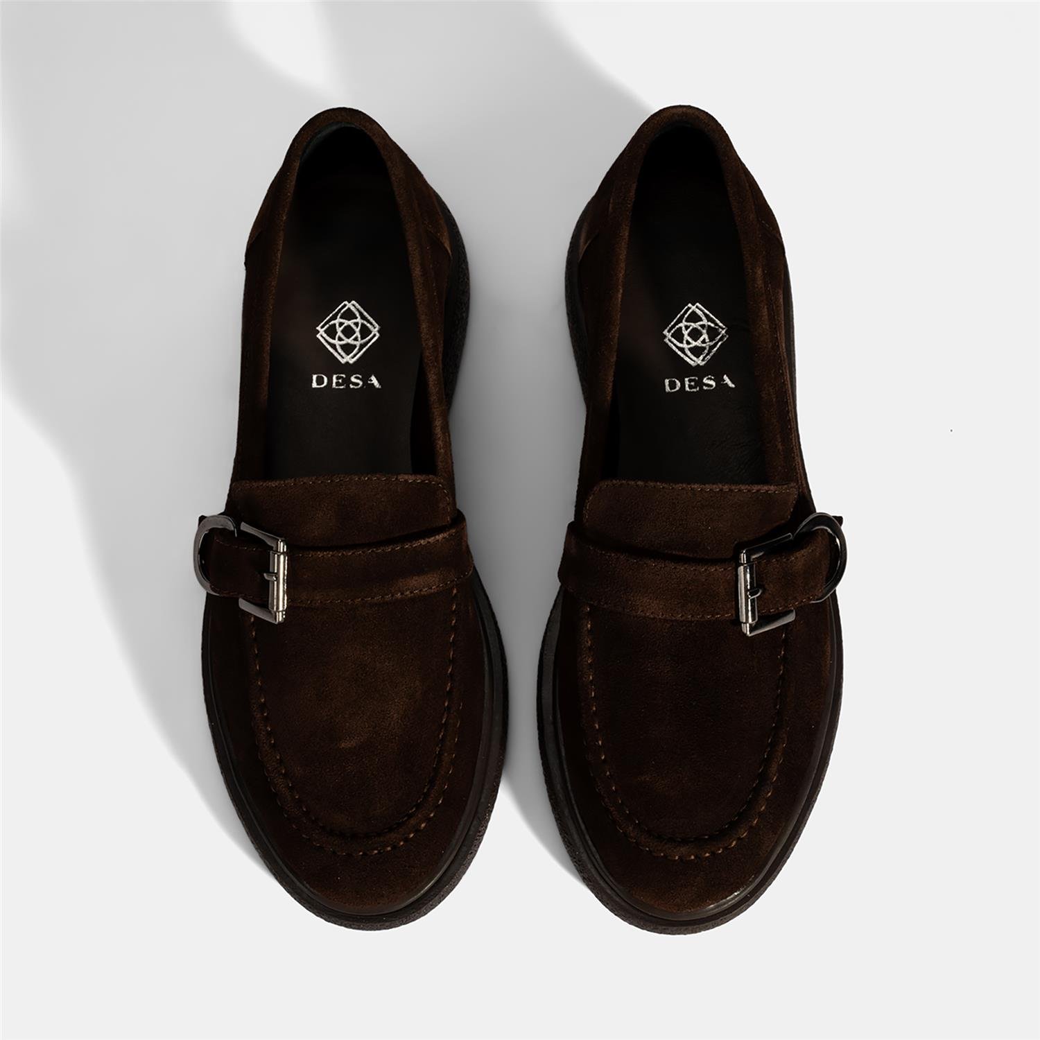 Kadın Kahve Metal Toka Detaylı Süet Loafer