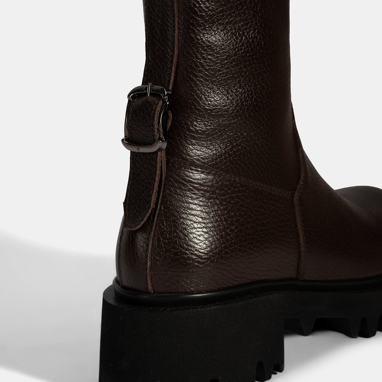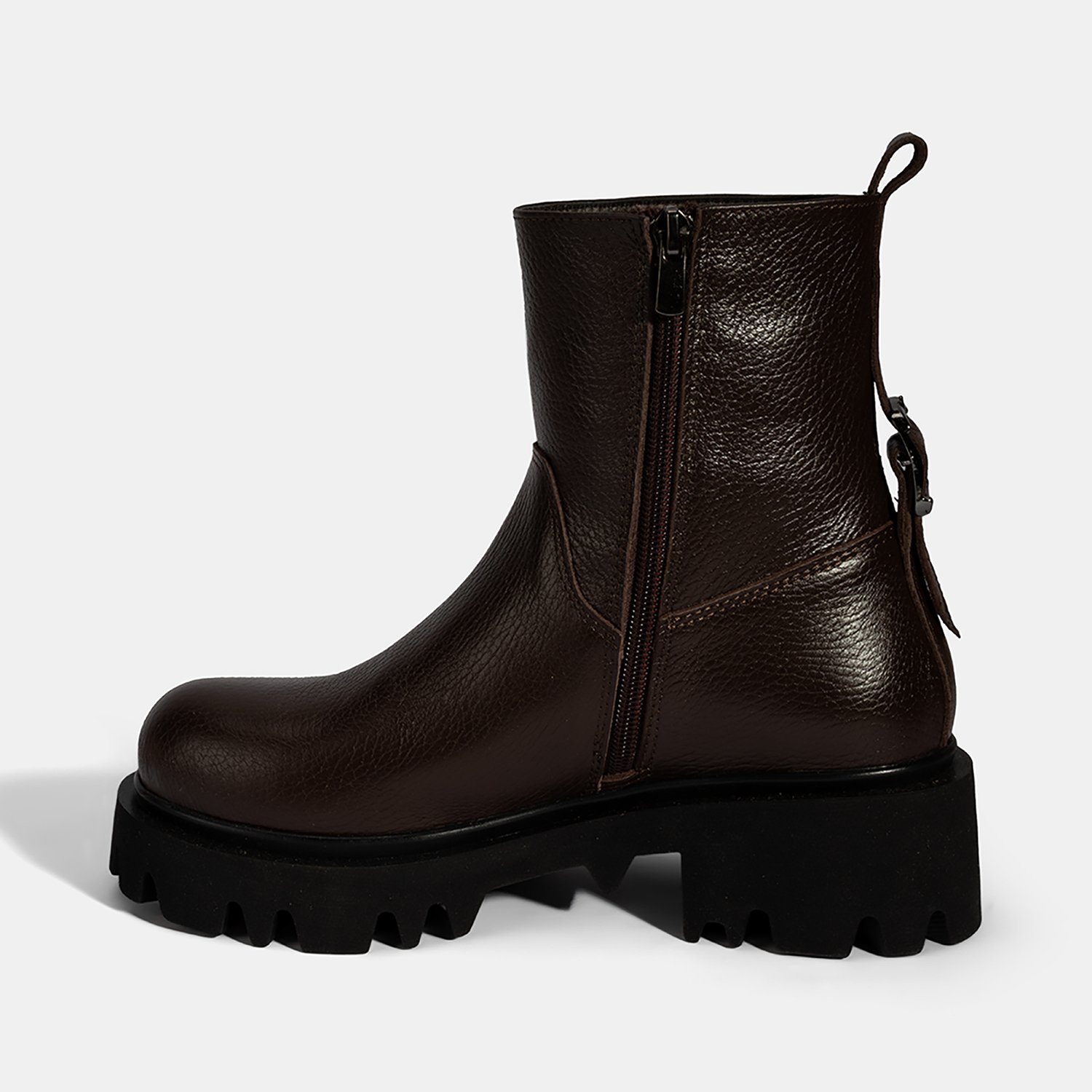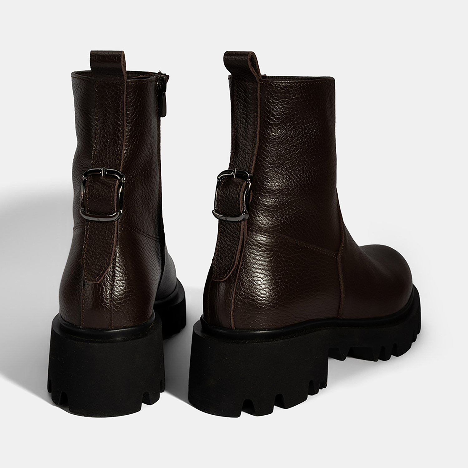 Kadın Kahve Kalın Tabanlı Deri Bot