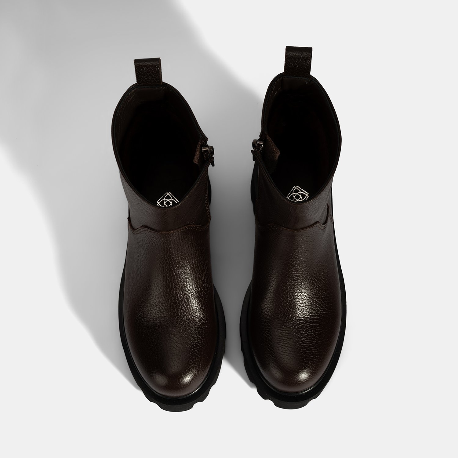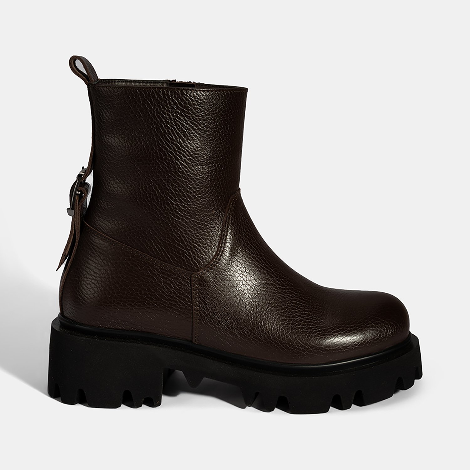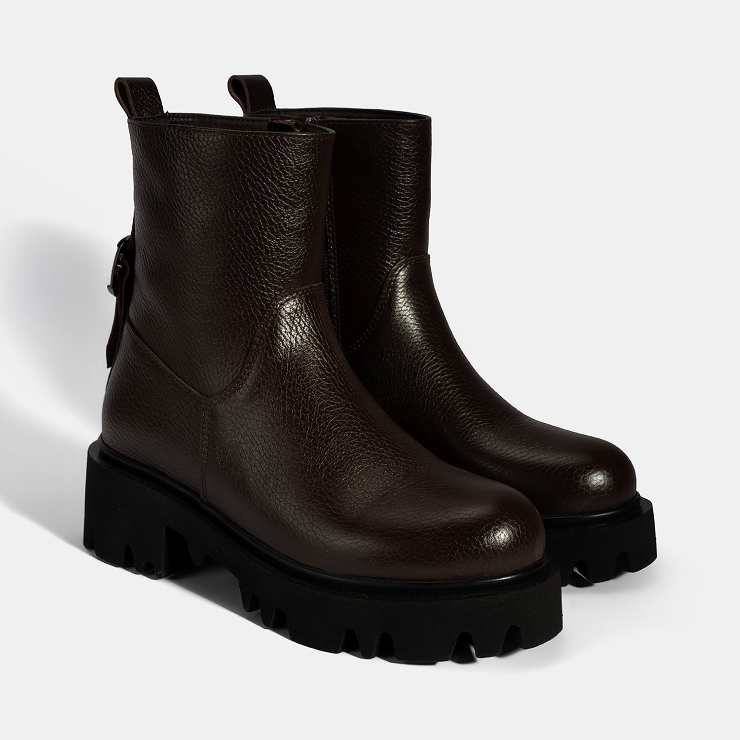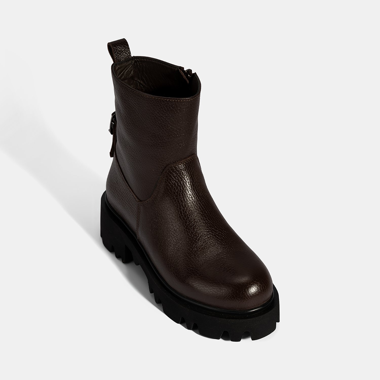 Kadın Kahve Kalın Tabanlı Deri Bot
