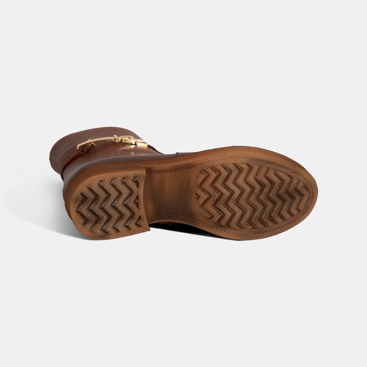 Kadın Taba Metal Aksesuarlı Deri Bot