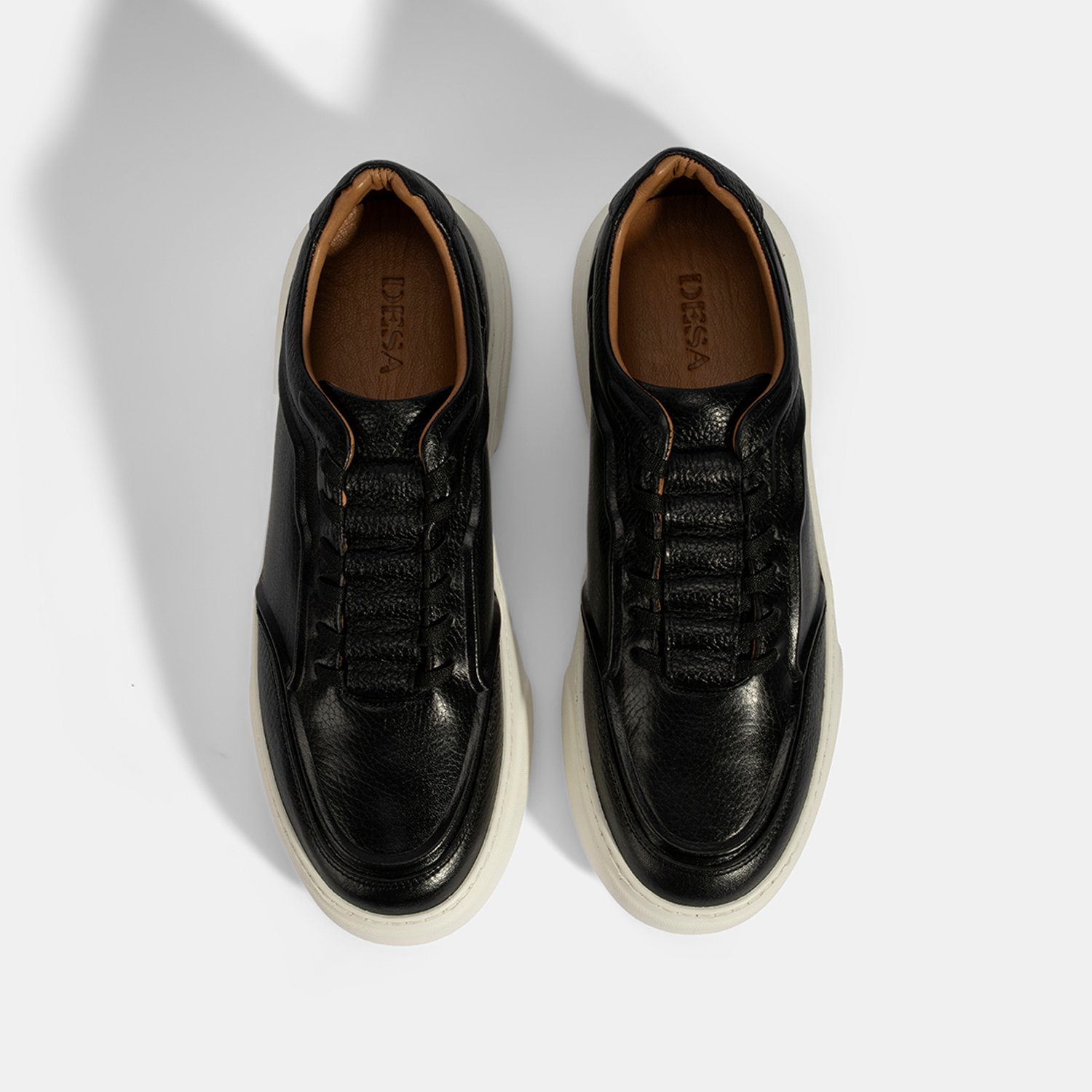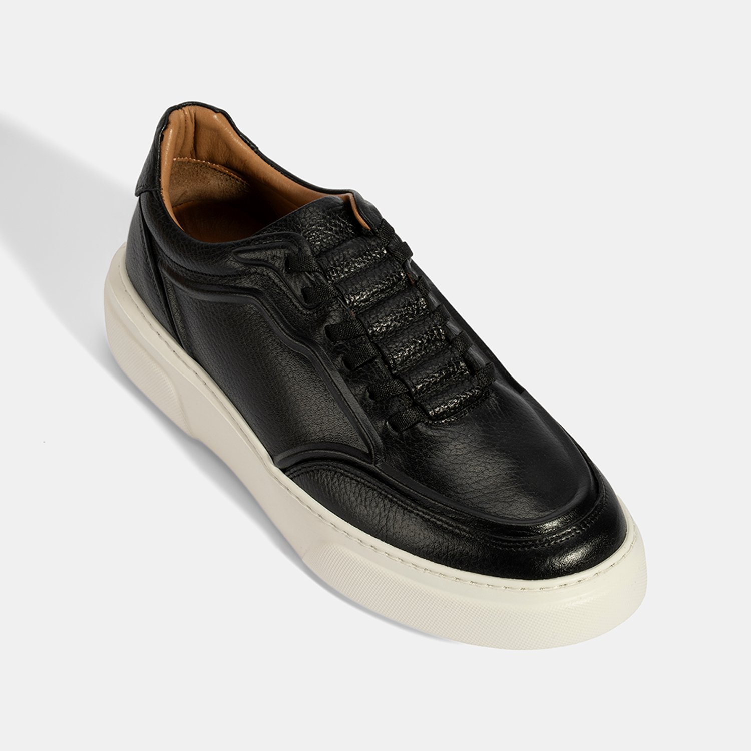 %100 deri, %100 deri astar ve mostra, lastik bağcıklı, kabartma detaylı, EVA tabanlı erkek ayakkabı.