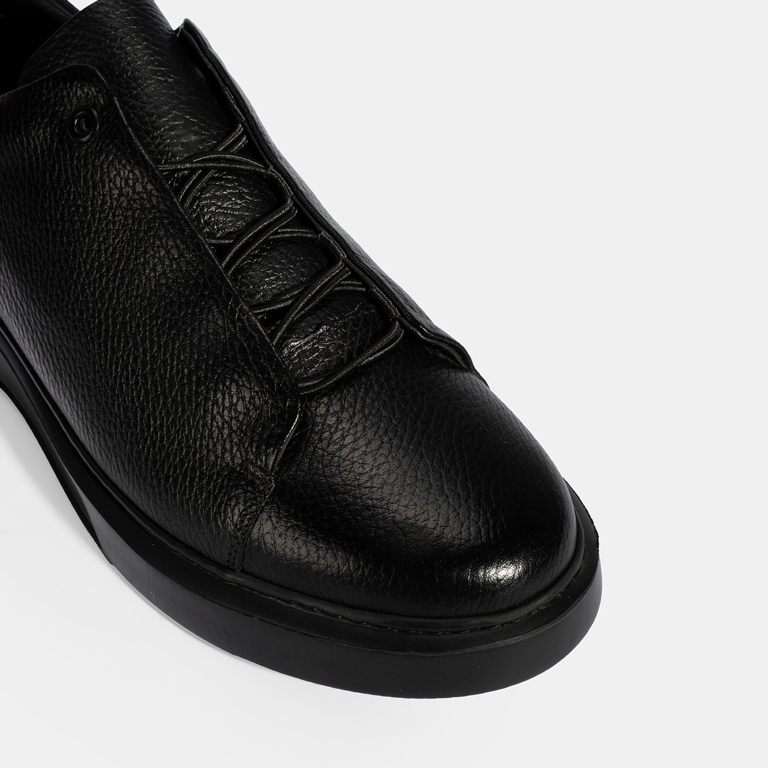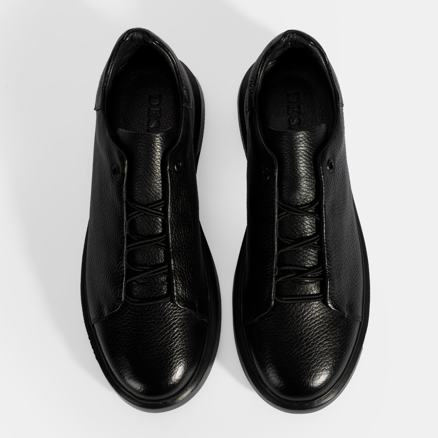 Erkek Siyah Bağcıklı Deri Günlük Ayakkabı