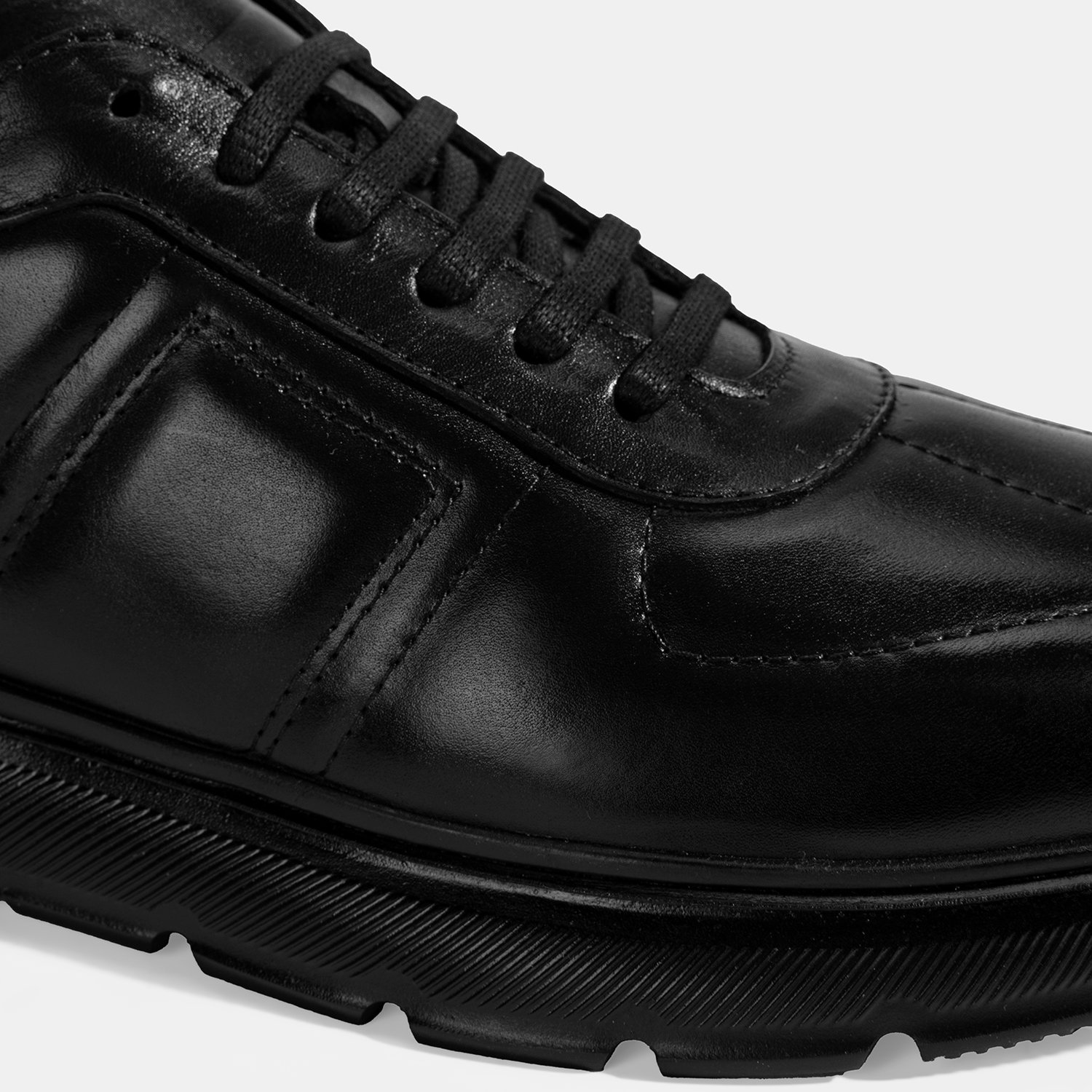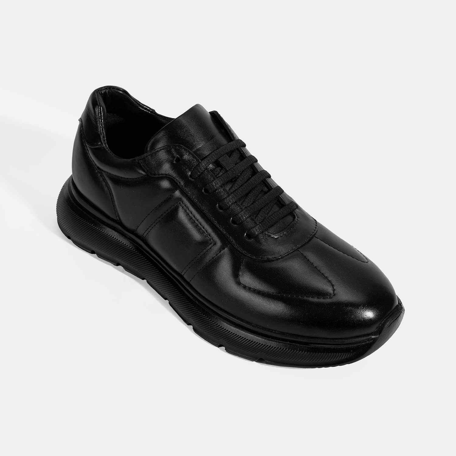 Erkek Siyah Bağcıklı Deri Spor Ayakkabı