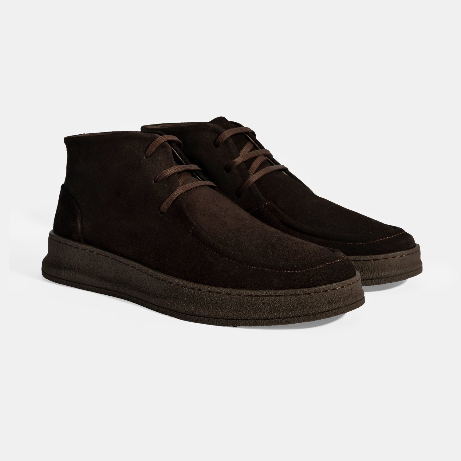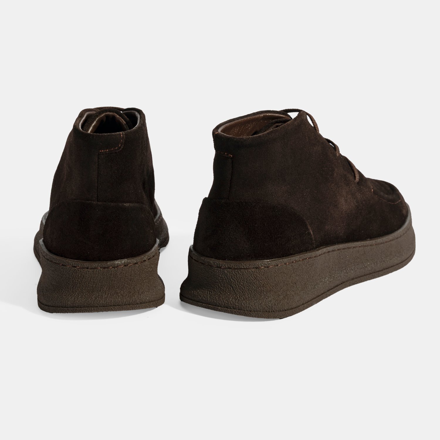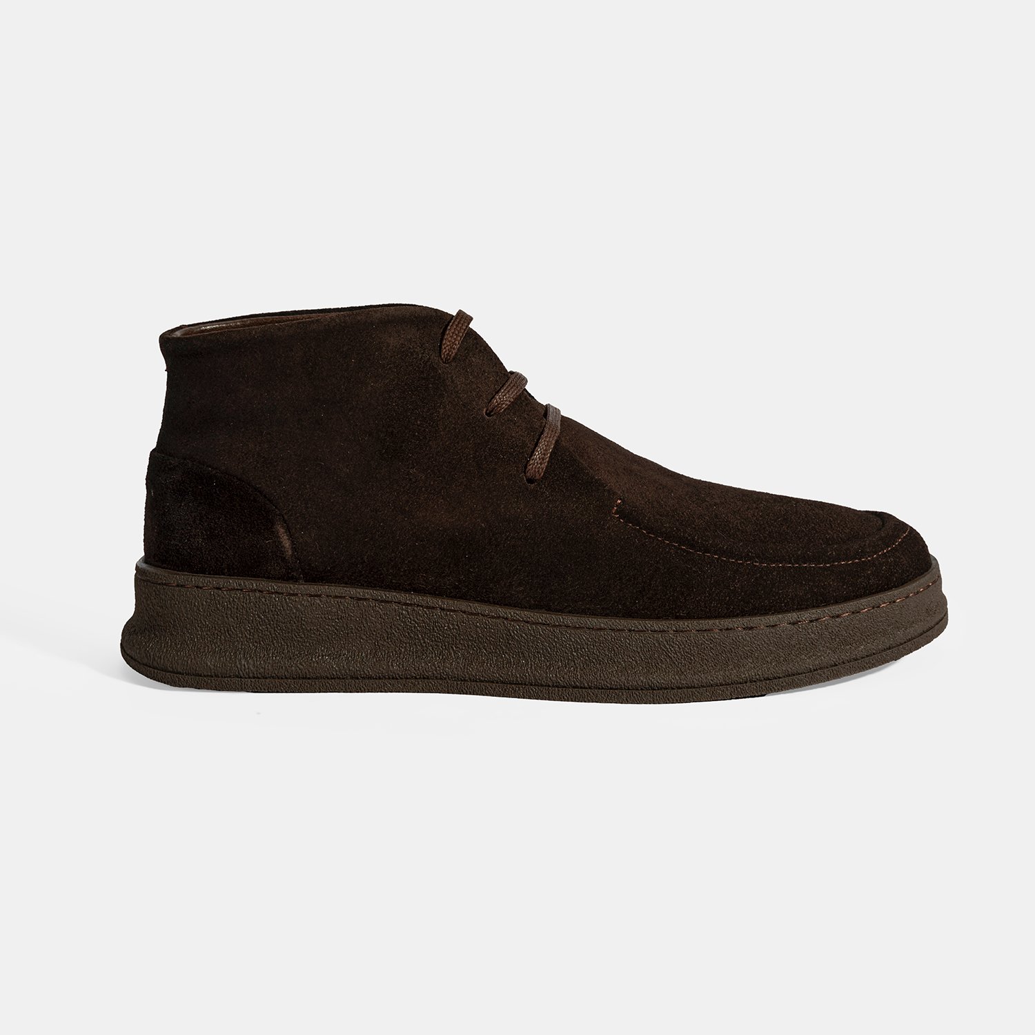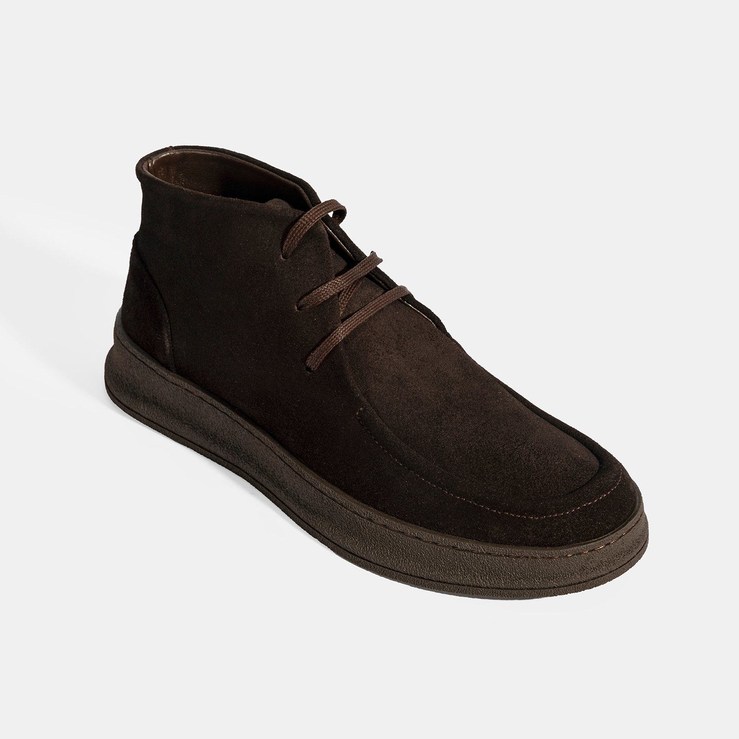%100 süet deri, %100 deri mostralı, tekstil astarlı, bağcıklı, kauçuk tabanlı erkek bot.