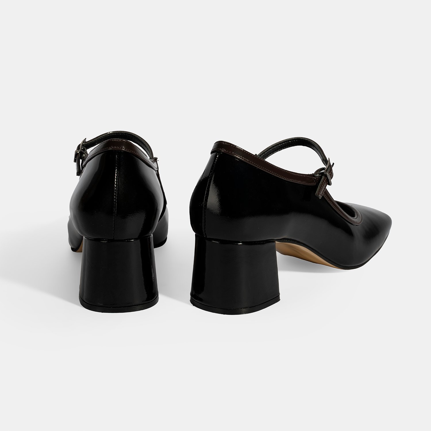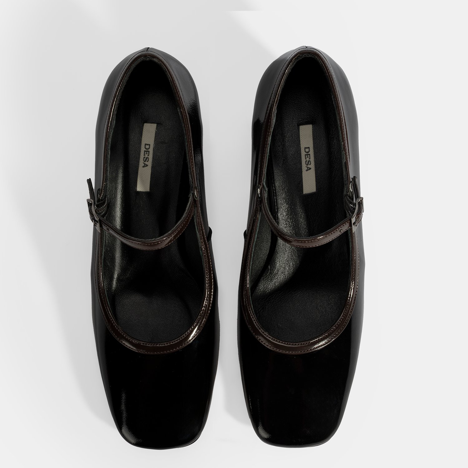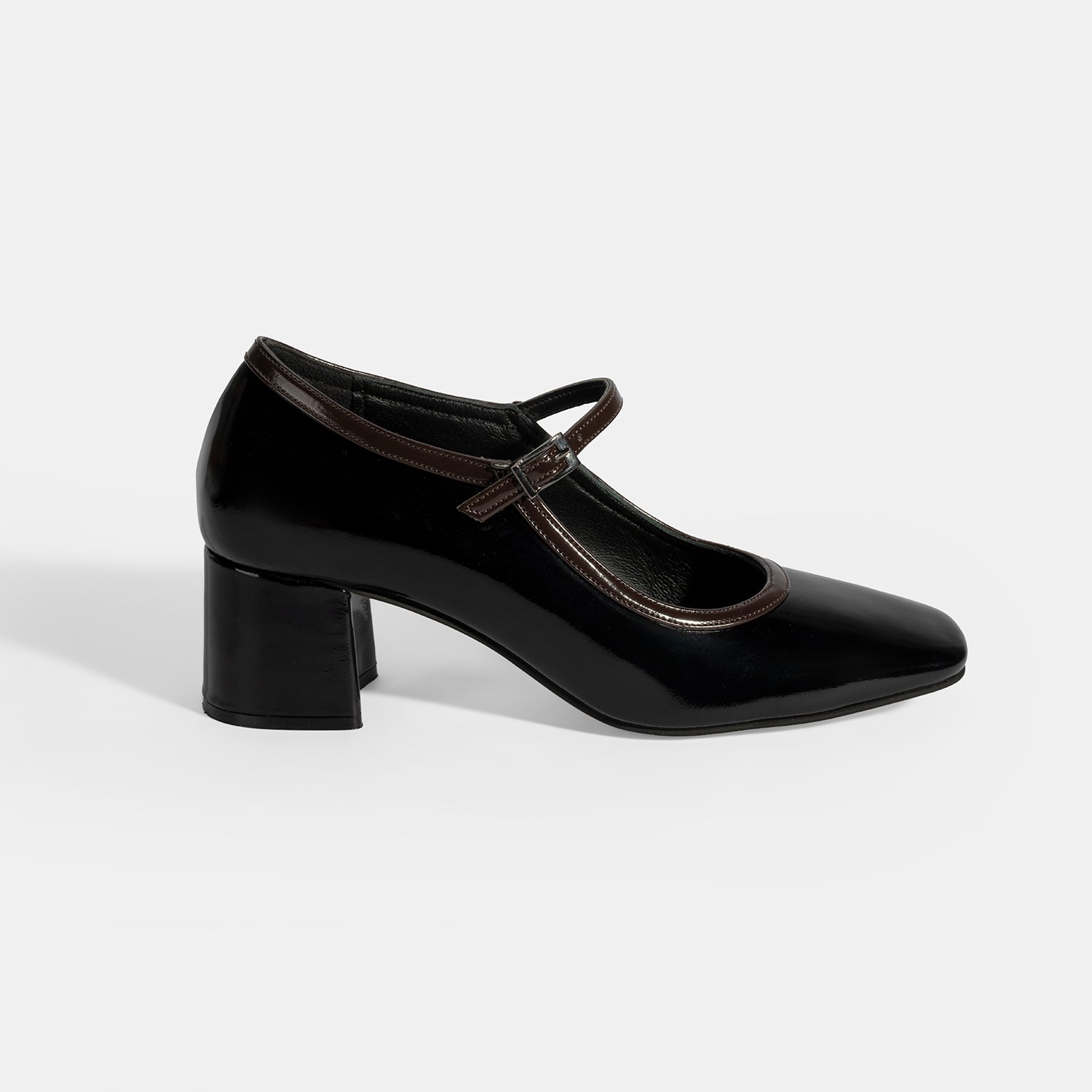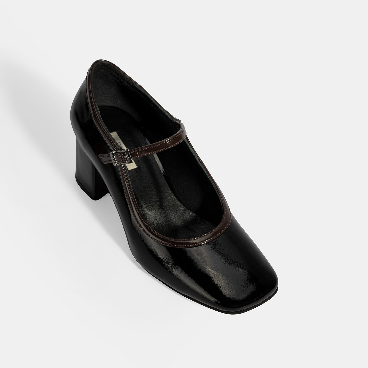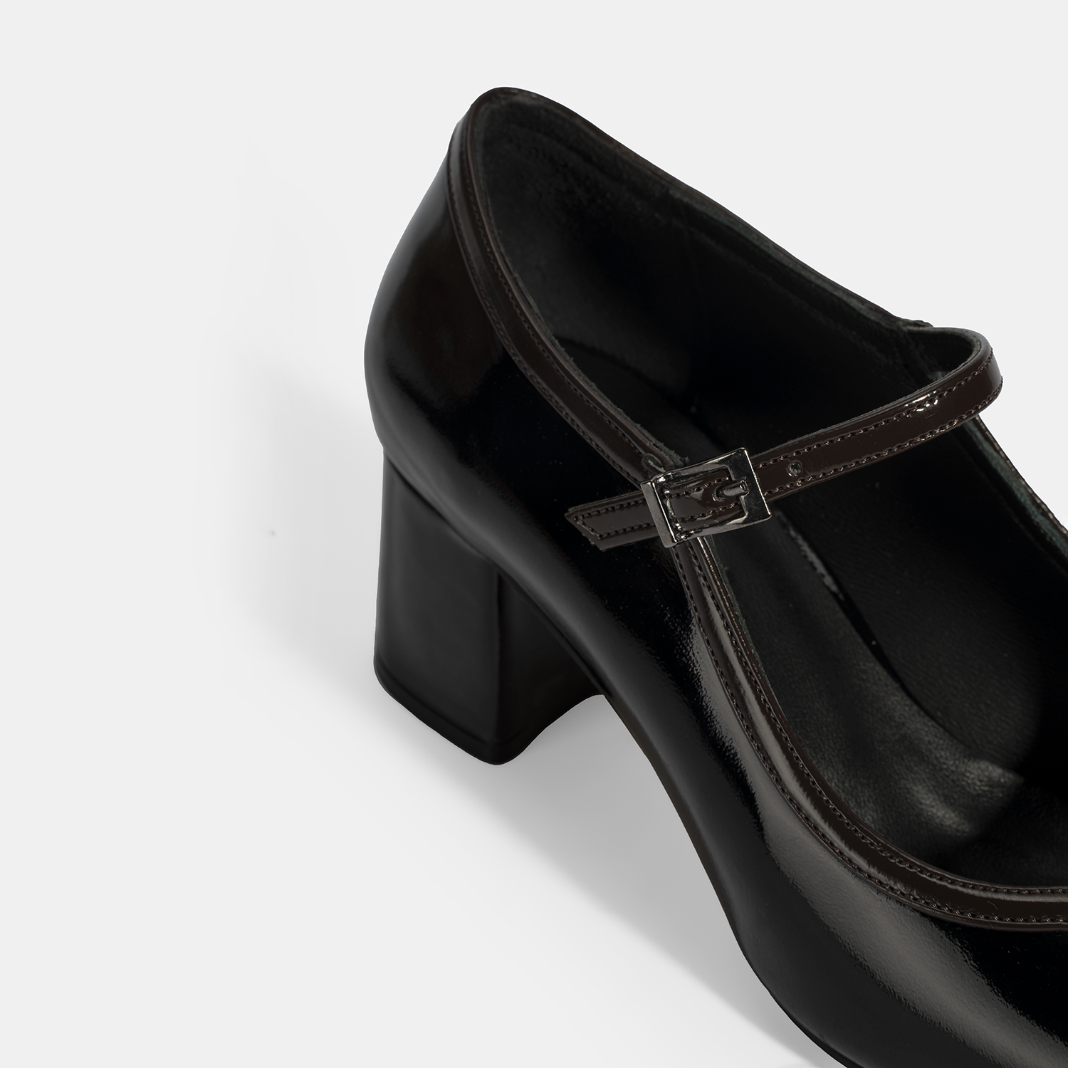 %100 rugan deri, deri iç tabanlı, deri astarlı, ayarlanabilir metal tokalı, neolit tabanlı, kalın topuklu kadın klasik ayakkabı. Topuk yüksekliği: 5 cm.