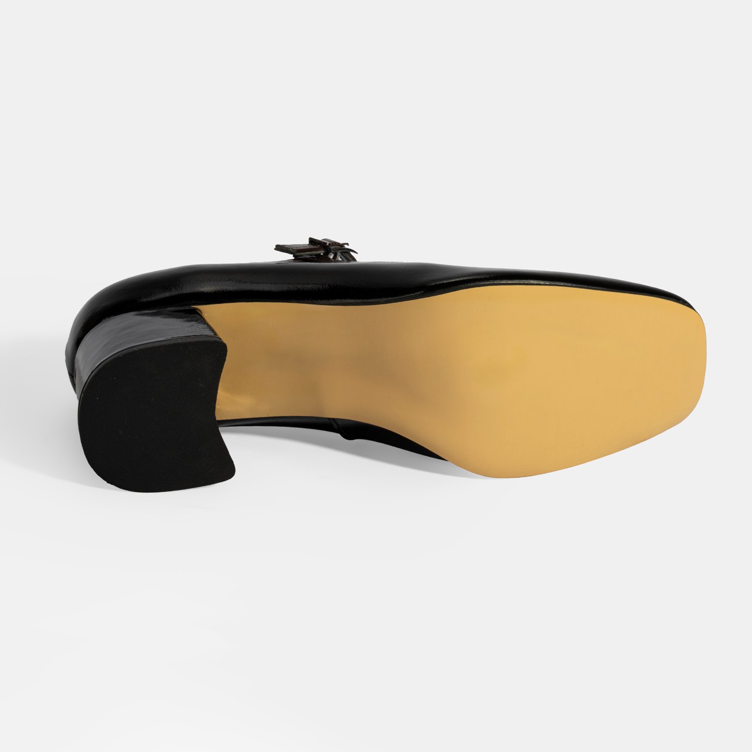 Kadın Siyah Ayarlanabilir Tokalı Kalın Topuklu Klasik Ayakkabı