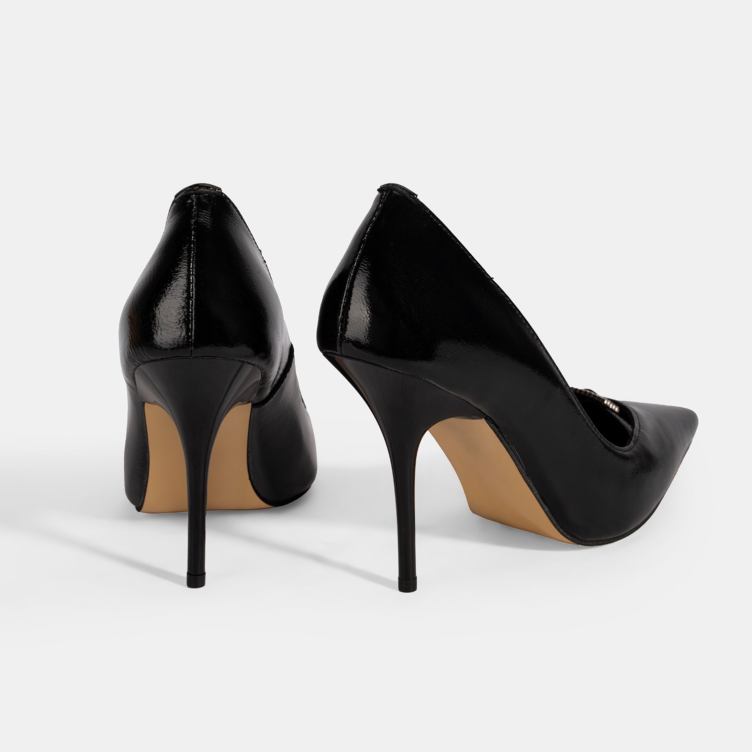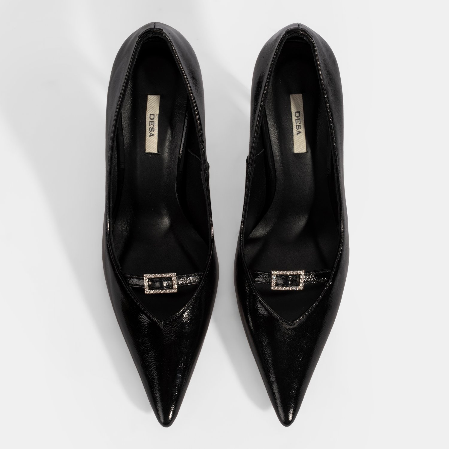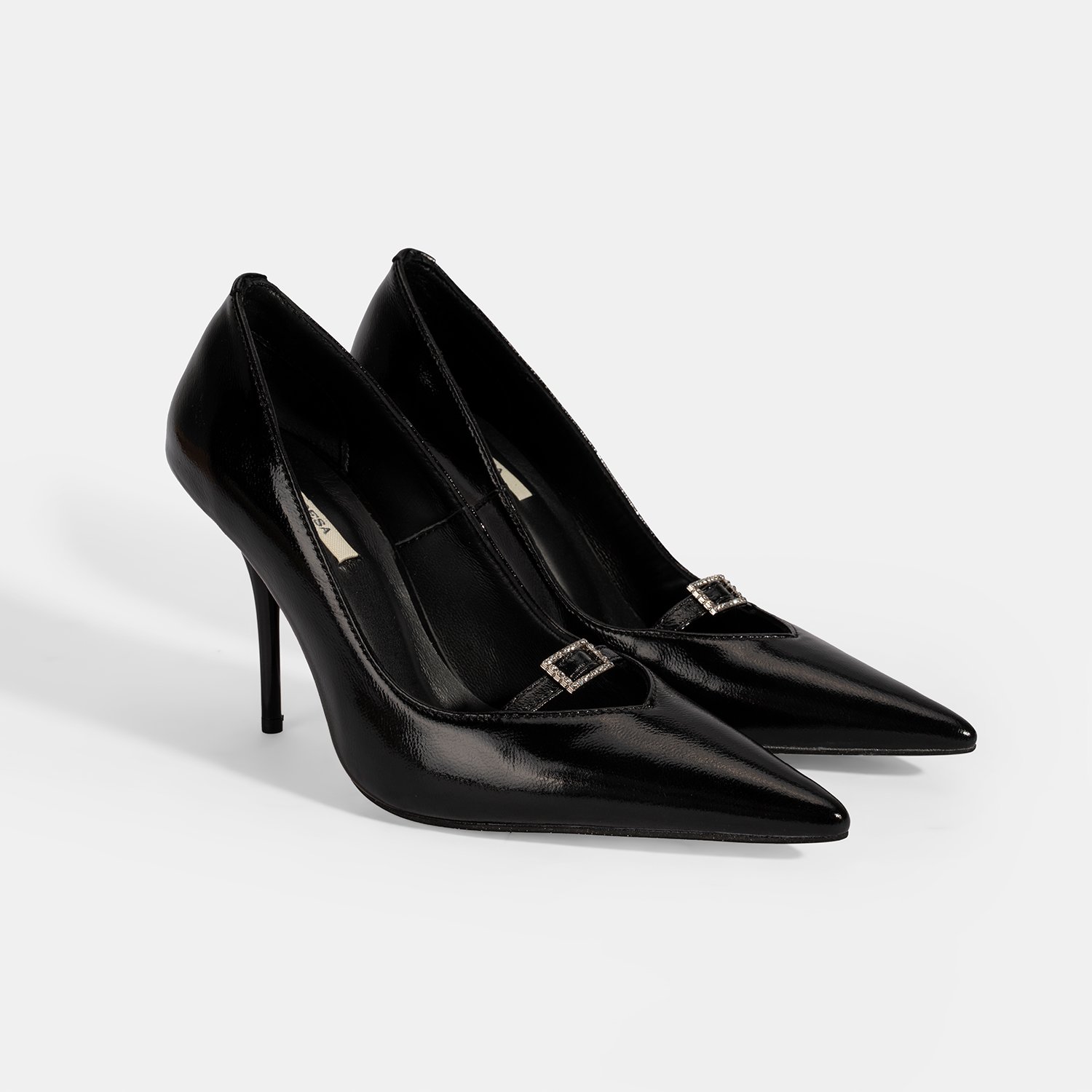 Kadın Siyah Taşlı Toka Detaylı Rugan Topuklu Abiye Ayakkabı