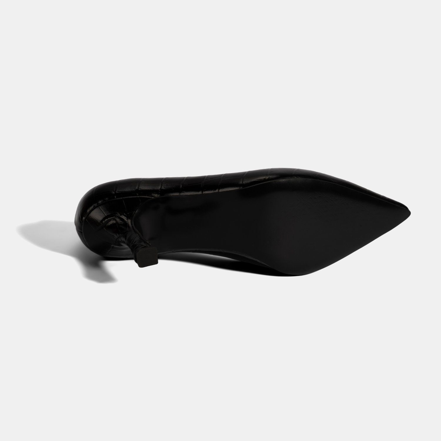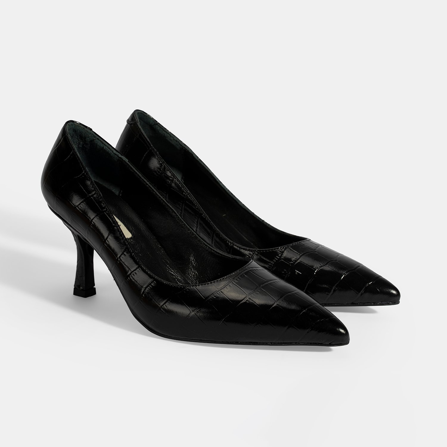 Kadın Siyah Kroko Baskılı Deri Stiletto