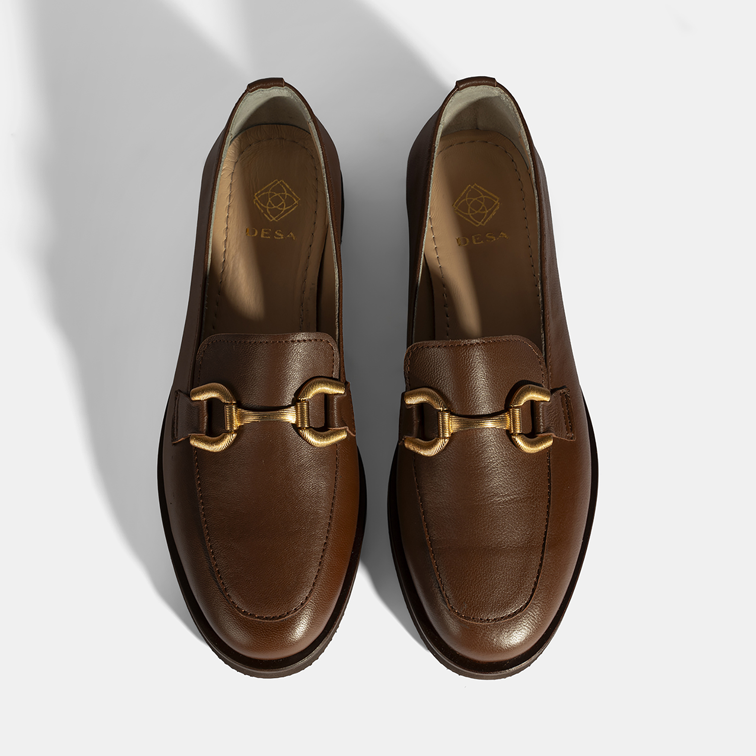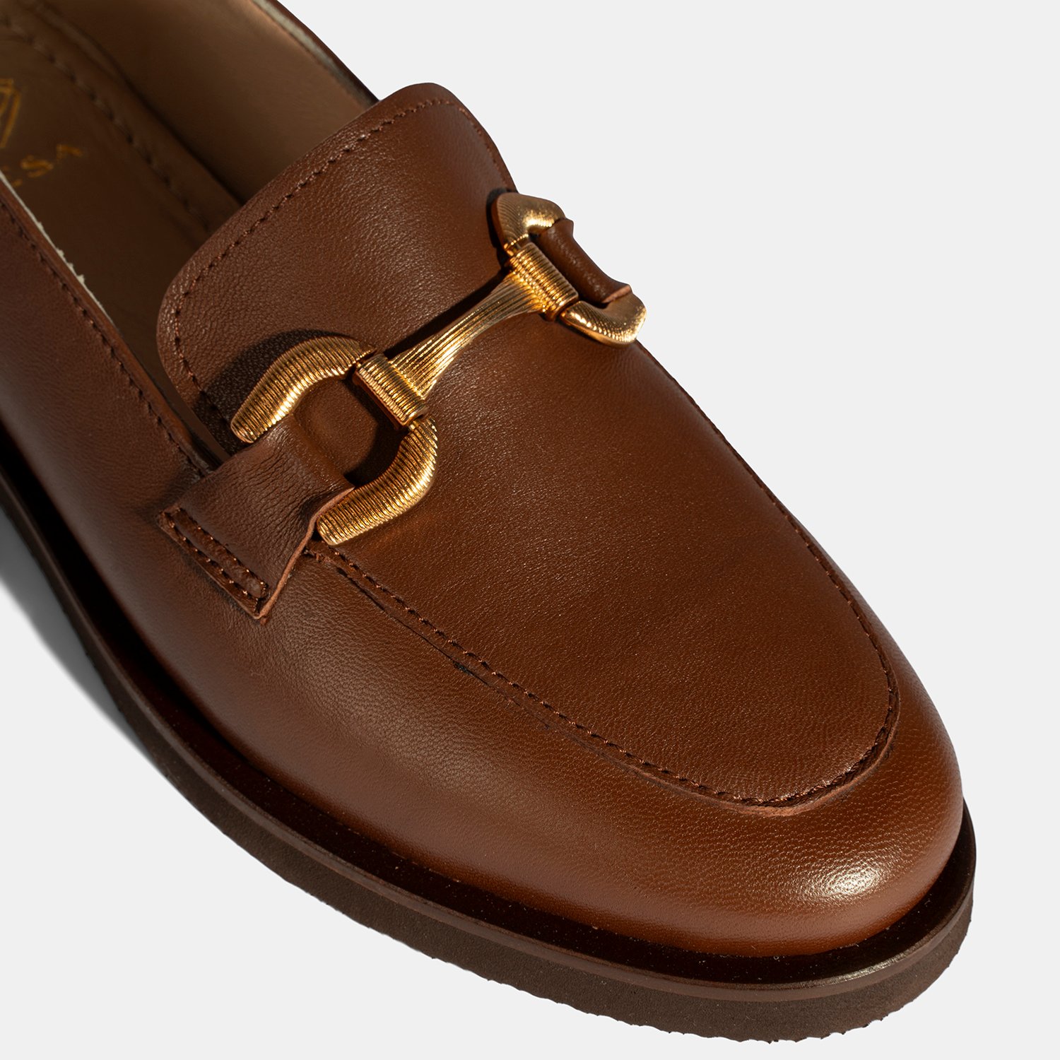 Kadın Taba Metal Toka Aksesuarlı Deri Loafer