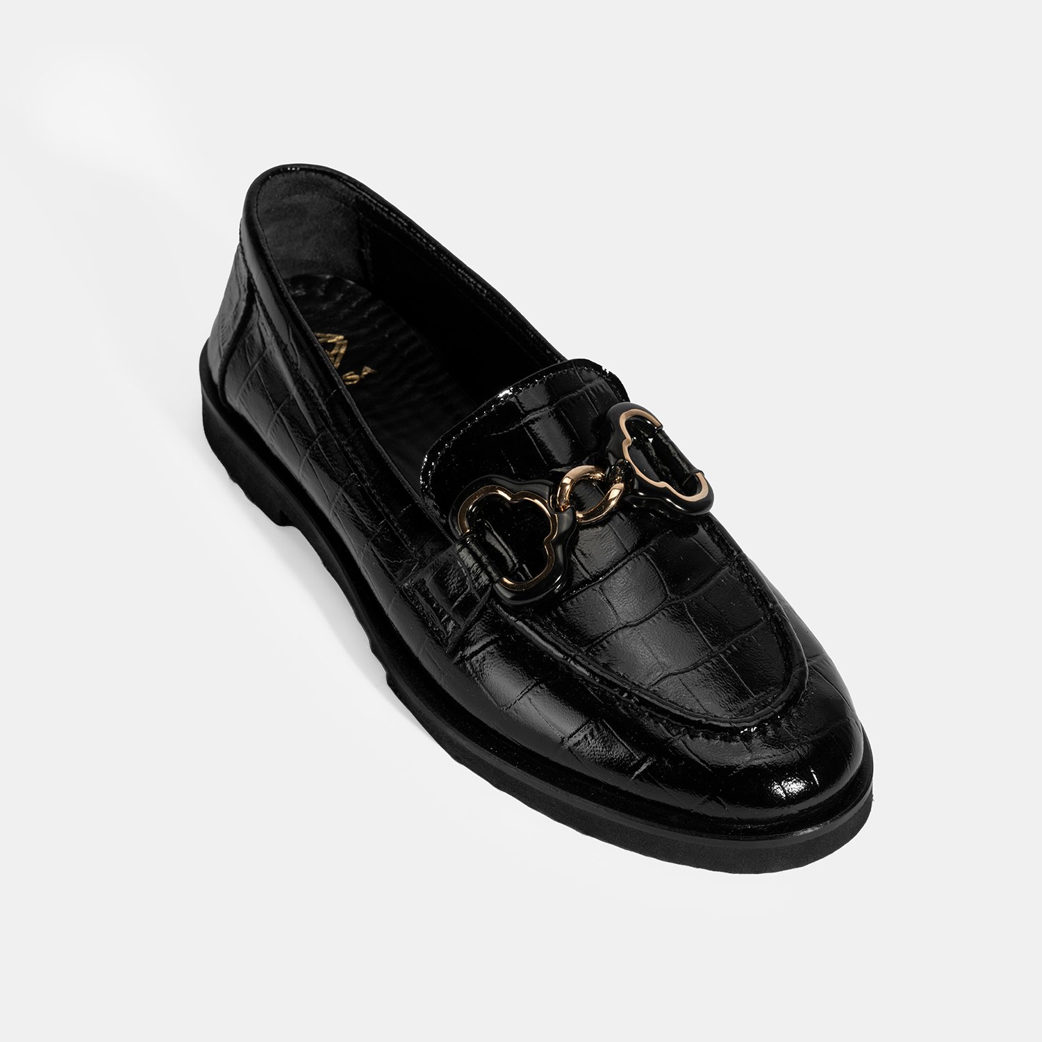 %100 kroko baskılı deri, deri iç tabanlı, deri astarlı, metal akseusar detaylı, eva tabanlı, kadın ultra hafif loafer. Topuk yüksekliği 2 cm