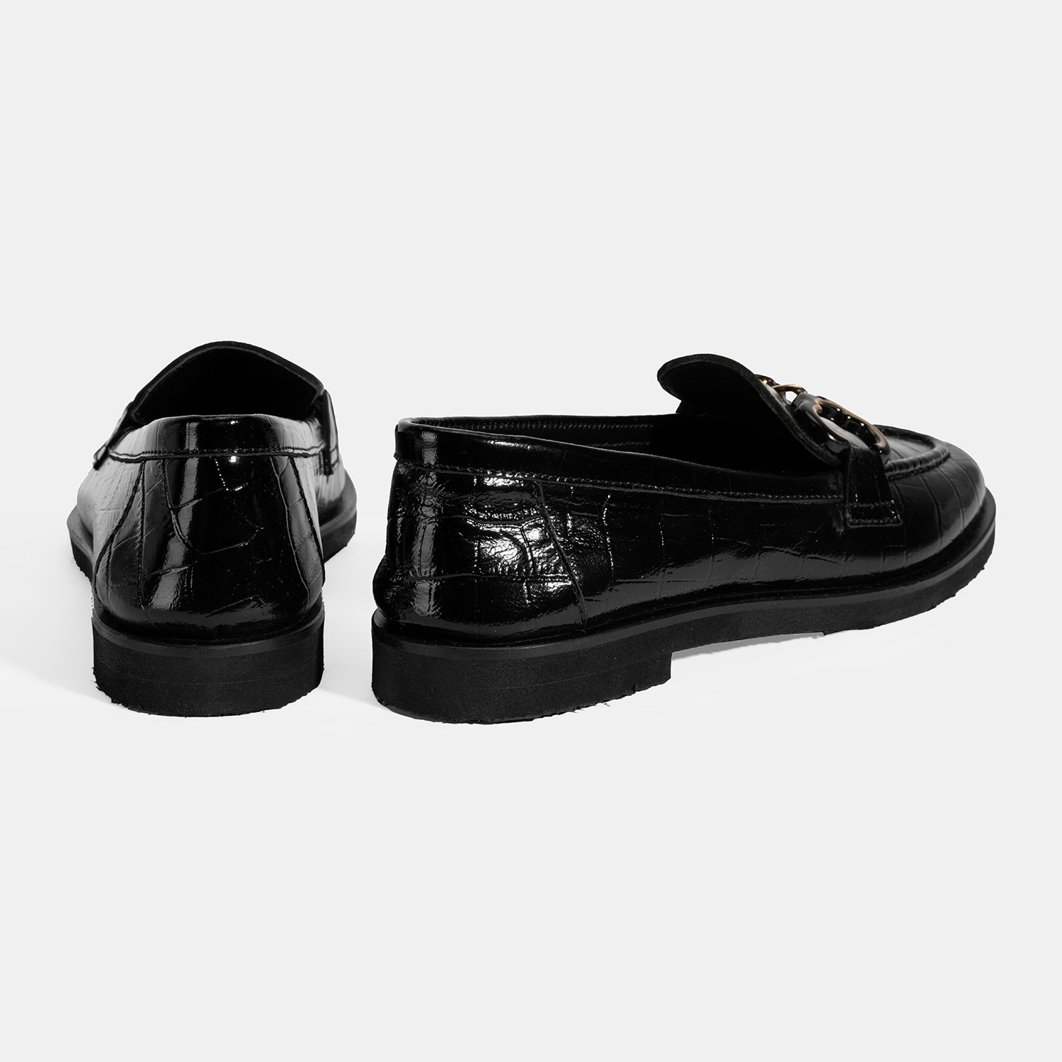 Kadın Siyah Kroko Baskılı Toka Detaylı Deri Loafer
