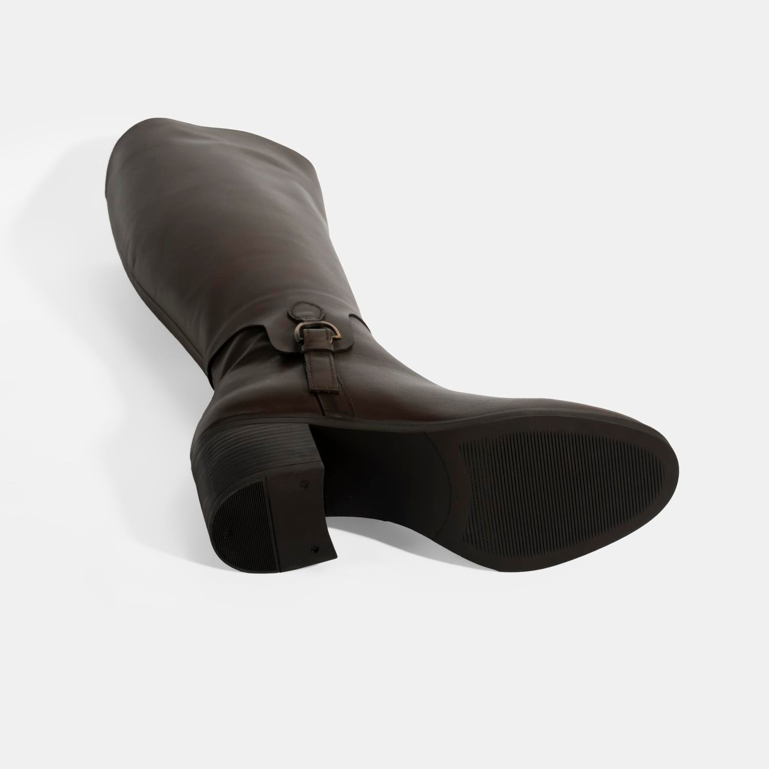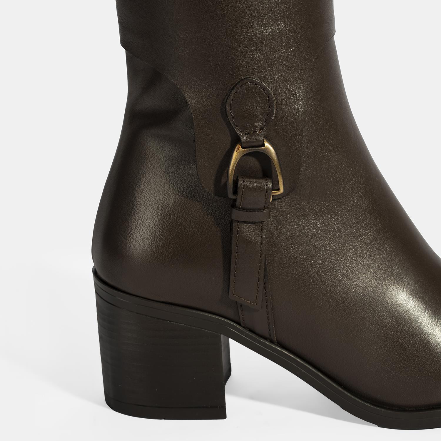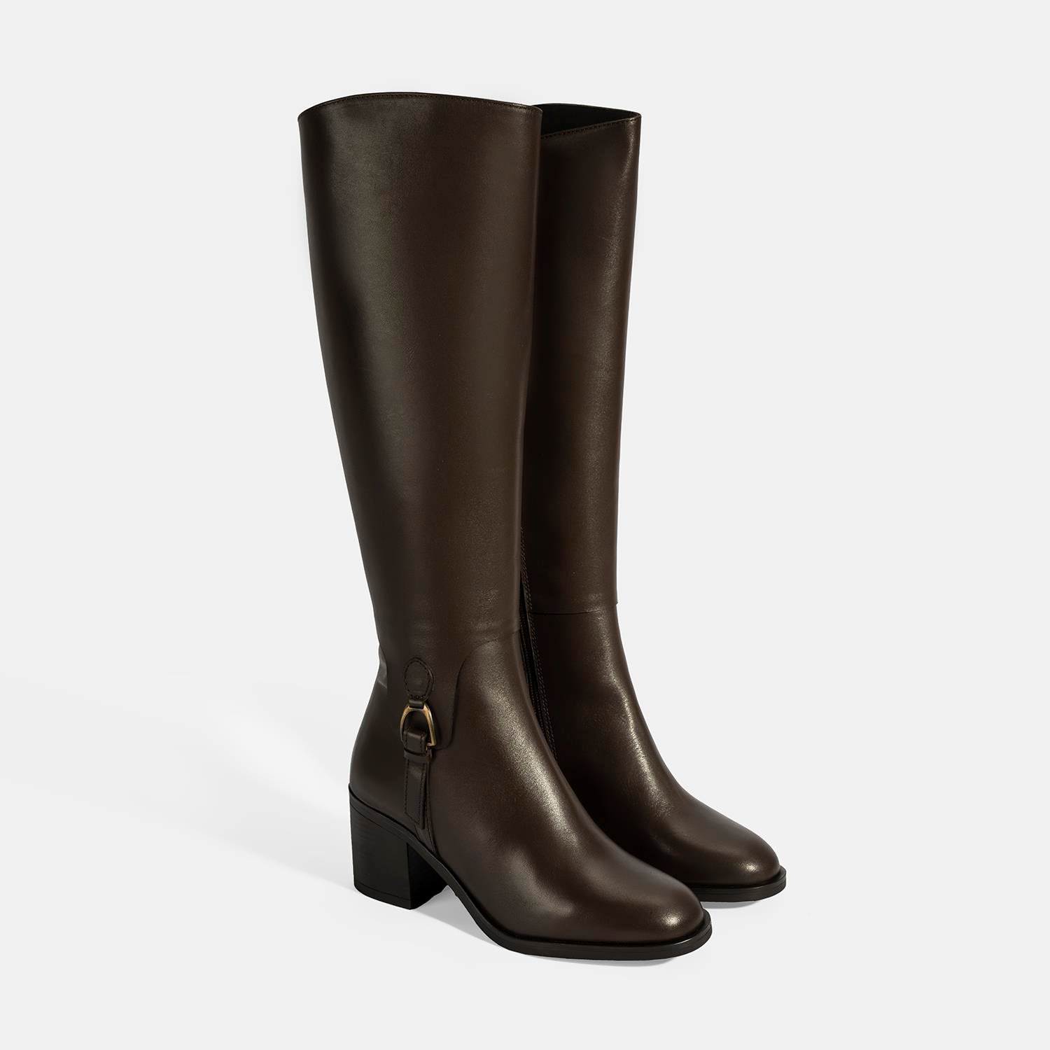 Kadın Kahve Kalın Topuklu Deri Çizme
